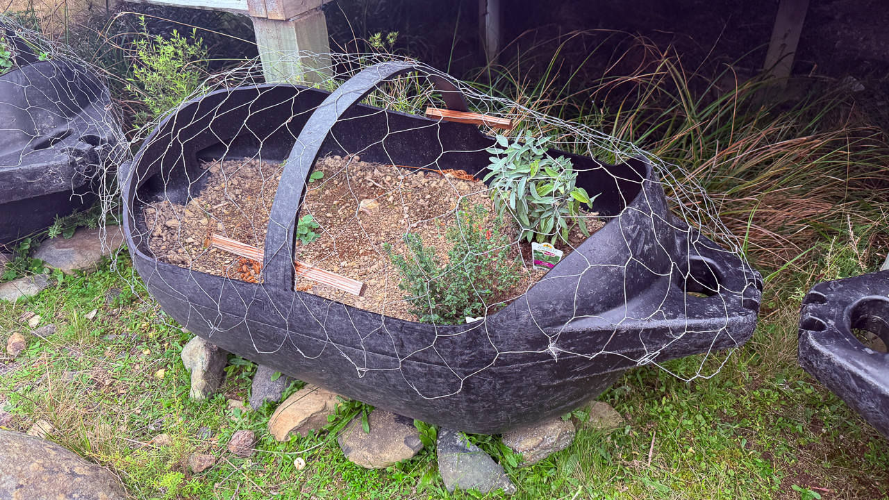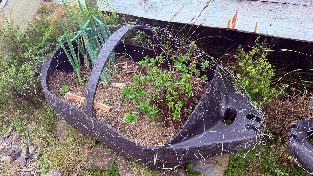 65. Apres avoir "fabrique" deux planteurs, on en monte un dans le verger pour y planter un framboisier ...