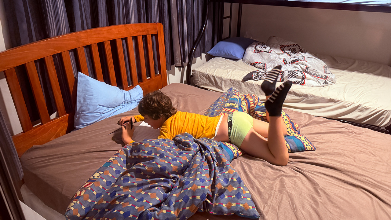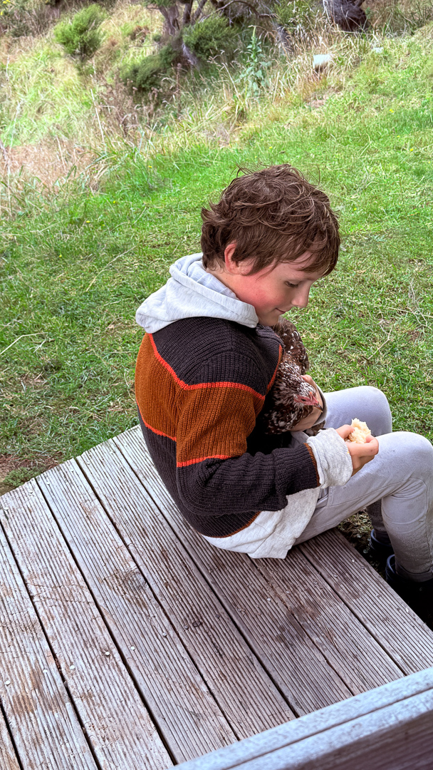 Les photos suivent notre quotidien : les enfants qui pêchent, cuisinent ou construisent, les balades dans le bush, les moments passés avec nos voisins et amis, les surprises du jardin ou de la mer. Rien d’extraordinaire, mais une vie simple et dense, comme on l’aime ici.