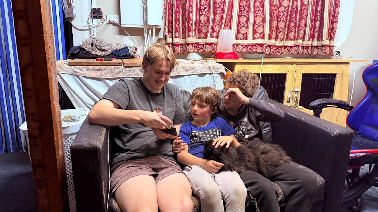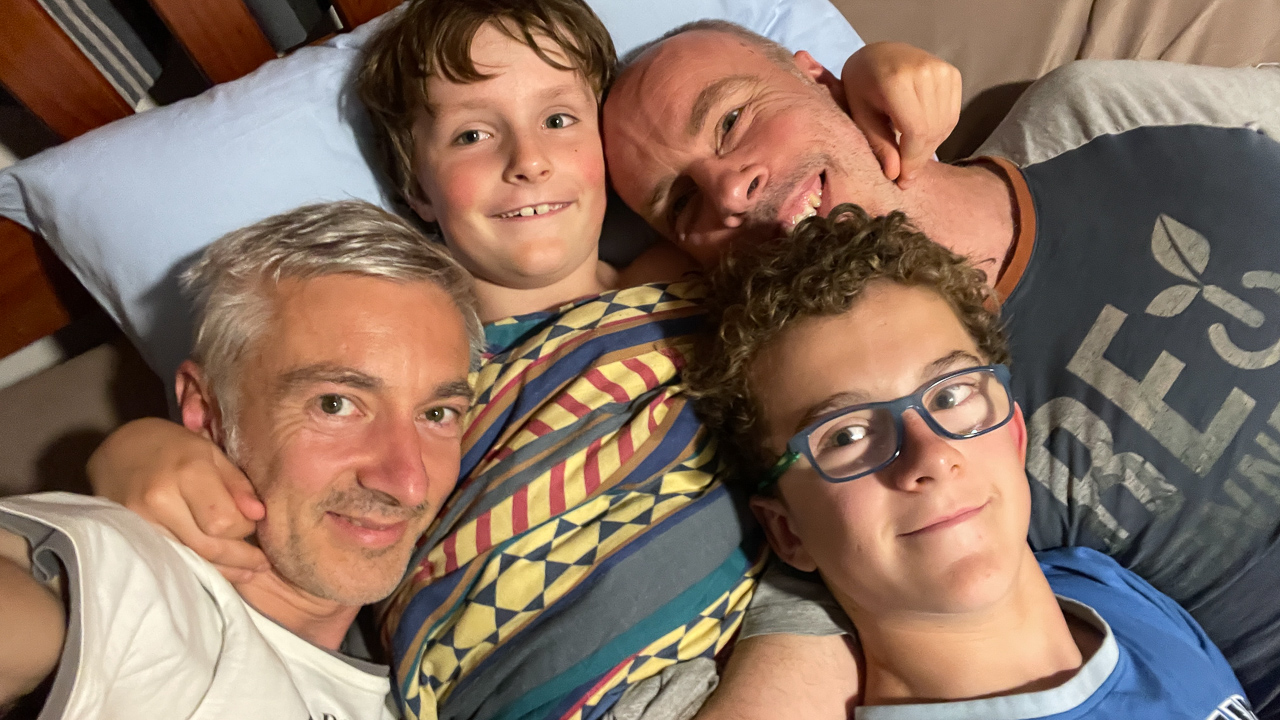 166. Cosmo a tenu a faire une photo de sa famille dans son lit, au moment de se coucher.
