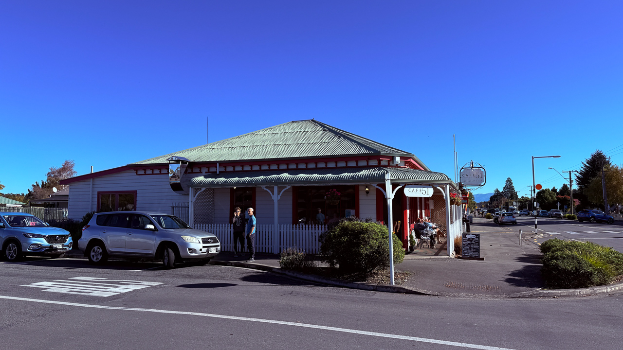 202. A Cafe 51, a Oxford, un petit cafe. Josh nous a rejoint de Christchurch.