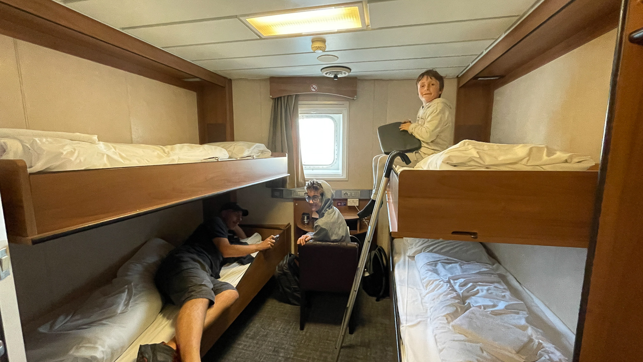 1. En route pour deux semaines a d'Urville. Le depart a lieu a une heure normale, et nous sommes dans la cabine a 8h ...