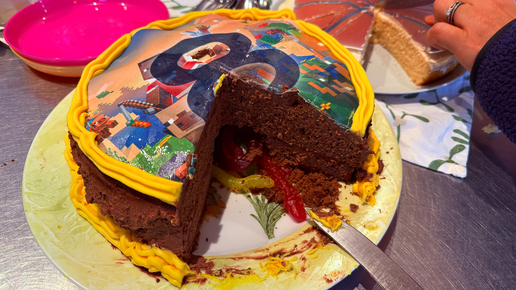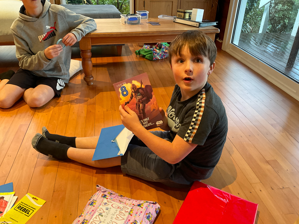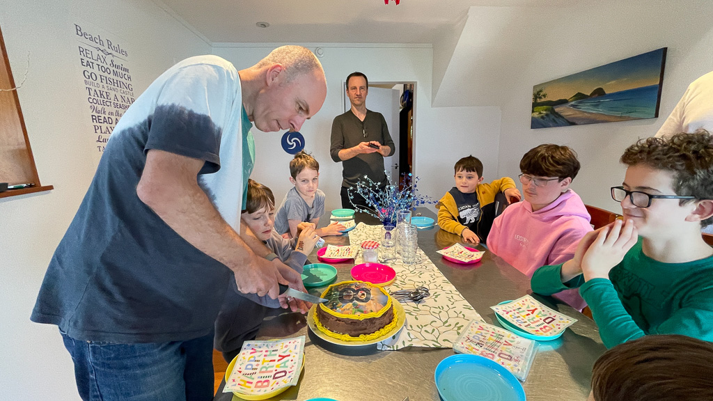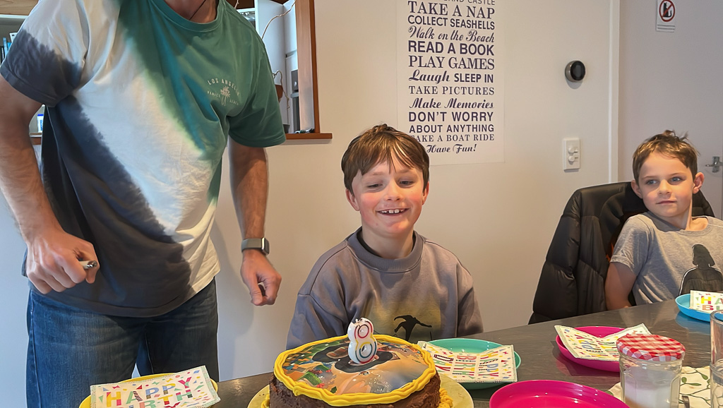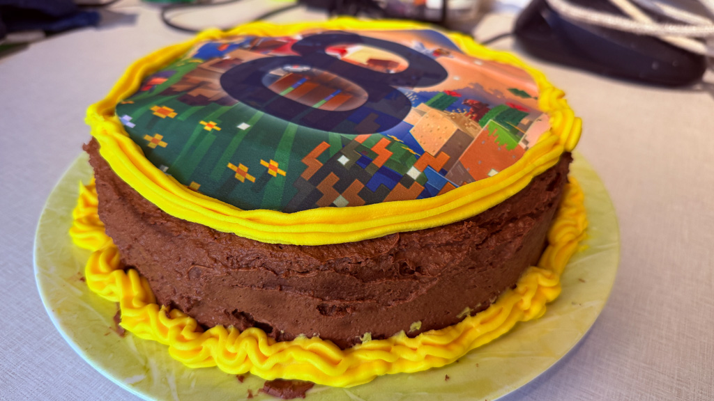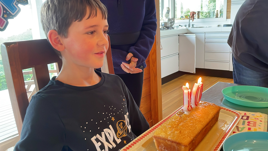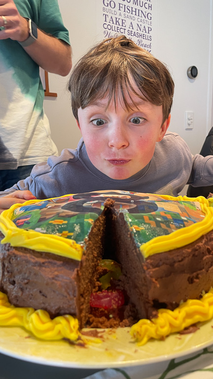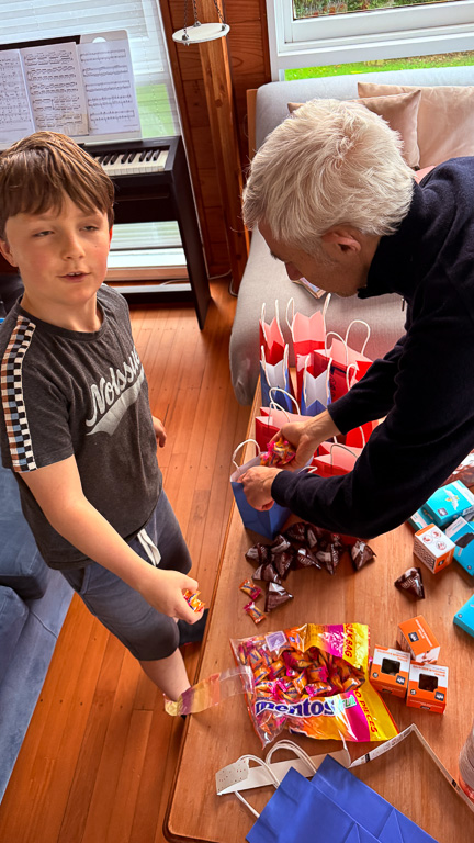 C'est l'anniversaire de Cosmo! Il a huit ans et veut le feter completement. Il y a eu donc trois fetes: une avec ses ami.e.s, une avec ses cousins et une avec sa famille cherie.