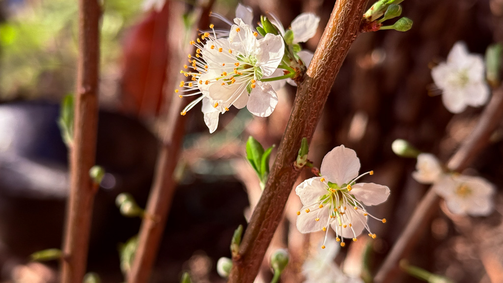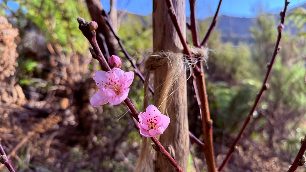12. Le verger aussi explose: pour son premier printemps, meme les pruniers et nectariniers plantes il a deux mois font des fleurs!