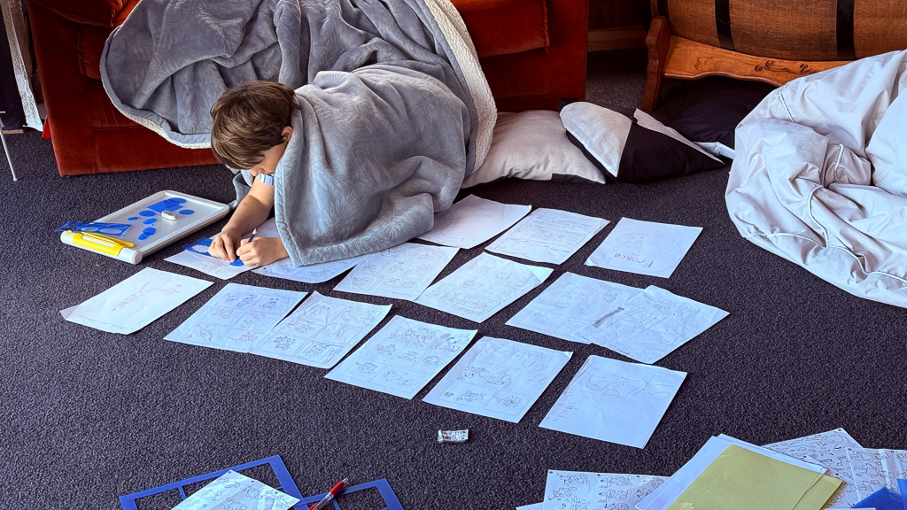 15. Cosmo adore son jouet pour faire des bandes dessinees. Il en a compose une qui fait 17 pages!