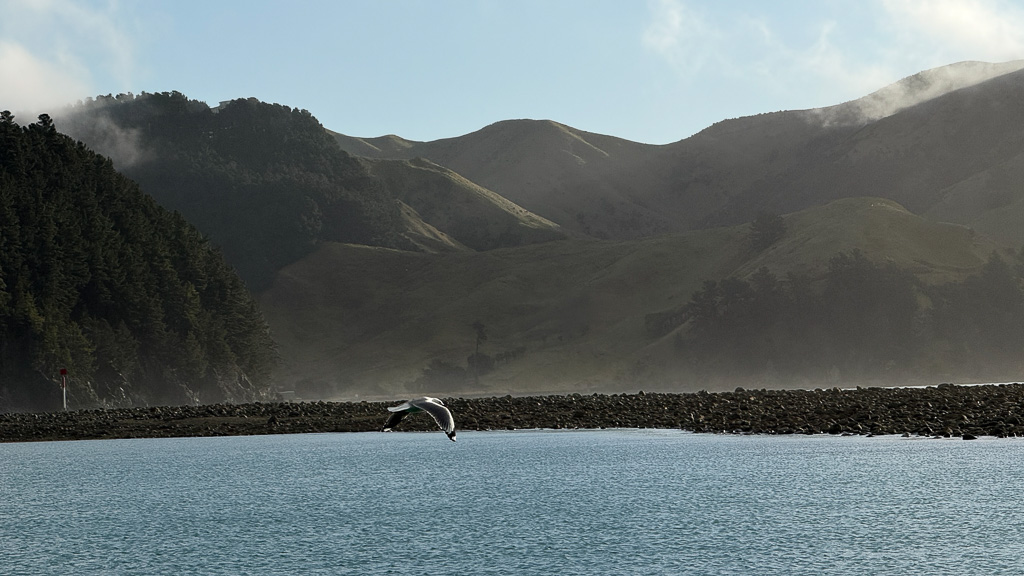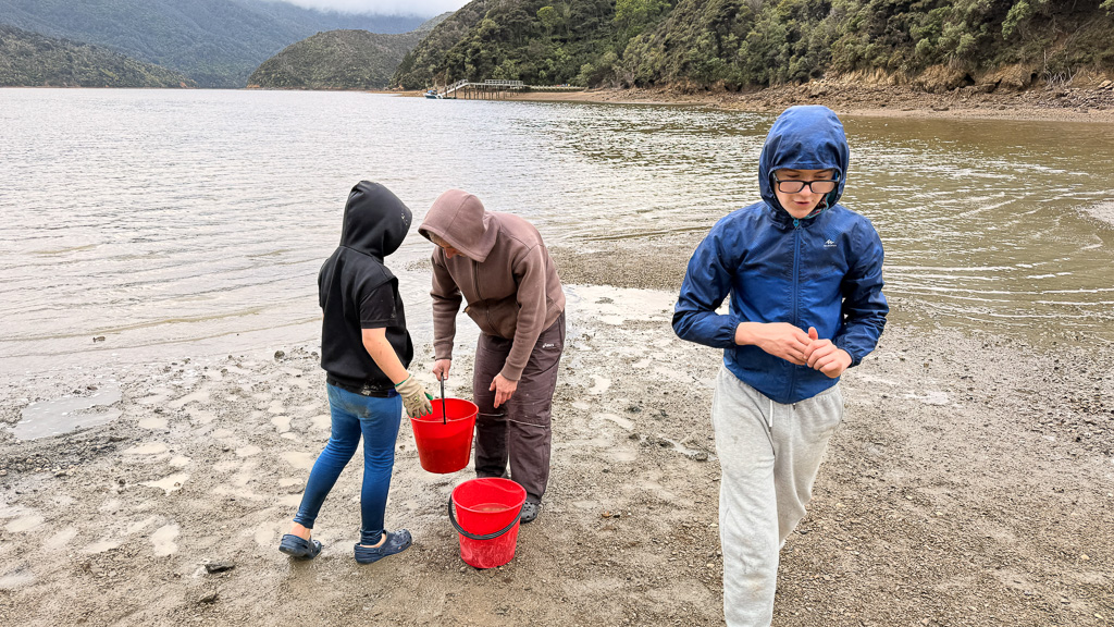 Pour ce sejour a d'Urville, nous avons deux jours de beau temps: celui ou nous sommes arrives, et celui ou nous sommes partis. Entre deux, le vent et la pluie ont ete des compagnies constantes, presque trop. Malgre cela, ces vacances furent extraordinaires, et une occasion de nous regrouper a quatre, une fois de plus. On a fait des rencontres inoubliables avec des biches et des dauphins, et profite du bush et du have de Greville harbour.