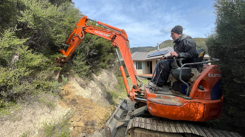 20. La pelleteuse a besoin de tourner, mes capacites a la piloter ont besoin de tourner, et il ya cet escalier vers le verger qui a besoin d'avancer ...
