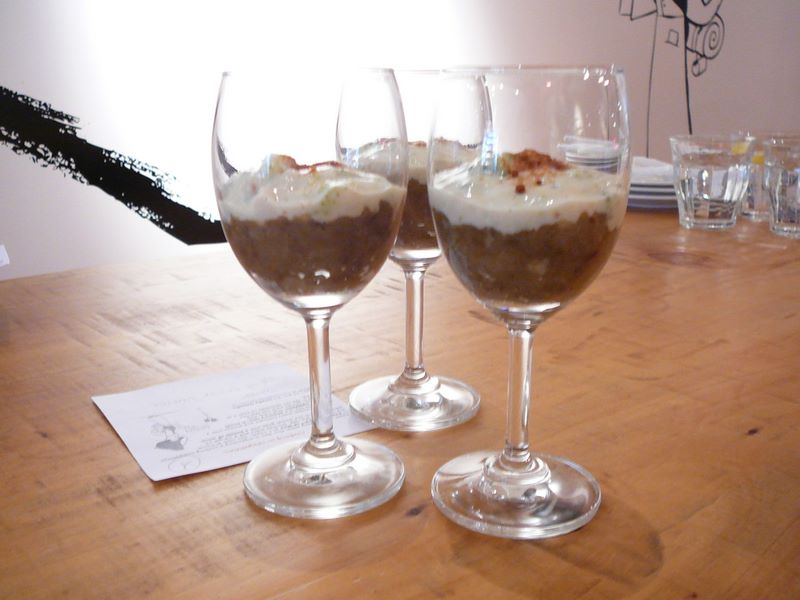 6. Les verrines de caviar d'Aubergine, de Seb, avec une béchamel broccoli poulet et un peu de paprika