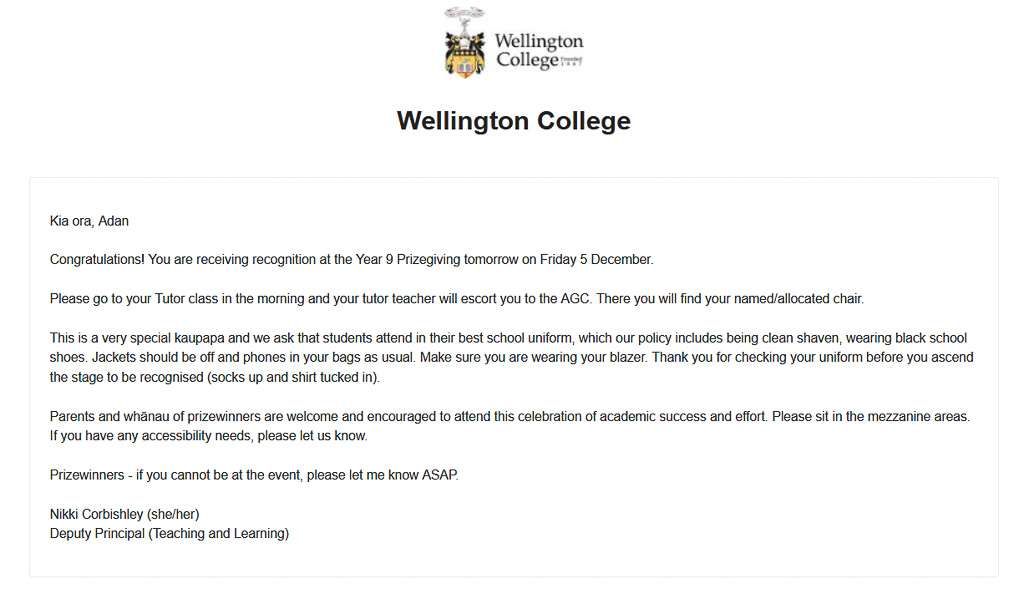 Nous avons recu, in extremis, un mail de Wellington College pour nous inviter a la ceremonie de remise de prix des Year 9. Cette ceremonie allait cloturer l'annee et l'objet de l'invitation etait qu'Adan allait recevoir quelque chose. Nous ne savions pas qu'il recevrait de multiples accolades.