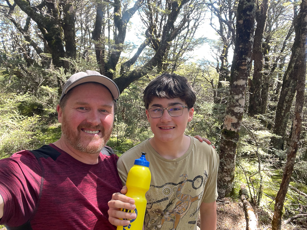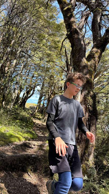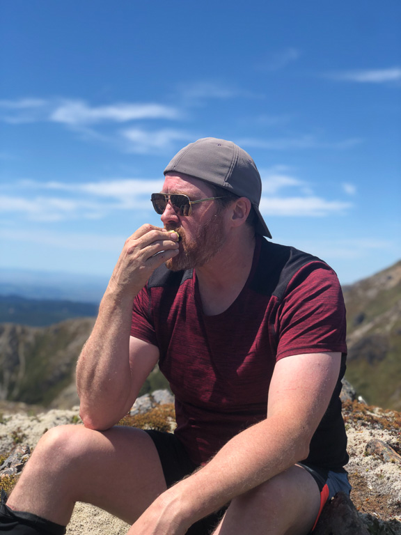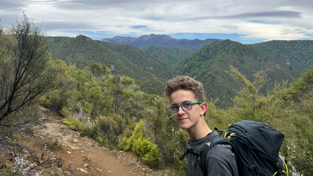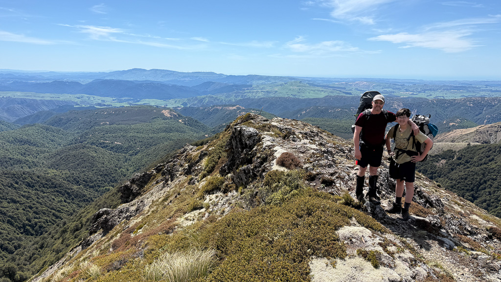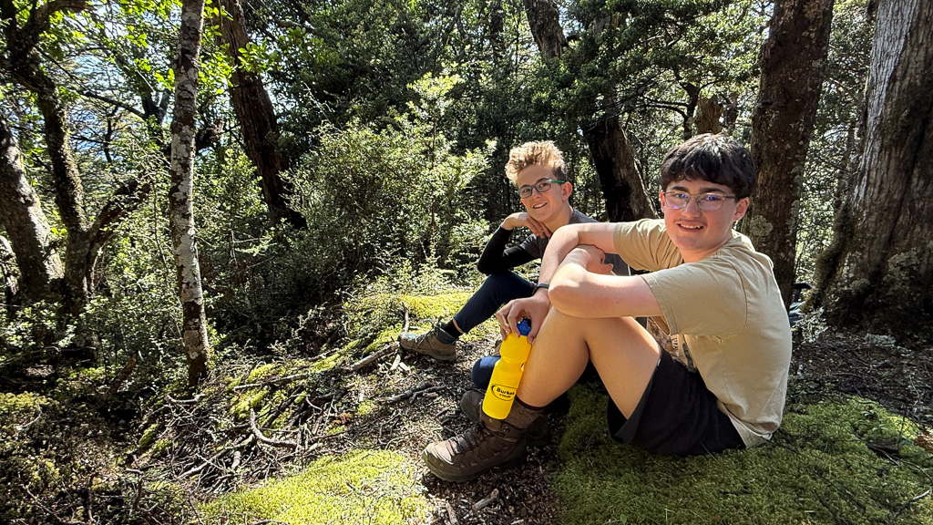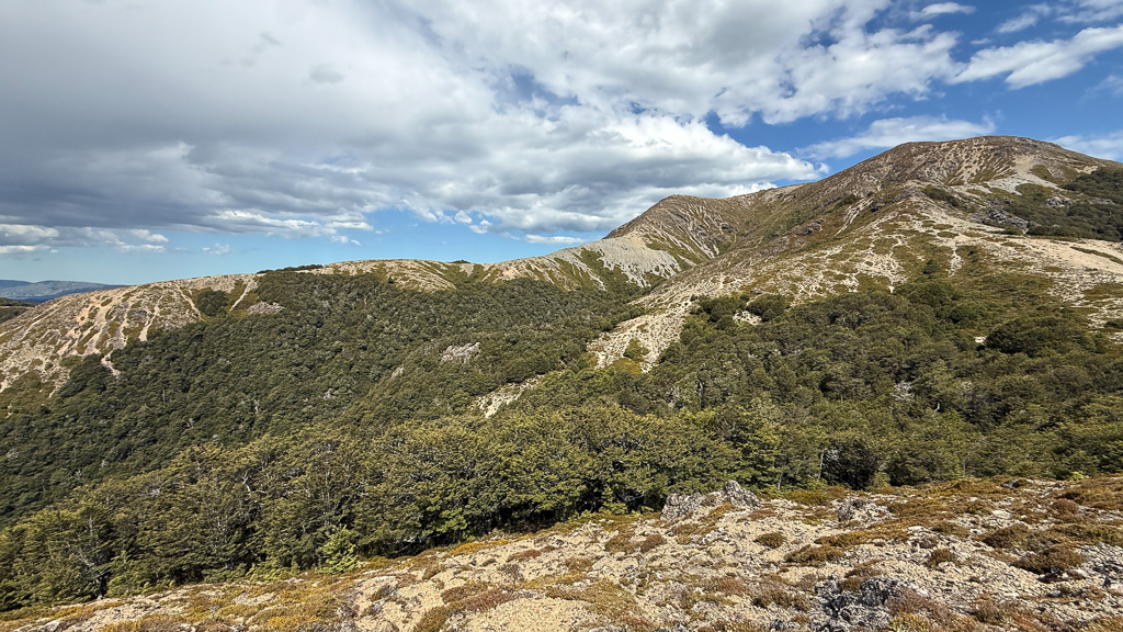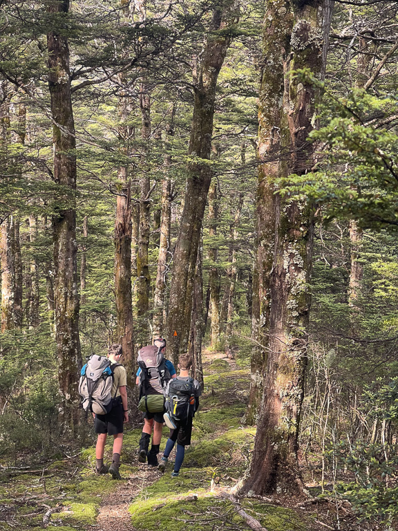 95. Les garcons restent au col, pendant que Mat et moi grimpons les derniers metres pour atteindre Whetu, a 1650m.