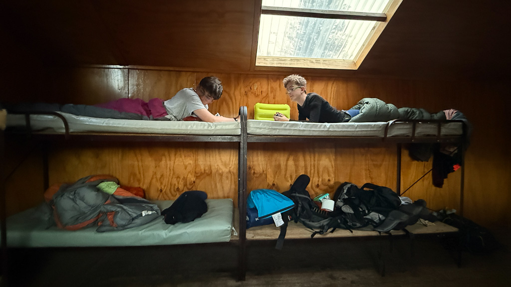 31. ... de passer le reste de la journee a Middle Hill Hut et d'attendre le lendemain pour finir la montee, puisque la meteo nous a promis des conditions meilleures.