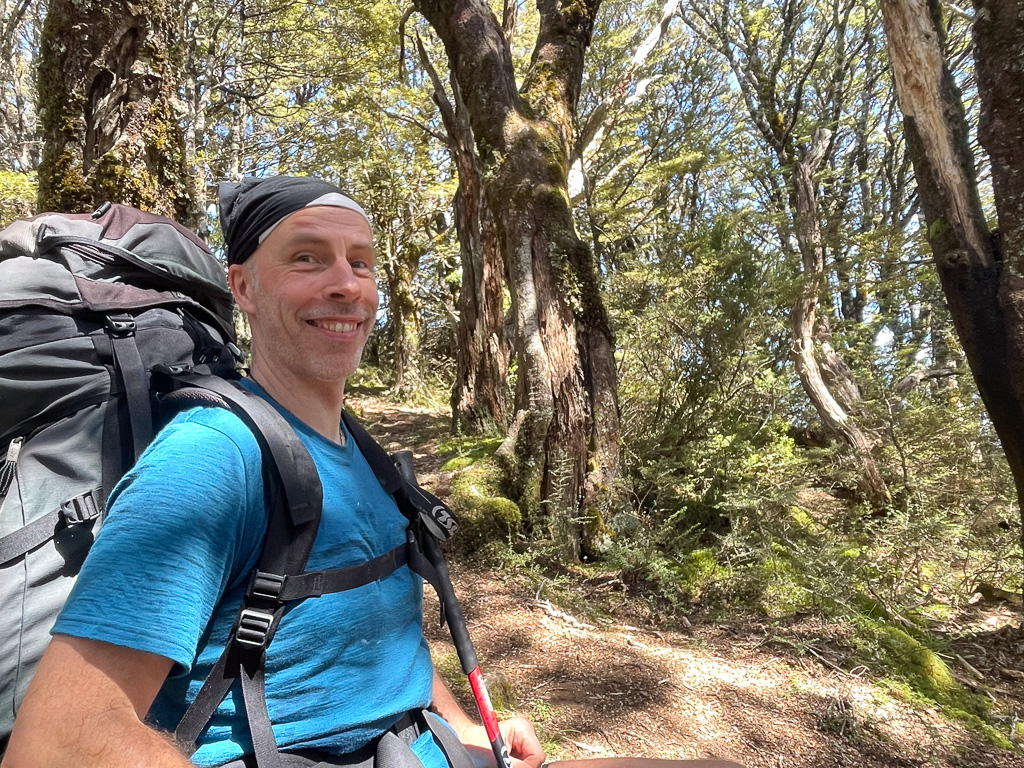 112. Heureusement, ce raccourci s'est bien passe et on a rejoint la piste, en direction du refuge de ce soir, Makino Hut.