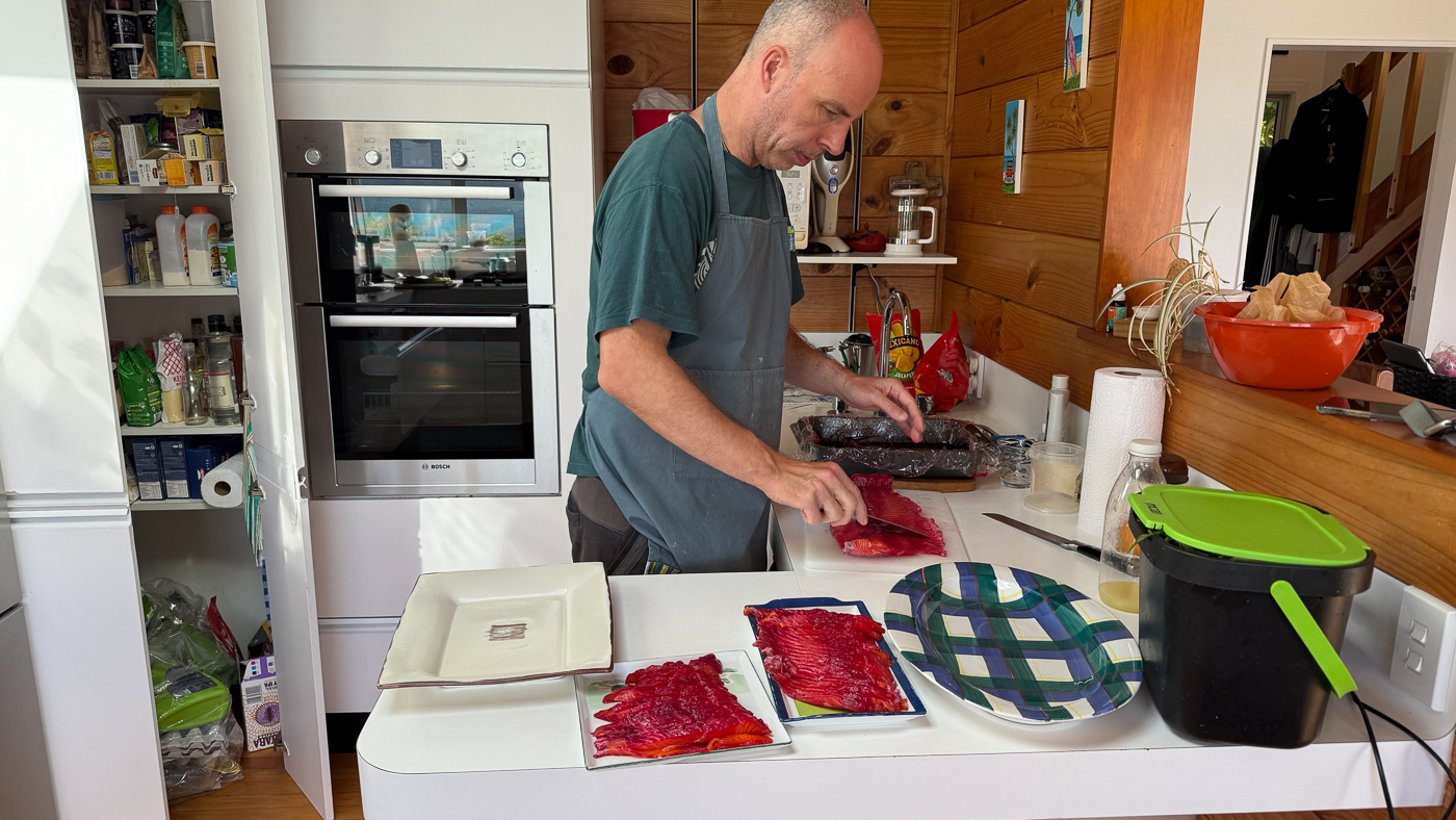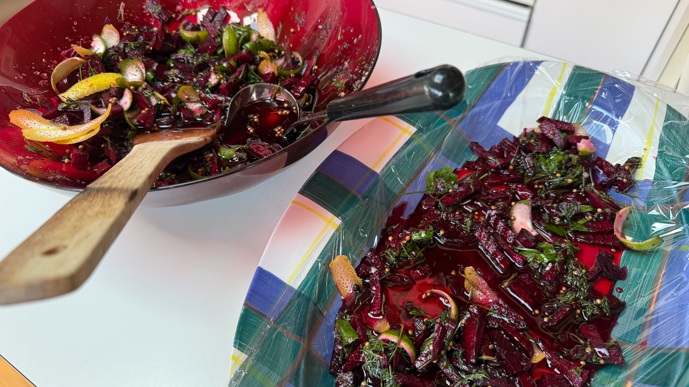 4. Noel approche alors on commence a cuisiner. Ici, la marinade pour le saumon.