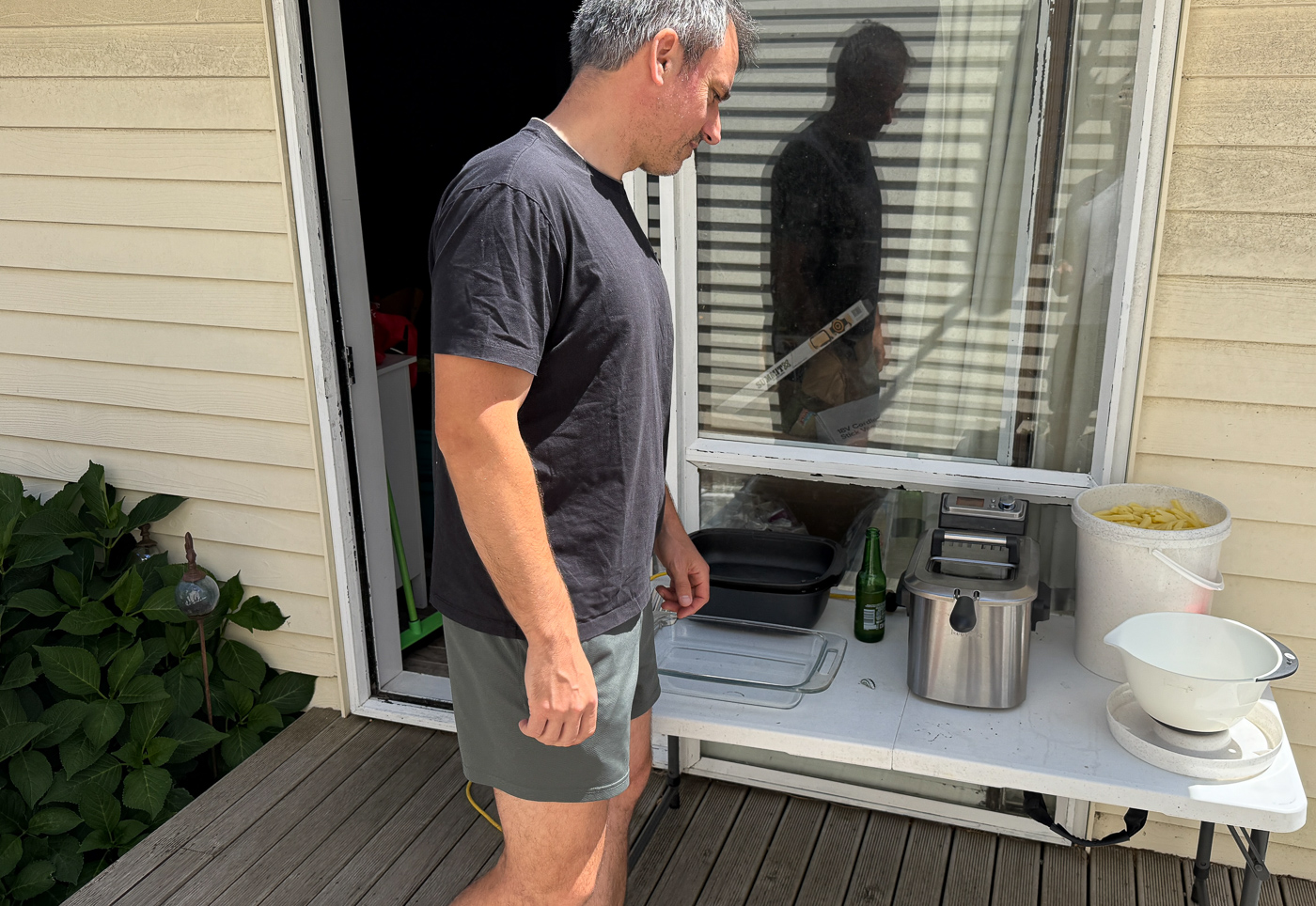 17. 24 Decembre. Cette annee, le reveillon est chez Nico a cause d'un vent trop fort de l'autre cote de la colline. Laurent ramene, entre autres, sa friteuse!