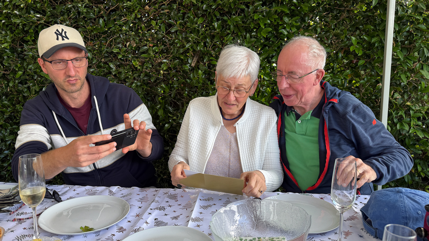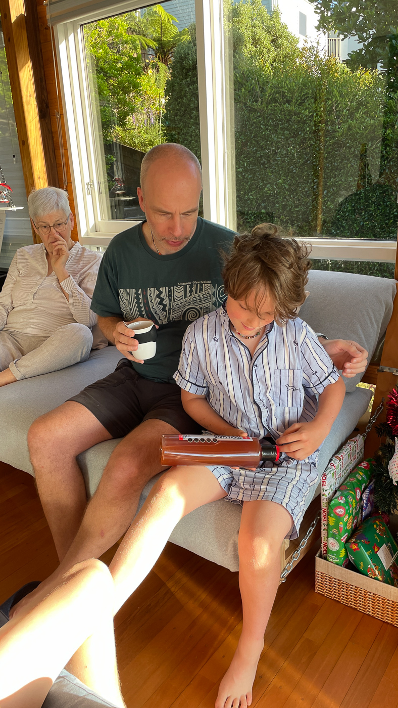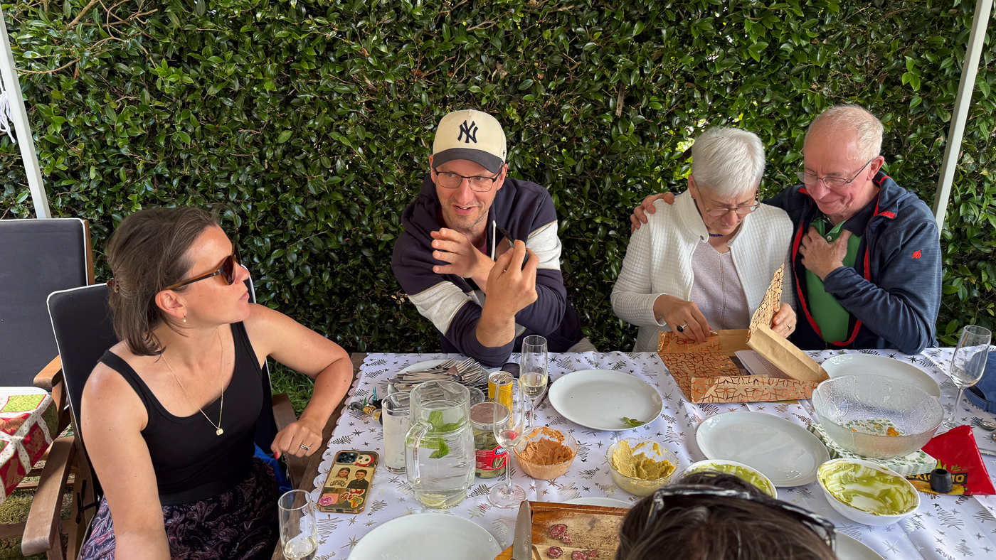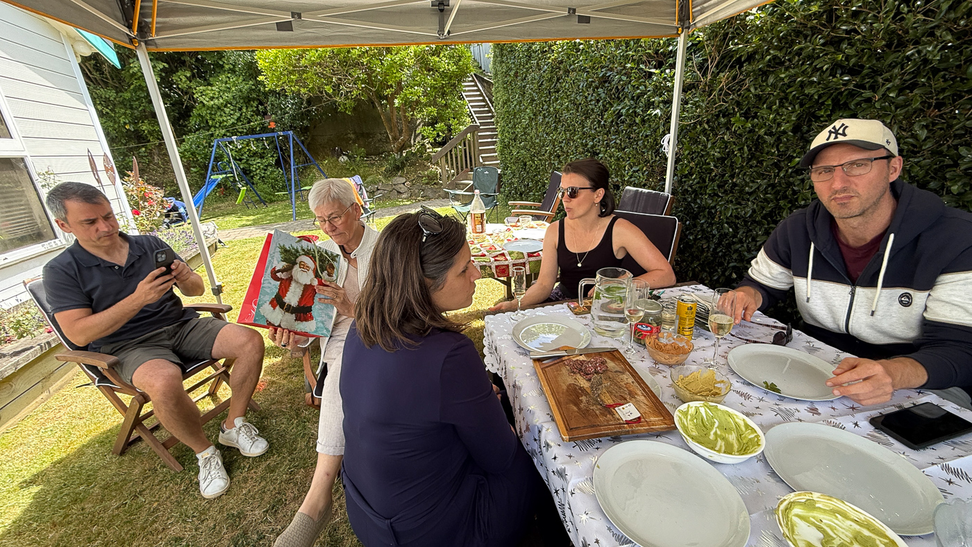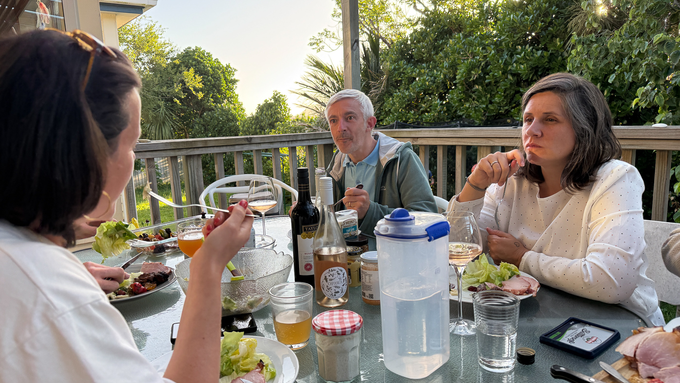 Cette annee encore, les parents ont pu venir passer Noel a Wellington. Ils sont arrives le 23 et, par chance, n'ont pas eu a souffrir du decalage horaire. Etait ce parce qu'ils ont pu profiter du studio?! Nous avons passe trois jours tou.te.s ensemble, chez les uns et chez les autres, avec des plats aux petits oignons!