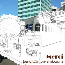 Mon Ami est situe dans une rue du centre de Wellington appellee Bond Street. C'est une petite rue qui connecte deux arteres de la ville, et dont les flux de personnes et la decoration, contrairement a ses voisines, n'ont pas ete ameliores au fil des annees. C'est pour proposer sa renovation que je me suis presente aujourd'hui devant les 20 membres du conseil de la ville.