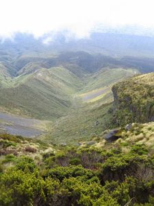 Le WE dernier, nous sommes allés au Mount Taranaki (nom Maori) ou Egmont (nom anglais), volcan endormi depuis de nombreuses années, se situant au milieu d’une plaine s’enfonçant dans la mer de Tasmanie. Ceux qui ont vu les photos comprendront que cet endroit est vraiment magnifique. Ce volcan est l’un des endroits les plus humides de NZ, tant les nuages aiment à se prélasser autour de ses parois tantôt couvertes d’arbres, puis, en montant, de buissons (le bush qu’ils appellent ça ici), puis juste de l’herbe, puis de la neige. La forme circulaire du volcan associée à superposition de végétations différentes donnent l’impression que la montagne est un empilement de plusieurs tronçons :-).