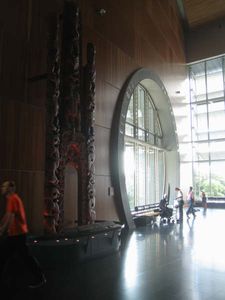 Après un samedi sportif, nous avons opté pour un dimanche culturel : nous sommes retournés visiter le Te Papa, un des principaux musées de Nouvelle Zélande, consacré aux Maoris et à l’histoire du pays, que nous avions déjà pu découvrir le lendemain de notre première arrivée en Nouvelle Zélande, en octobre 2005. Nous avons également visité une exposition temporaire sur les arts ancestraux du Japon. Nous n’avons malheureusement pas pu voir celle sur Cézanne et Picasso, faute de temps. Ce n’est que partie remise ! Et puis la culture, il ne faut pas trop en abuser :-).