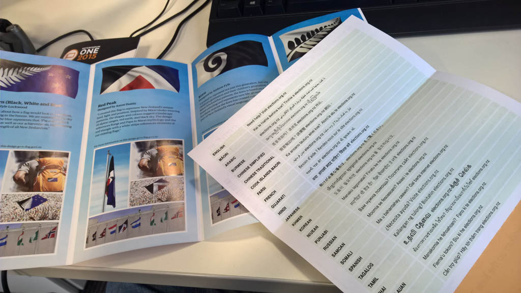 Les Neo-Zelandais sont appeles a voter pour un nouveau drapeau. Je ne suis pas personellement convaincu de l'urgence de cette question, mais ne peut qu'etre emerveille par la facilite qu'a ce peuple a se reinventer et a regarder vers l'avenir. Les instructions pour voter, en toutes les langues, demontrent aussi d'une grande capacite d'inclusion et d'accueil, qui est tout a l'honneur de ce pays.