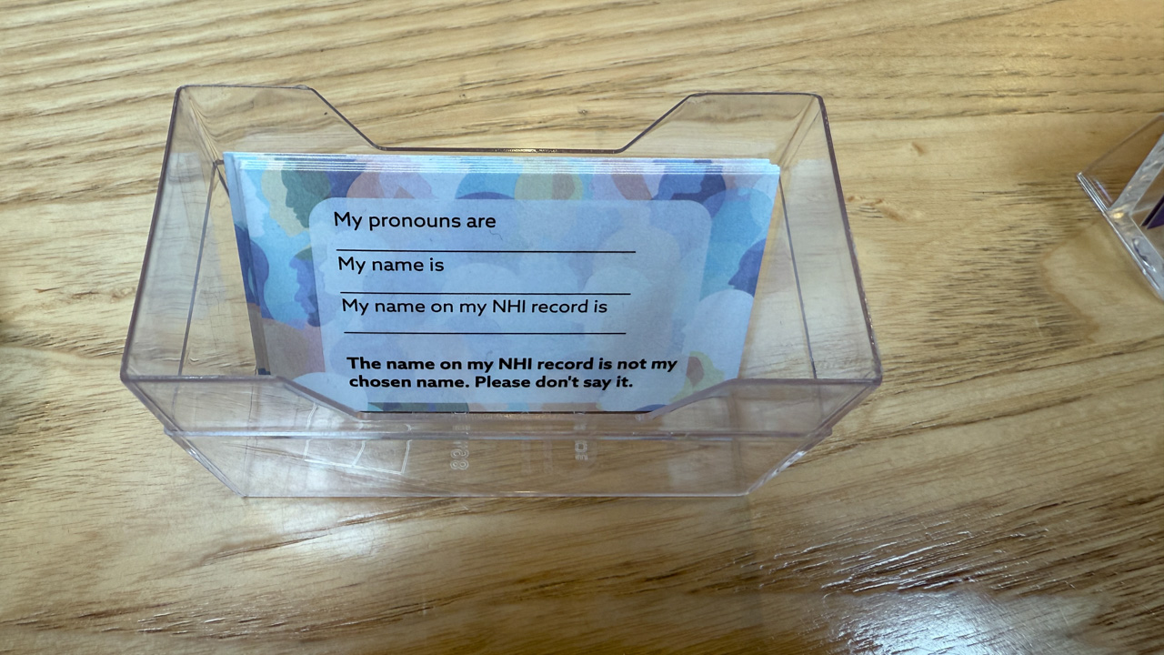 C'est ce qui me vient a l'esprit quand je m'approche de la reception de notre centre medical. Ils proposent cette petite carte pour aider les gens dont l'identite est en transition ou a transitionne.