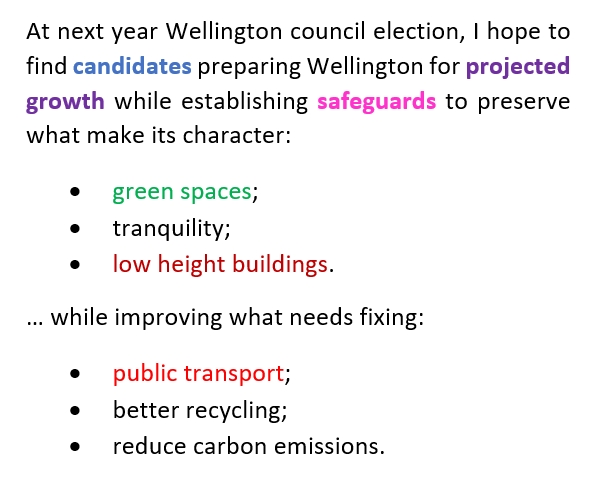 At next year Wellington council election, I hope to find candidates preparing Wellington for projected growth while establishing safeguards to preserve what make its character: