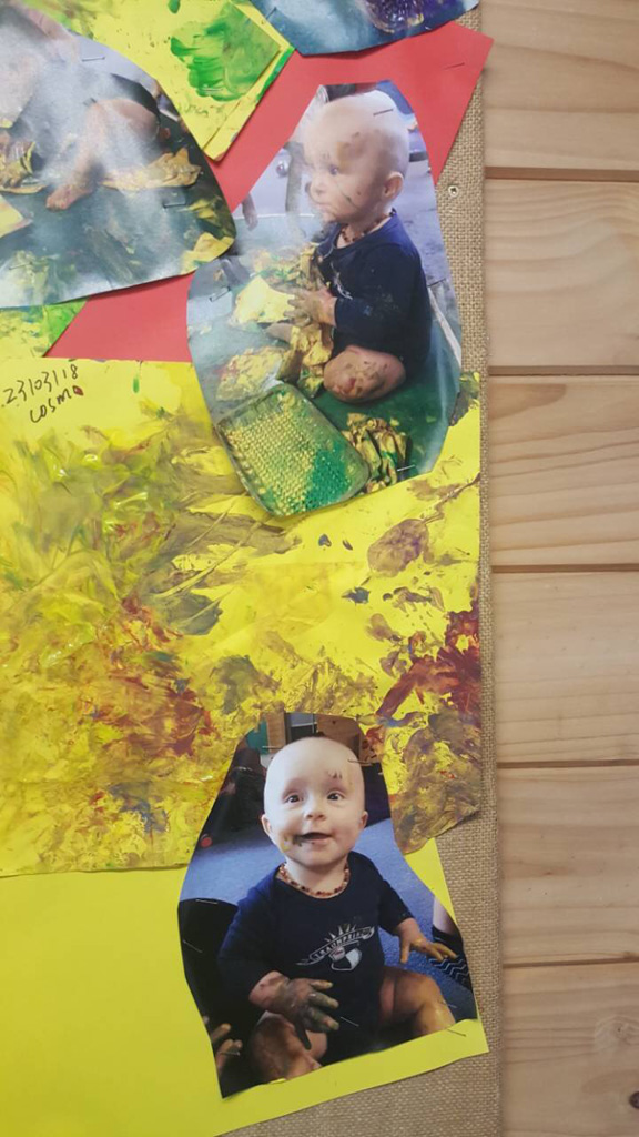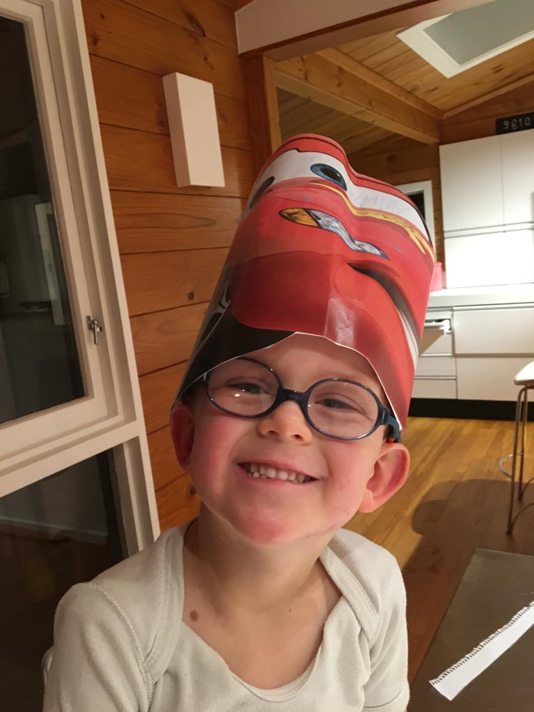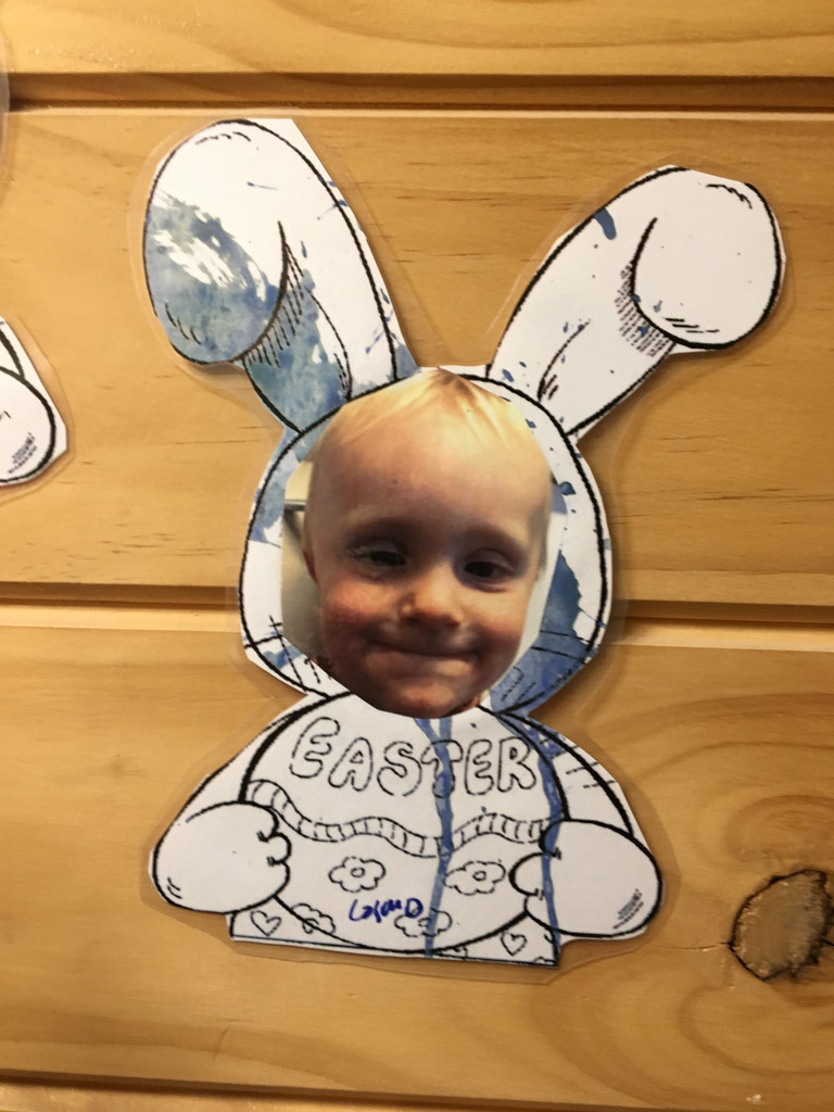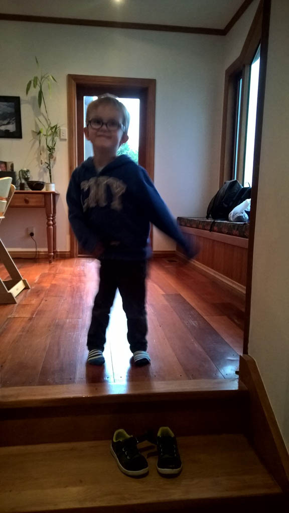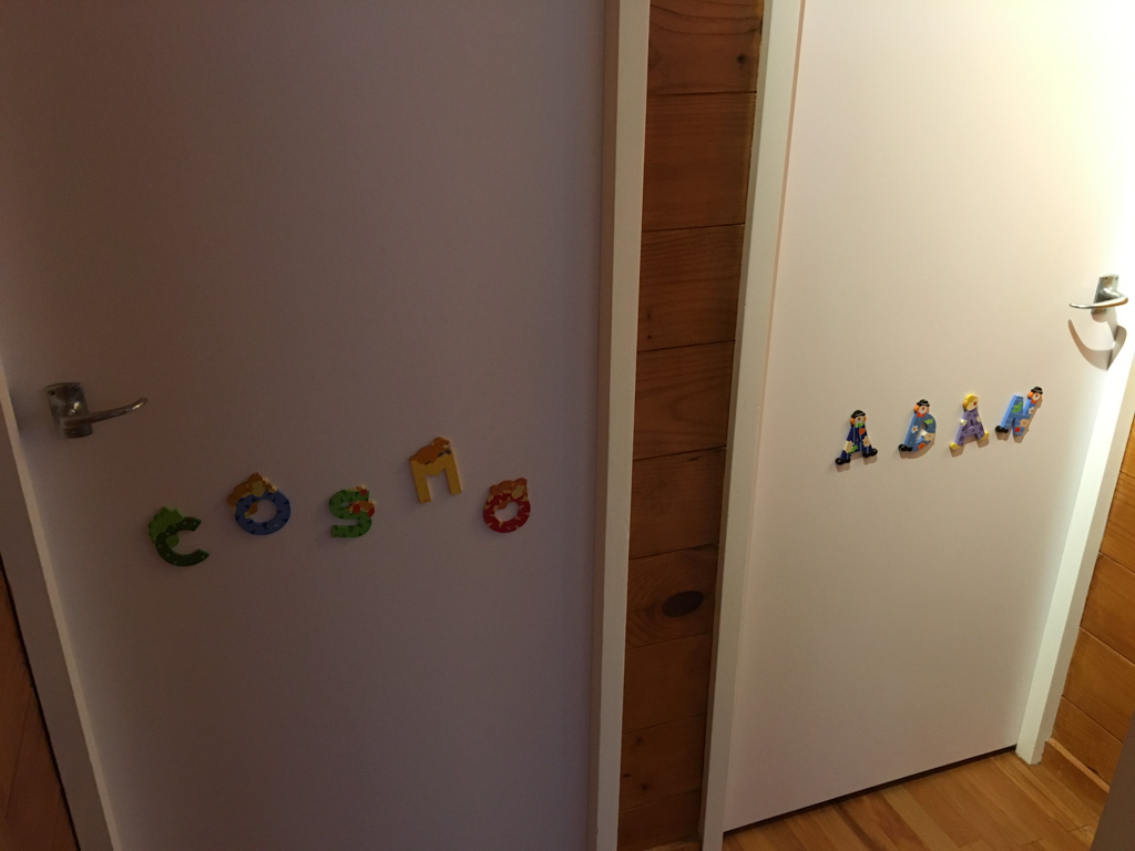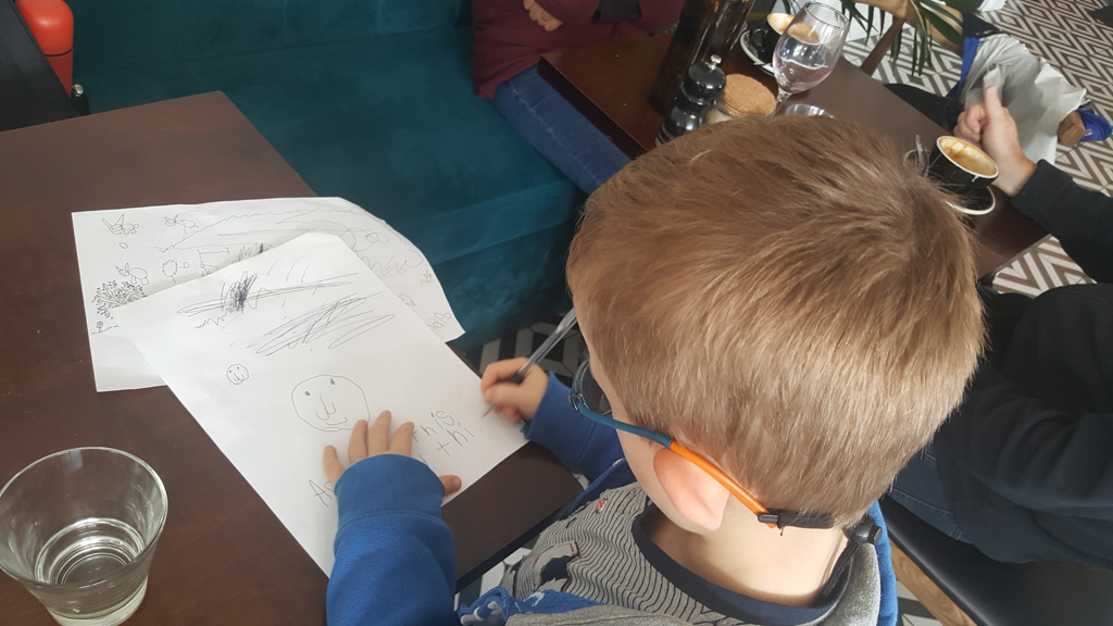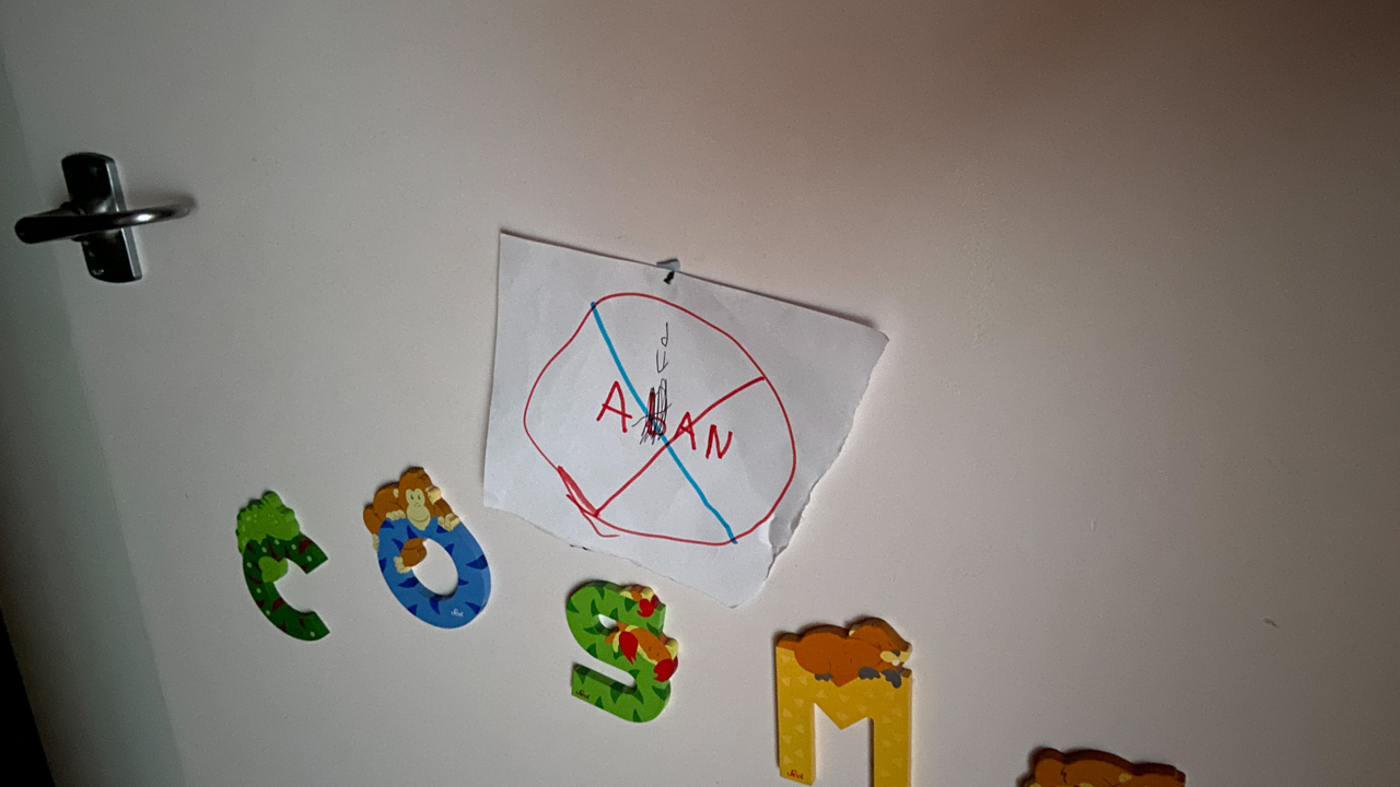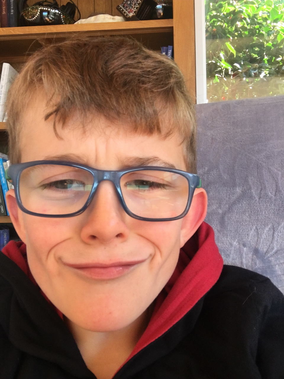 Cosmo est revenu de l'ecole avec quelques artworks ... dont un autoportrait qu'il a accroche sur ma fenetre de bureau!