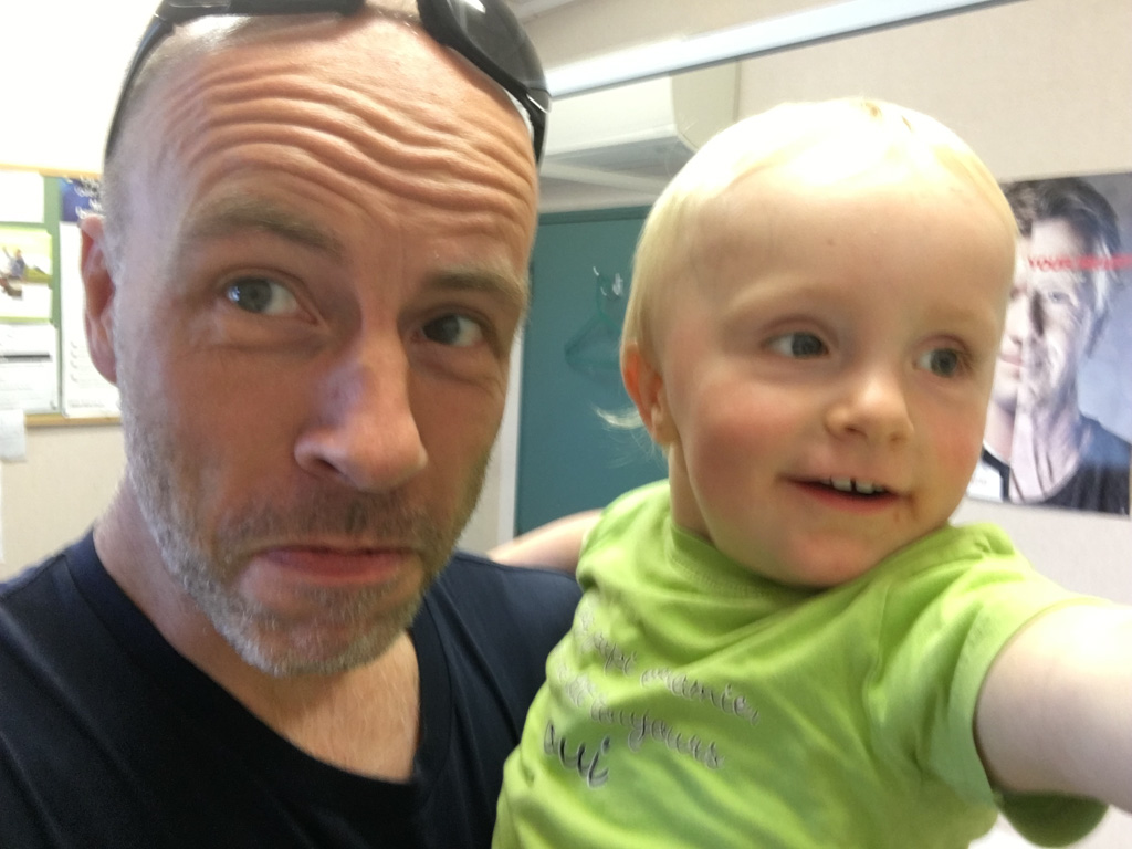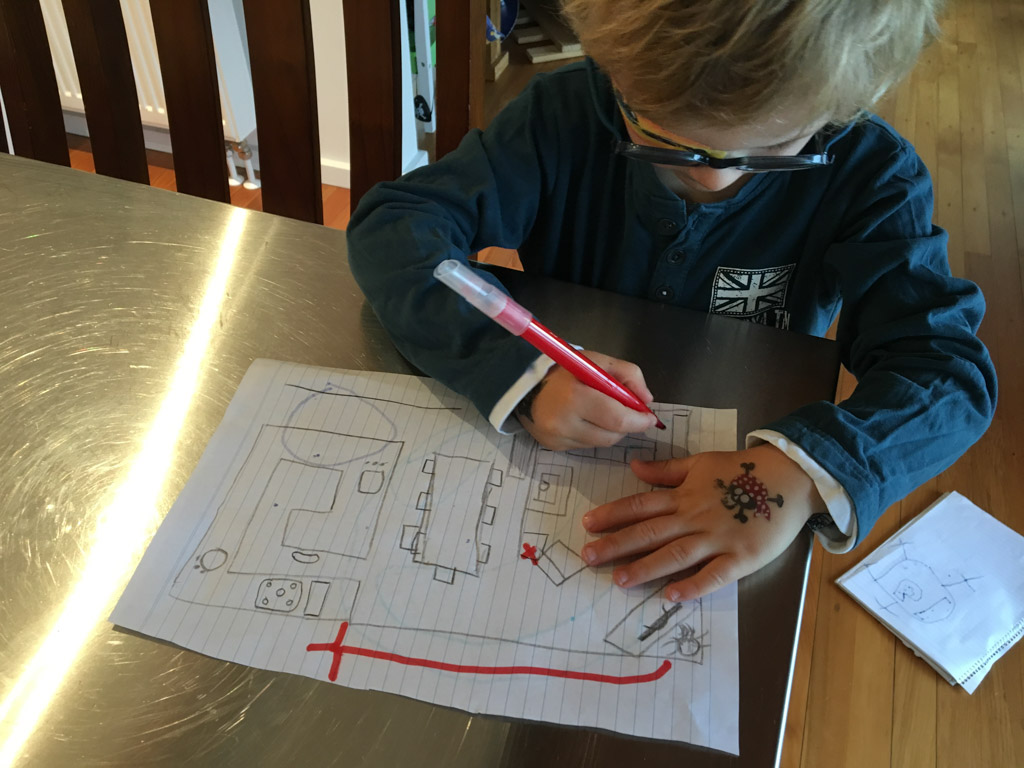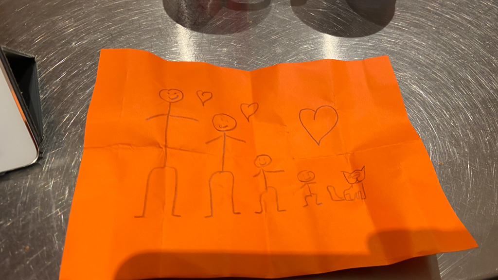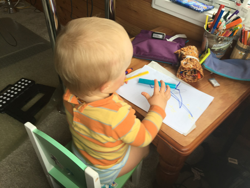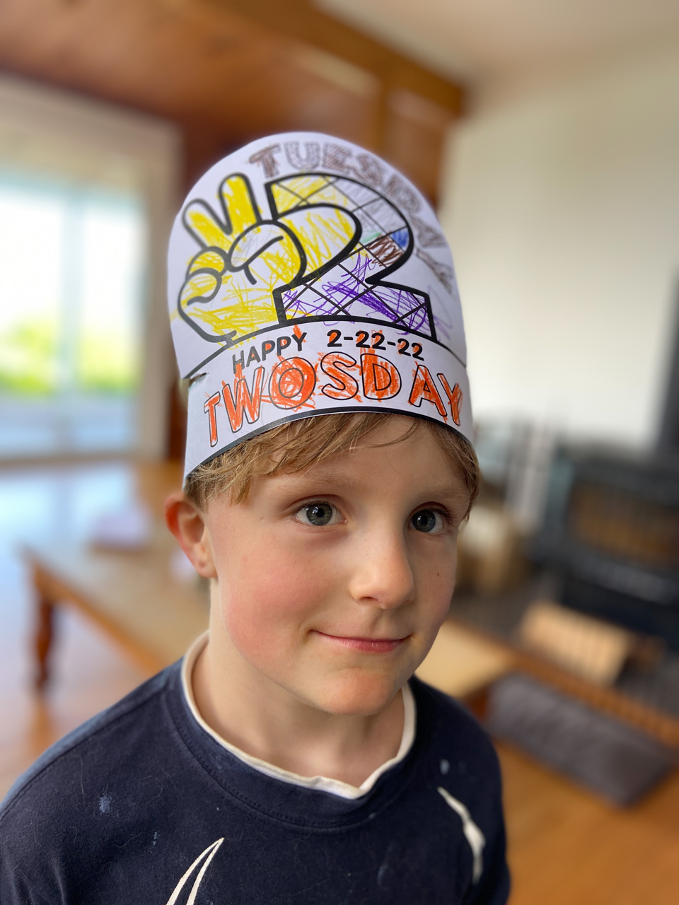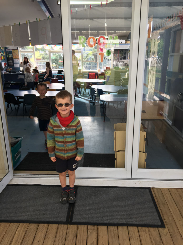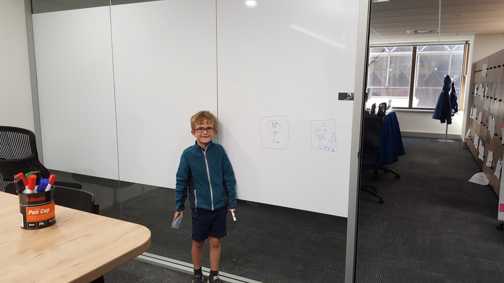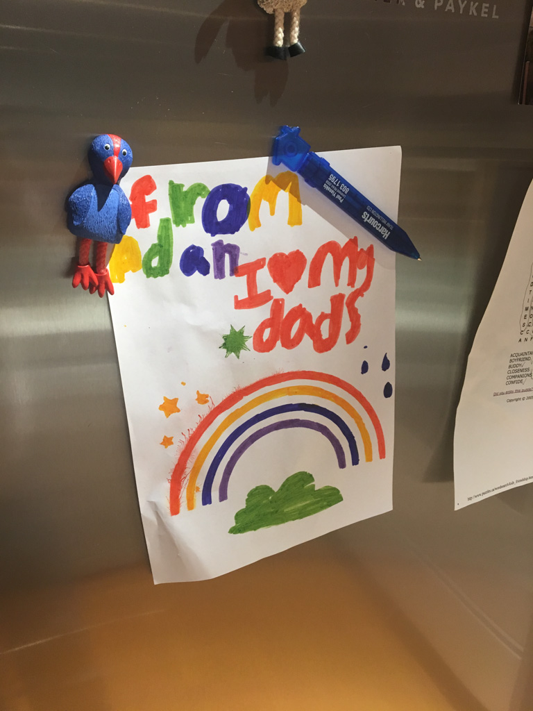 Cosmo est revenu de l'ecole avec quelques artworks ... dont un autoportrait qu'il a accroche sur ma fenetre de bureau!