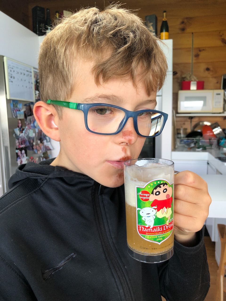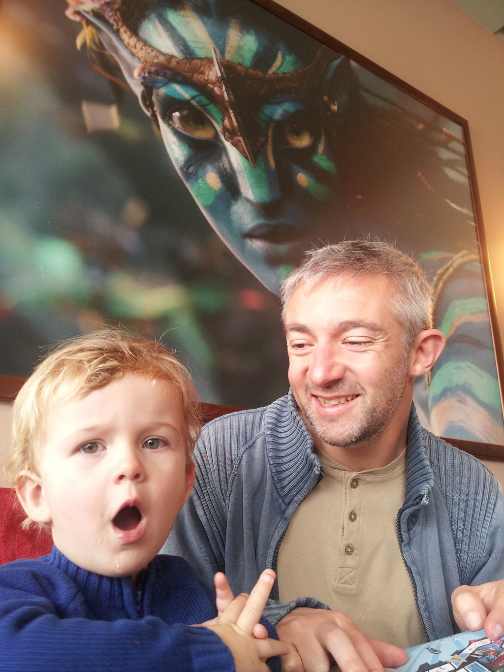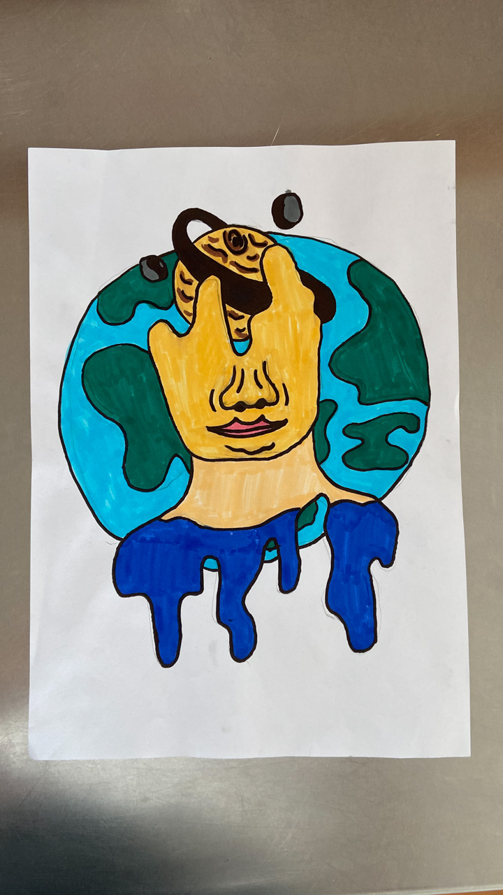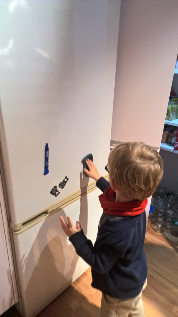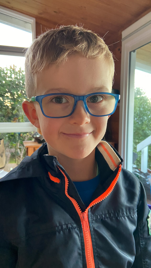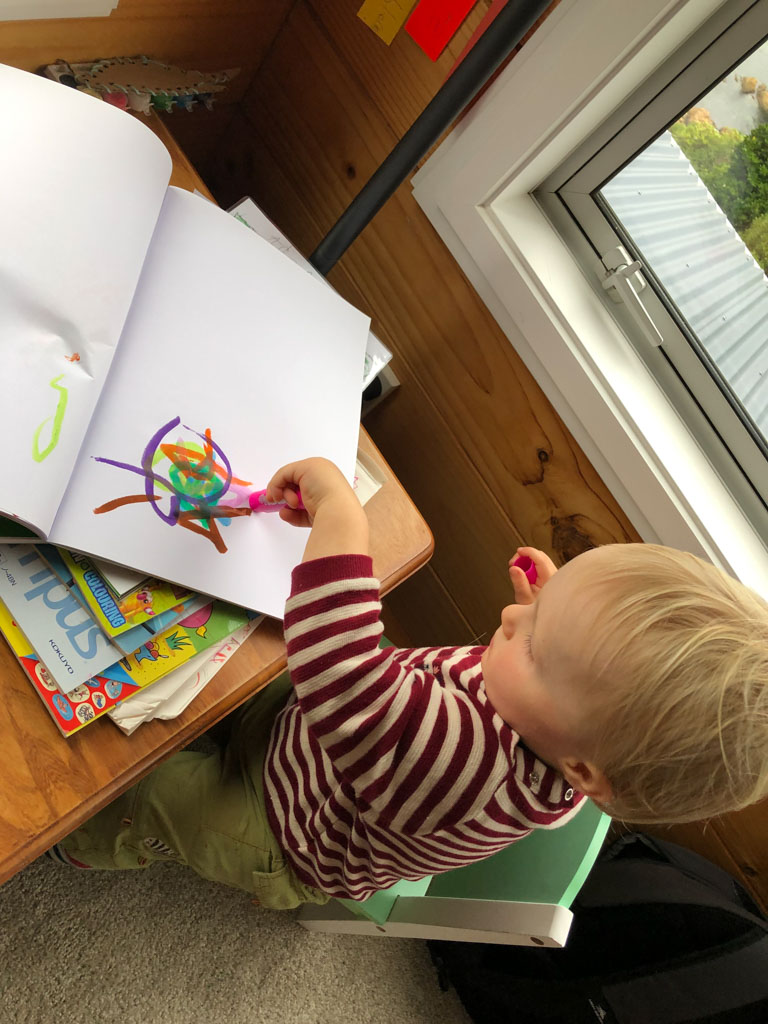 Cosmo est revenu de l'ecole avec quelques artworks ... dont un autoportrait qu'il a accroche sur ma fenetre de bureau!