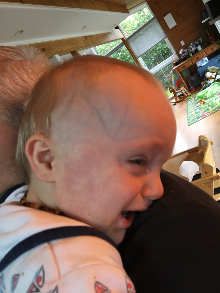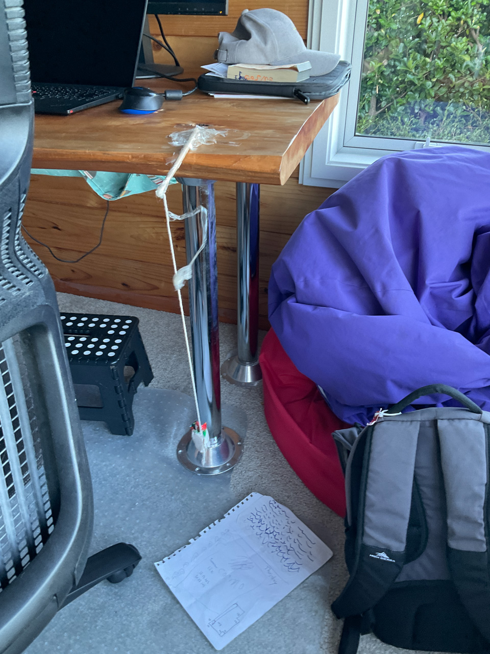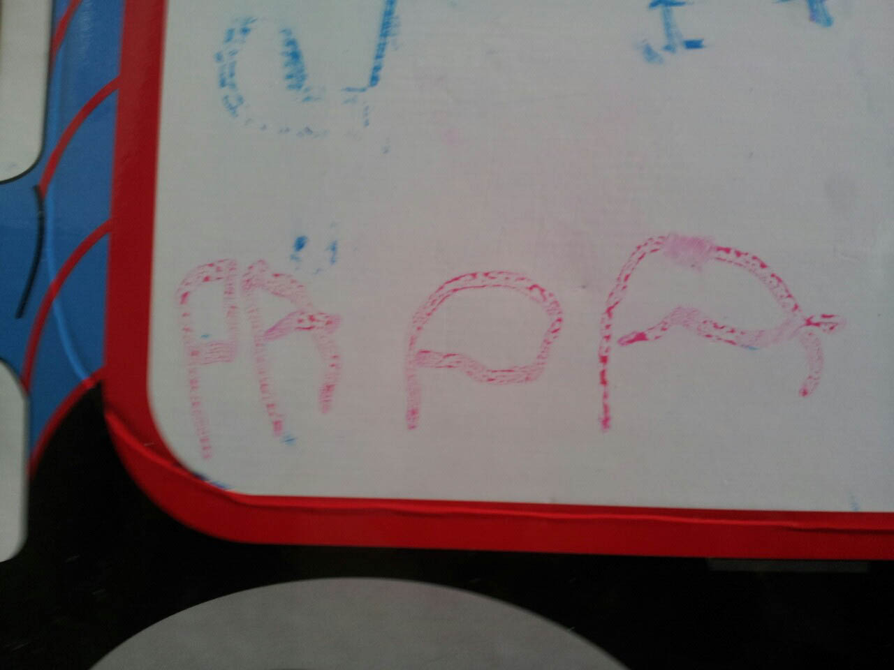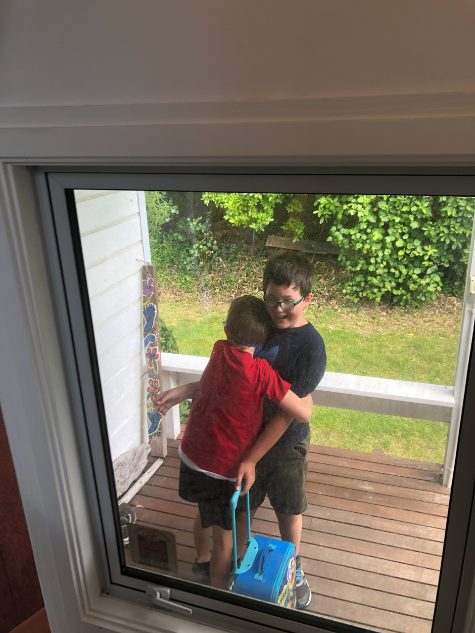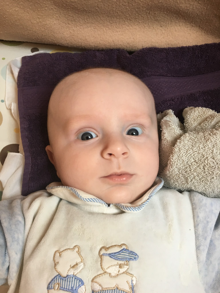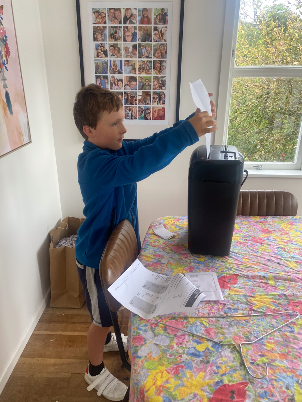 Cosmo est revenu de l'ecole avec quelques artworks ... dont un autoportrait qu'il a accroche sur ma fenetre de bureau!