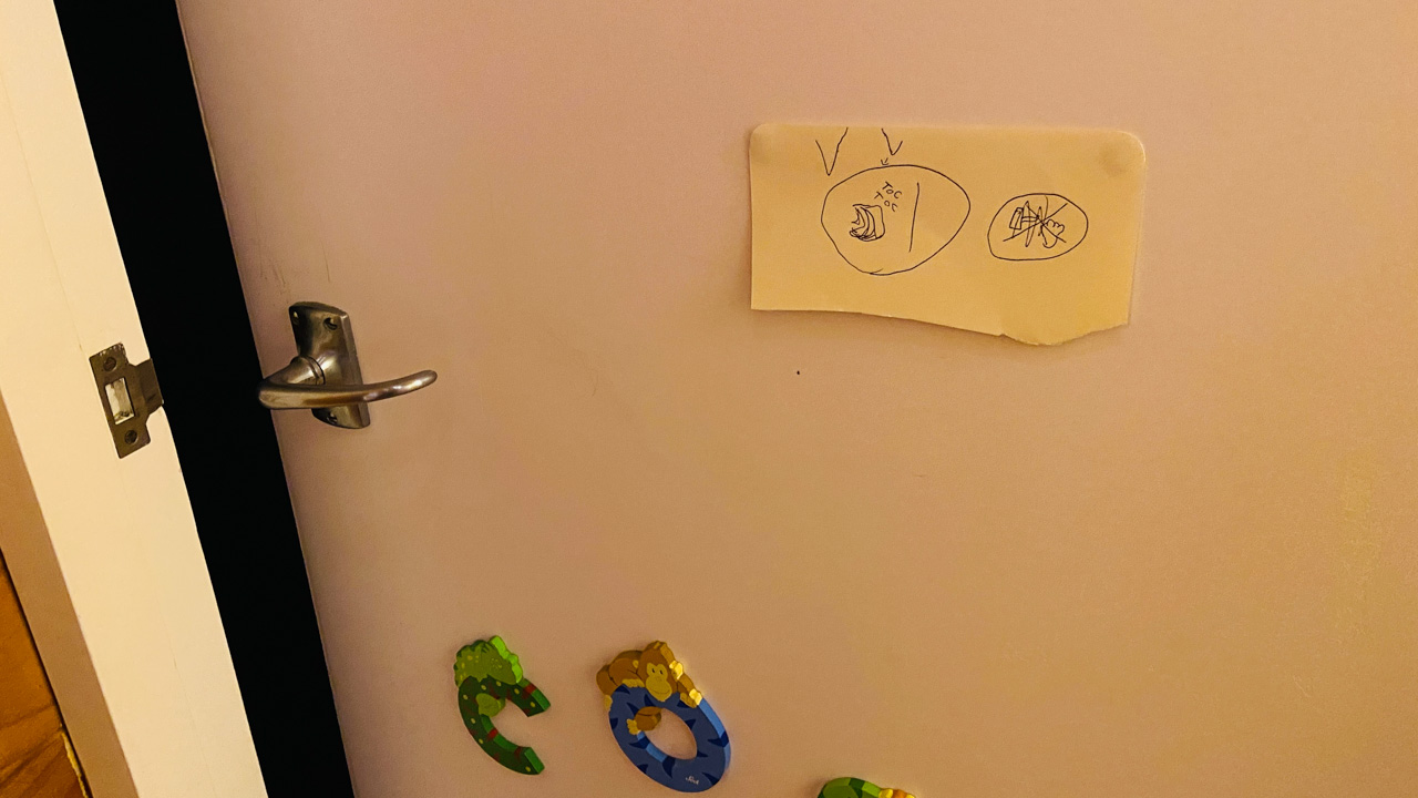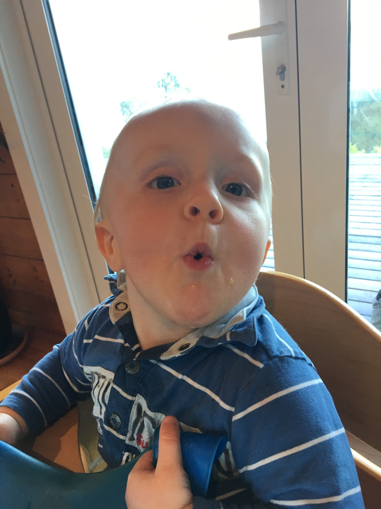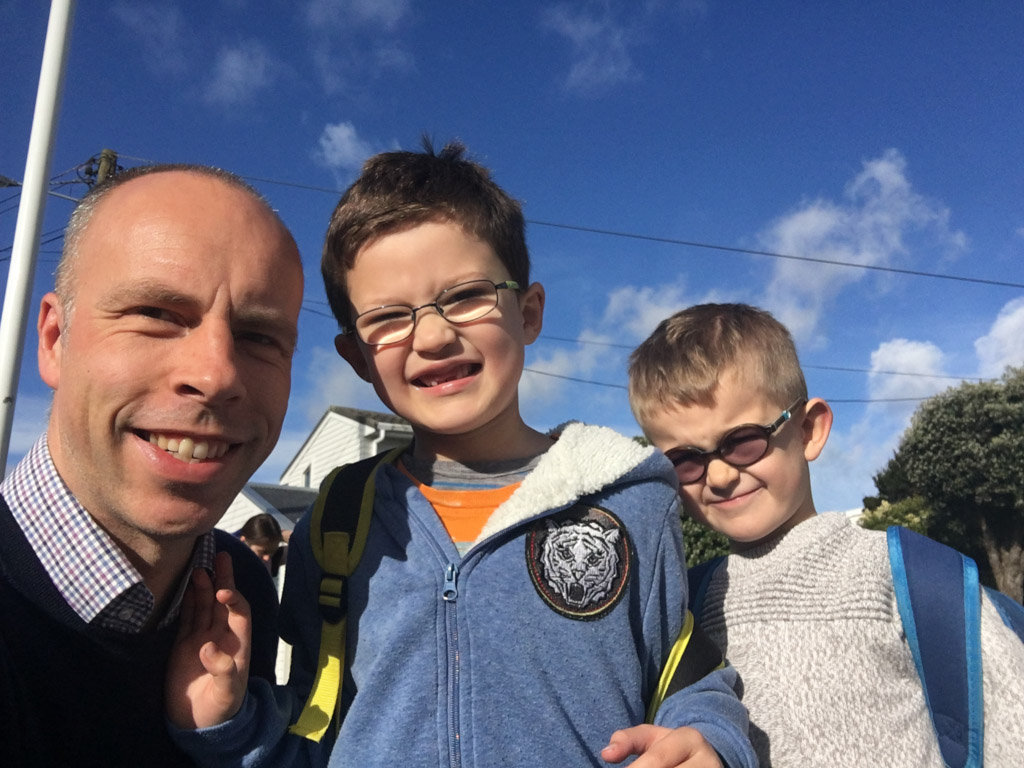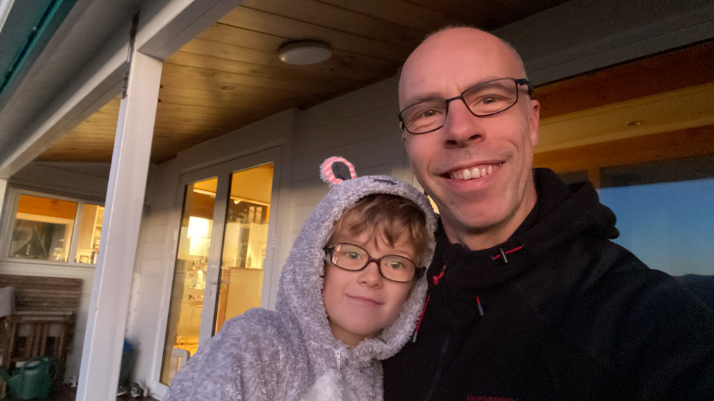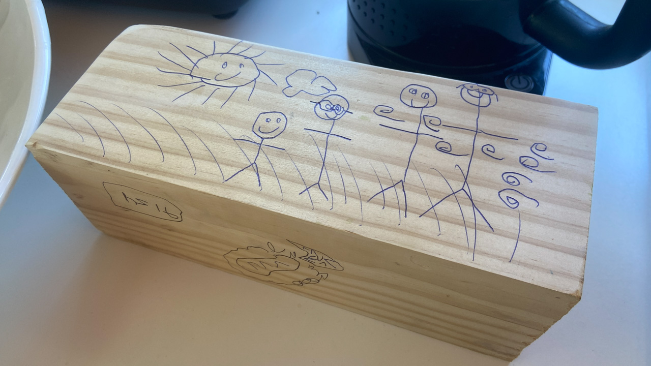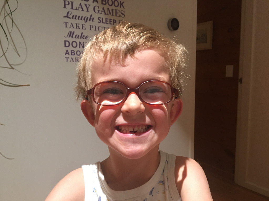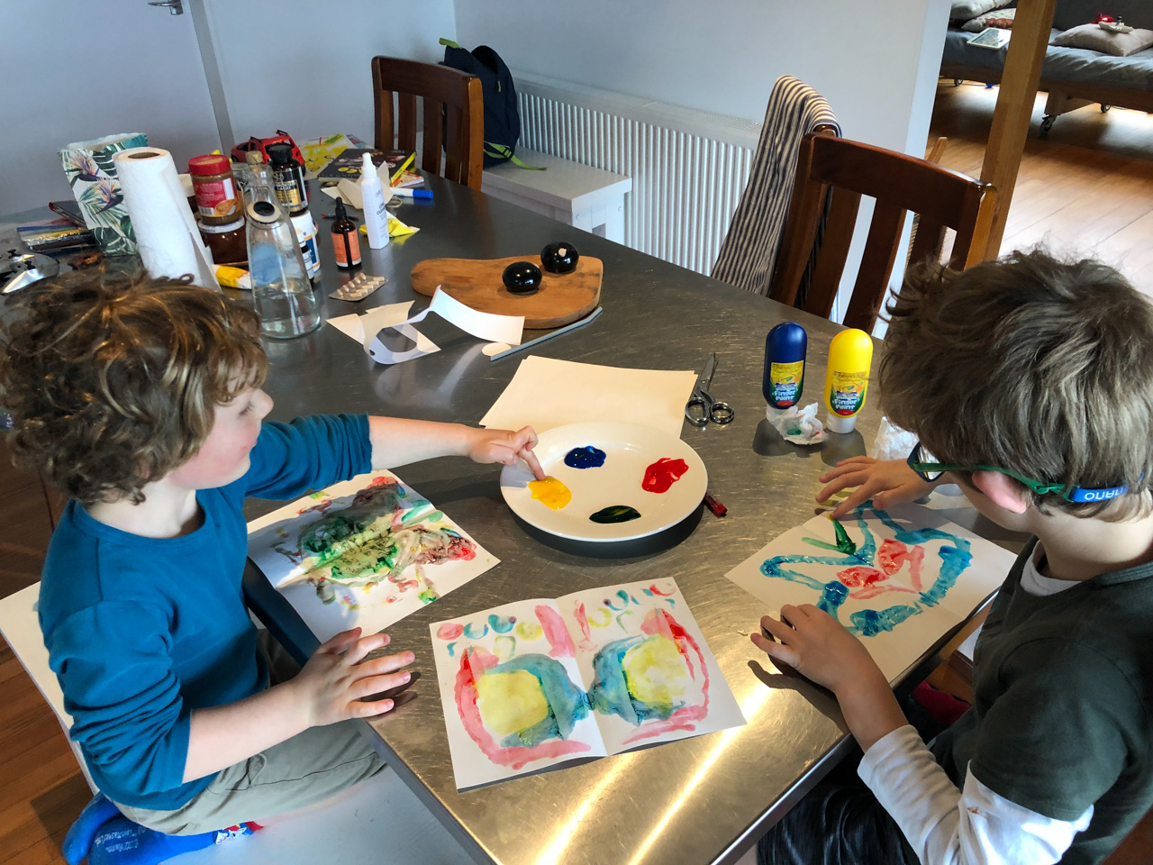 Cosmo est revenu de l'ecole avec quelques artworks ... dont un autoportrait qu'il a accroche sur ma fenetre de bureau!