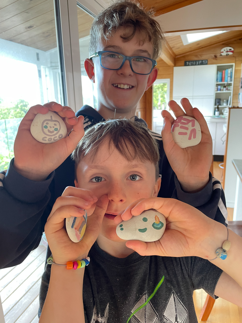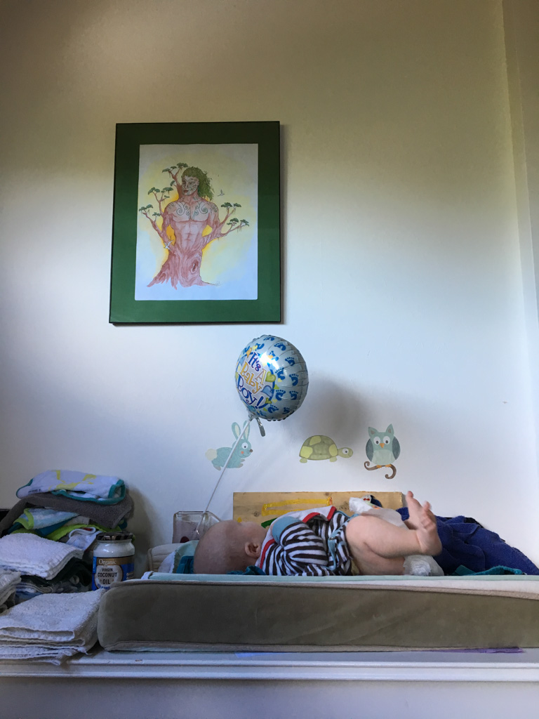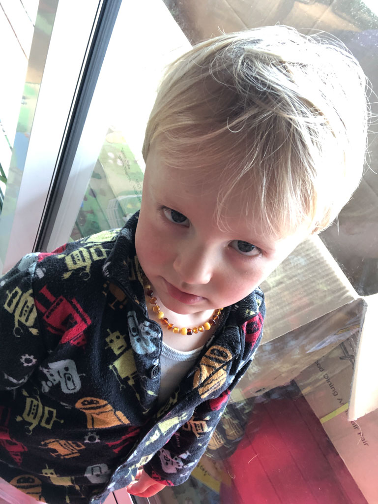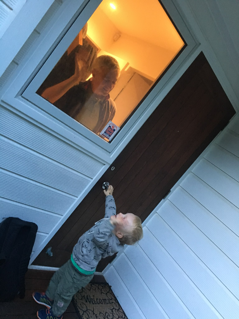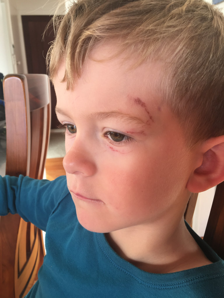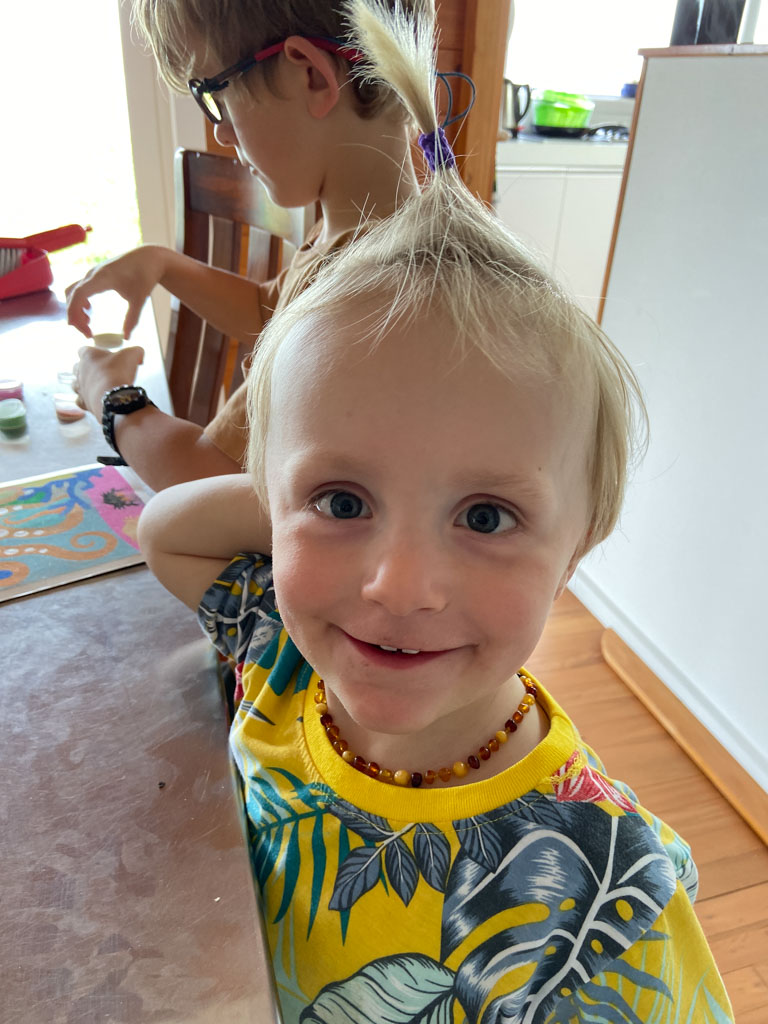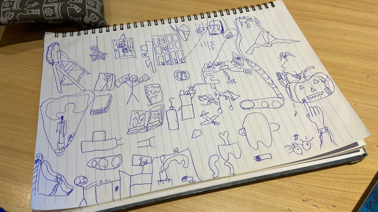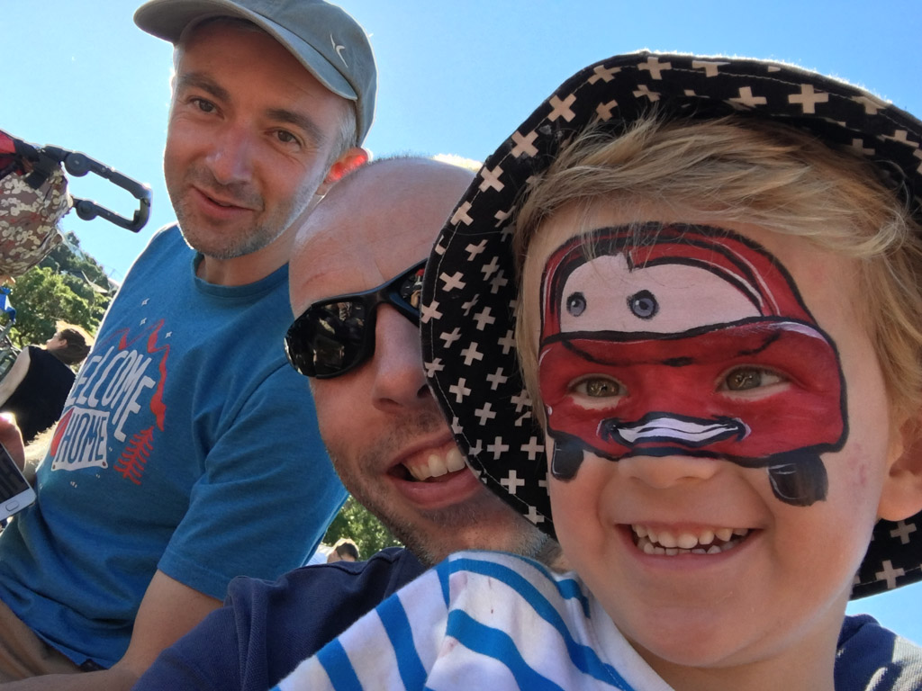 Cosmo est revenu de l'ecole avec quelques artworks ... dont un autoportrait qu'il a accroche sur ma fenetre de bureau!