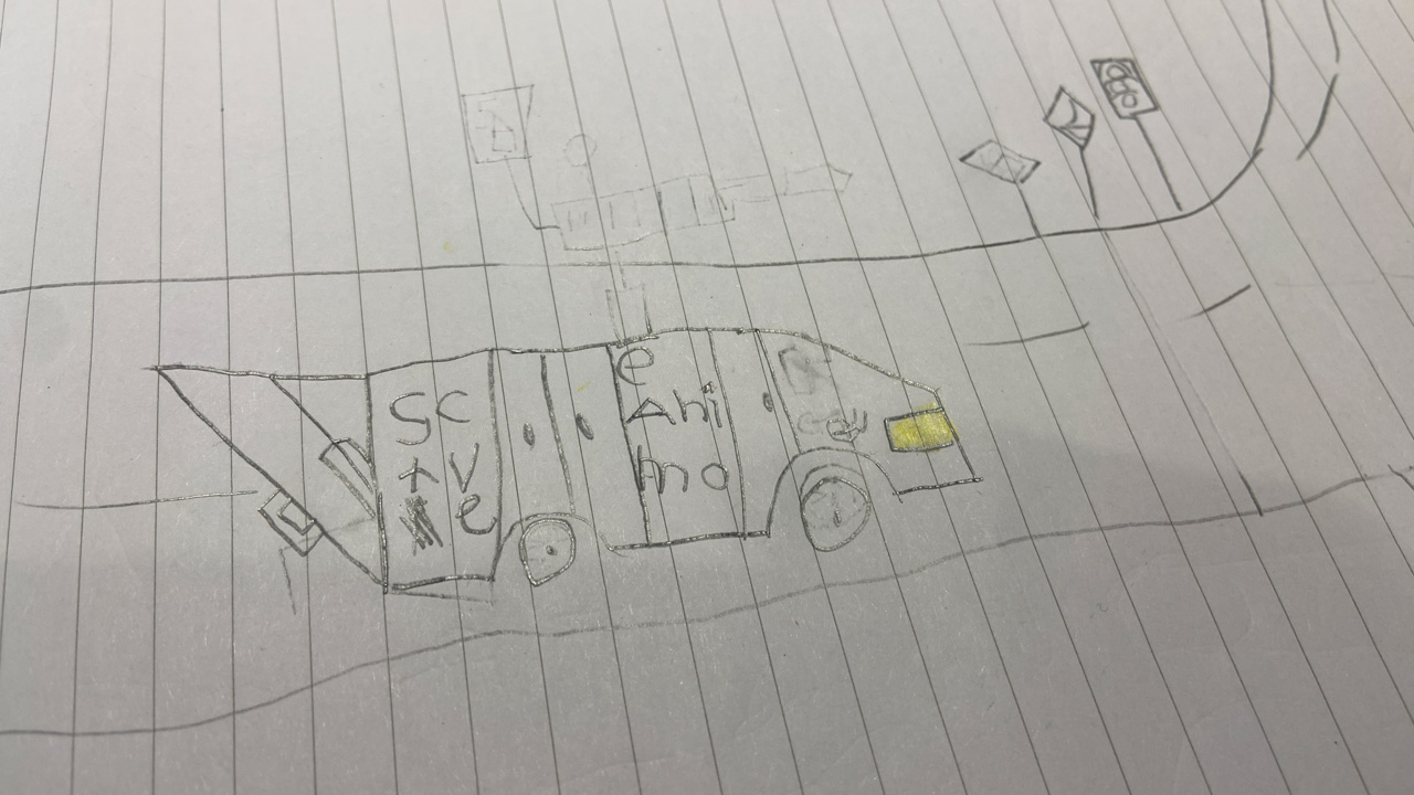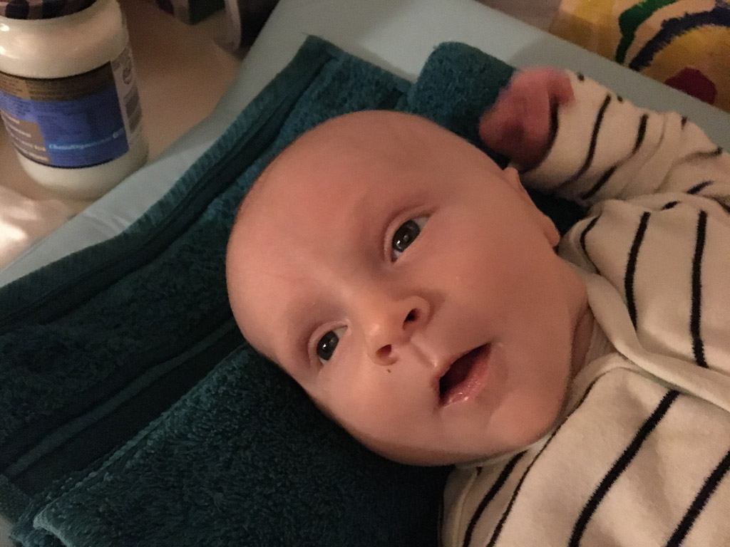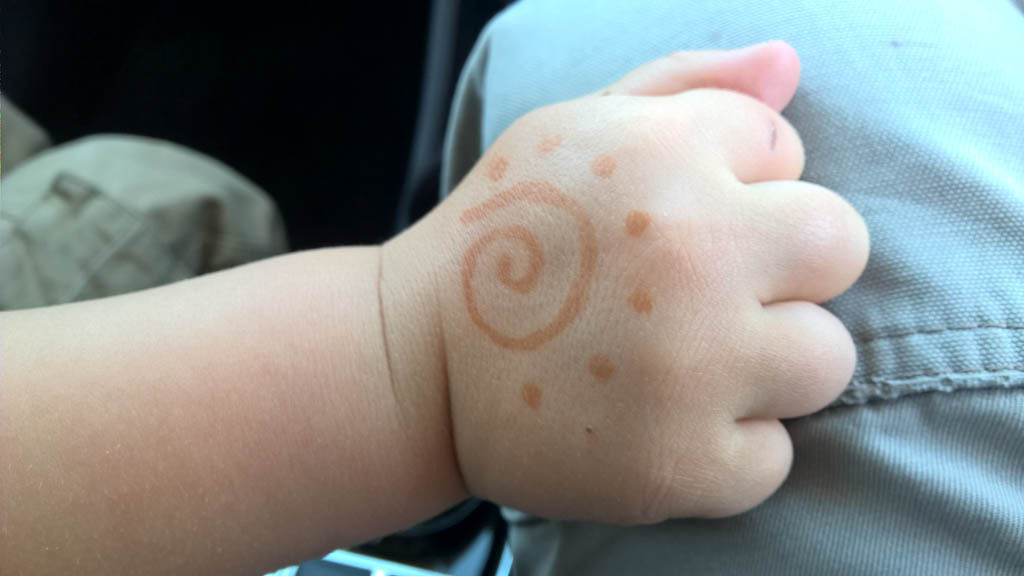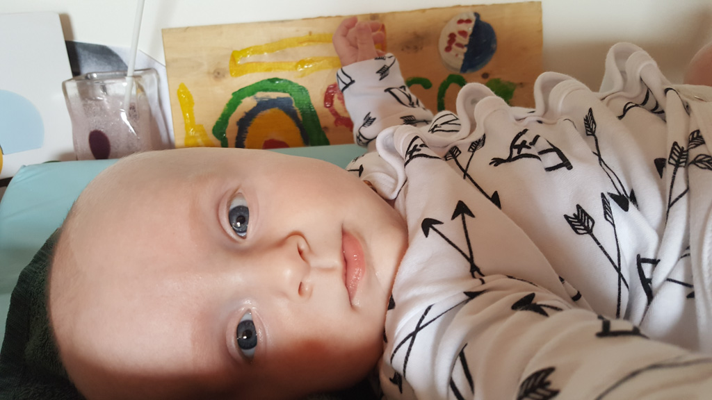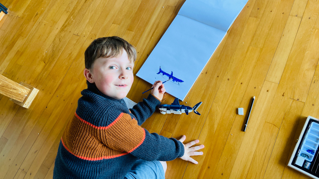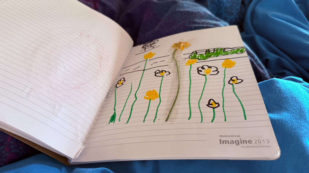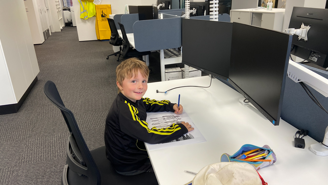 Cosmo est revenu de l'ecole avec quelques artworks ... dont un autoportrait qu'il a accroche sur ma fenetre de bureau!