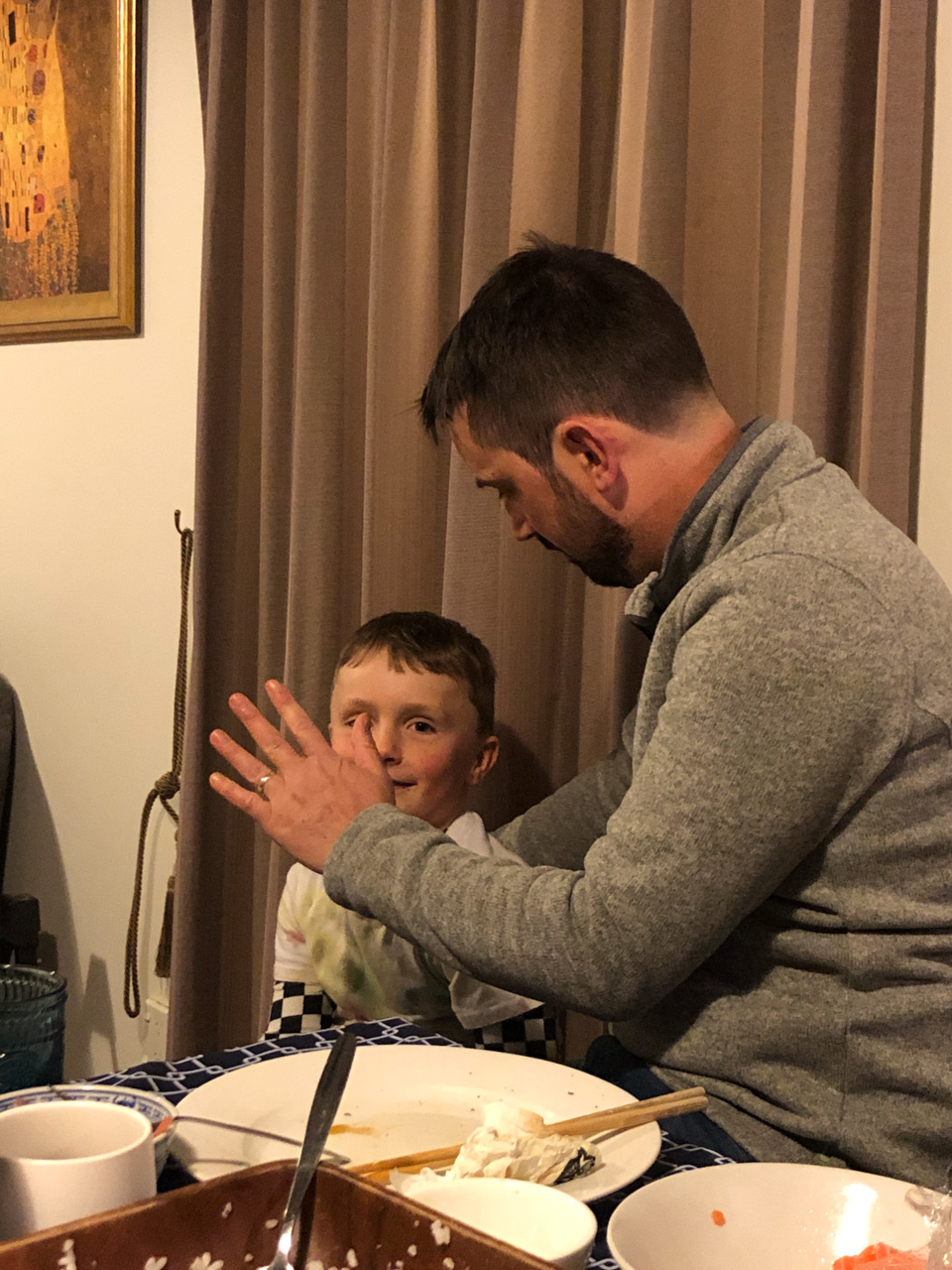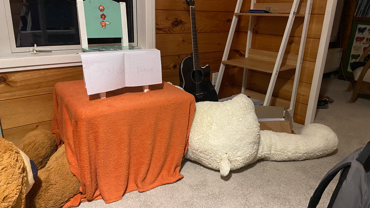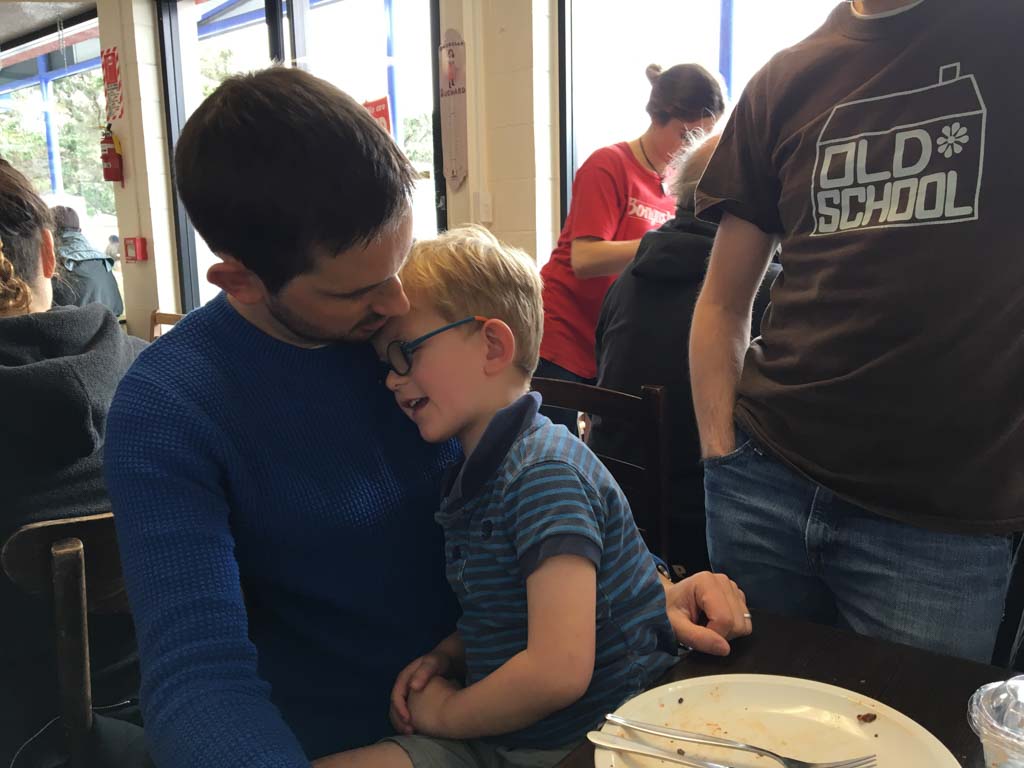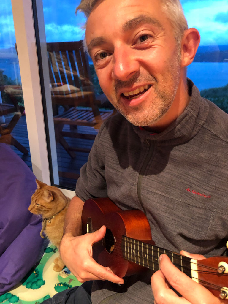 Cosmo a lance cette proposition: on joue Hallelujah, avec lui au piano, Petit Papa a la guitare, et Gros Papa au chant. Et ca a bien marche!!