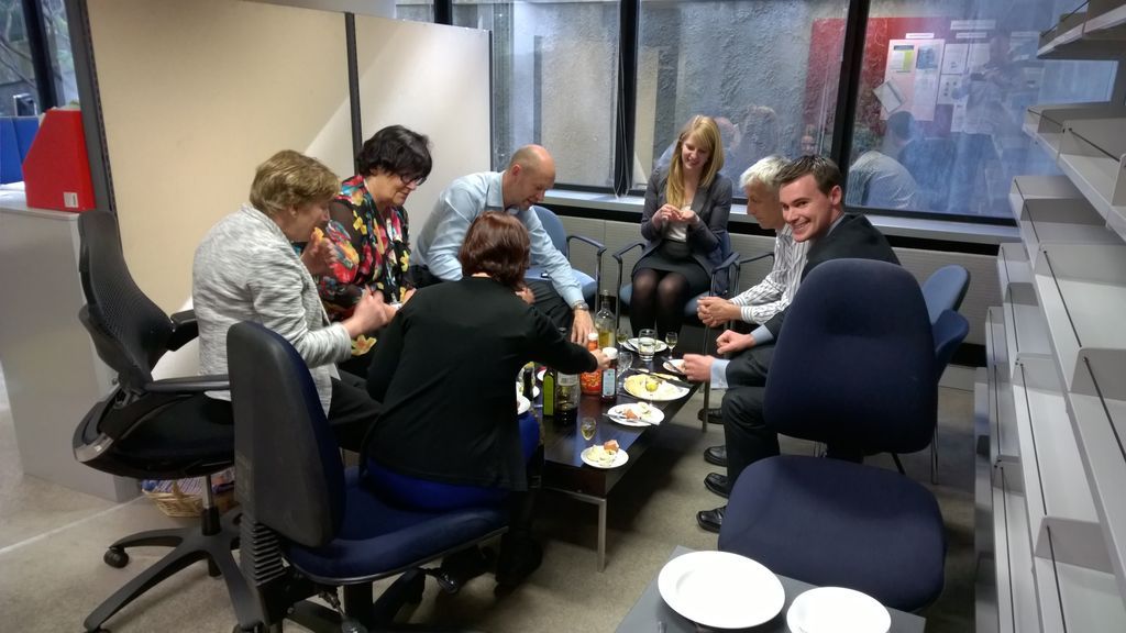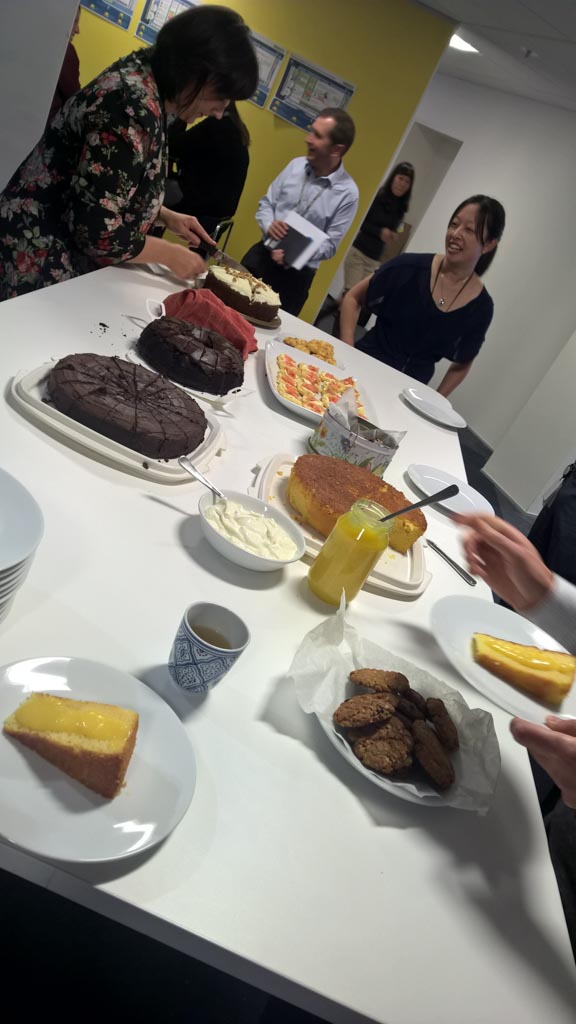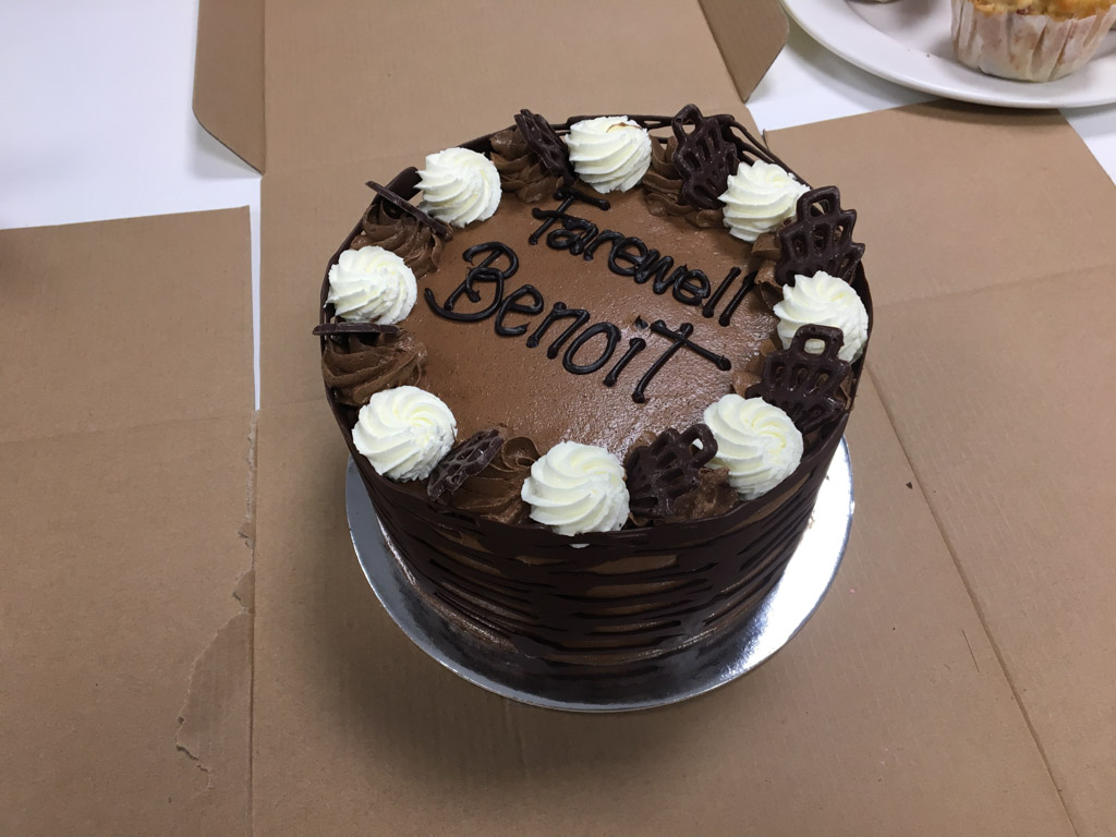 Chaque dernier vendredi du mois, les employes ayant eu leur anniversaire doivent ramener un gateau. On reconnaitra le mien au premier plan!