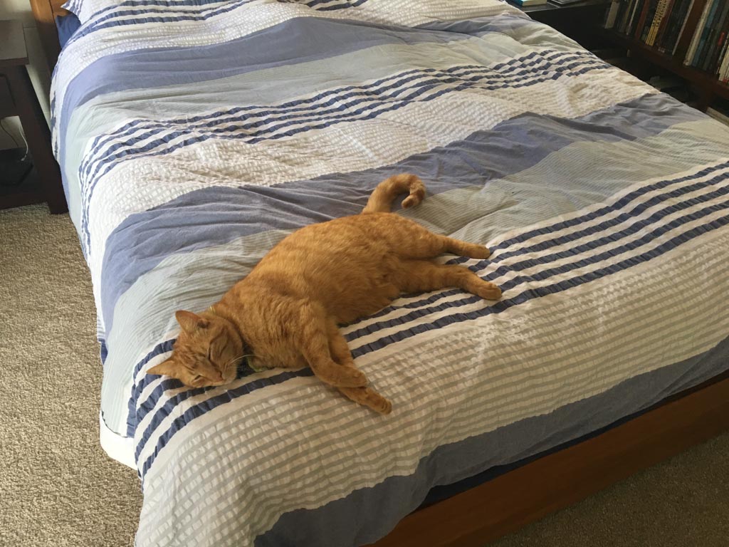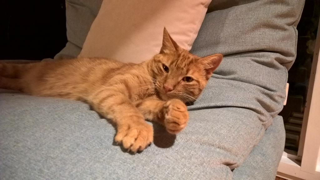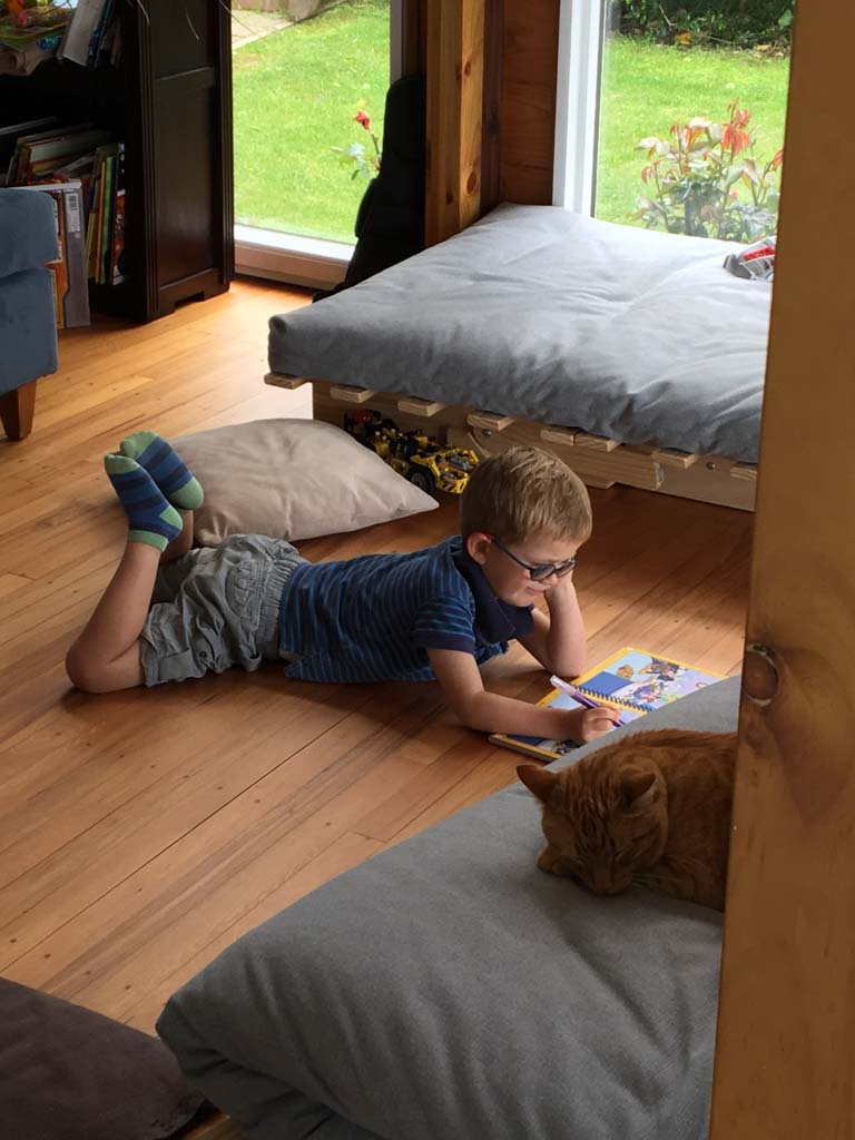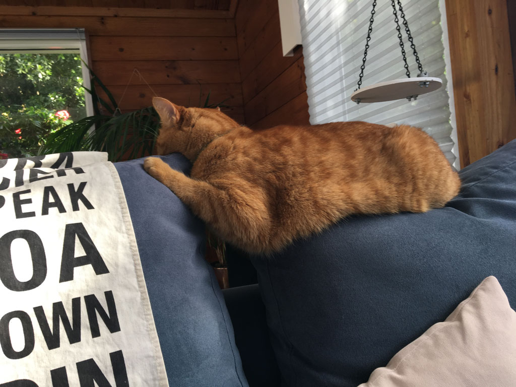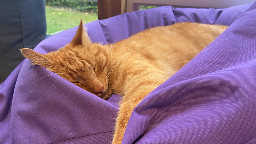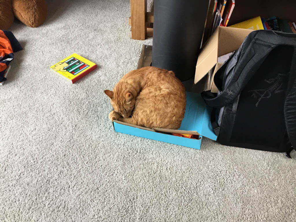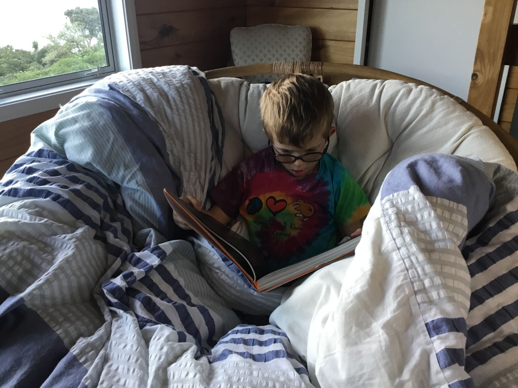 Cosmo s'est organise un petit nid pour bouquiner. Il s'est senti tellement bien qu'il a meme fait une sieste!