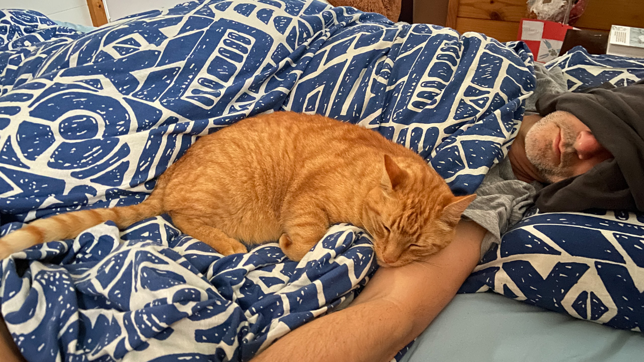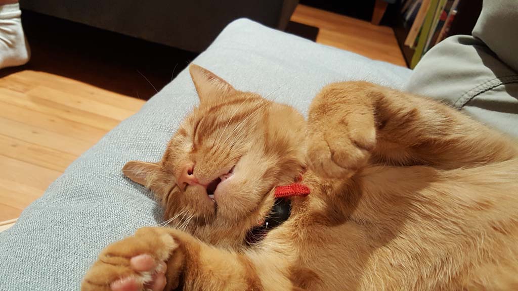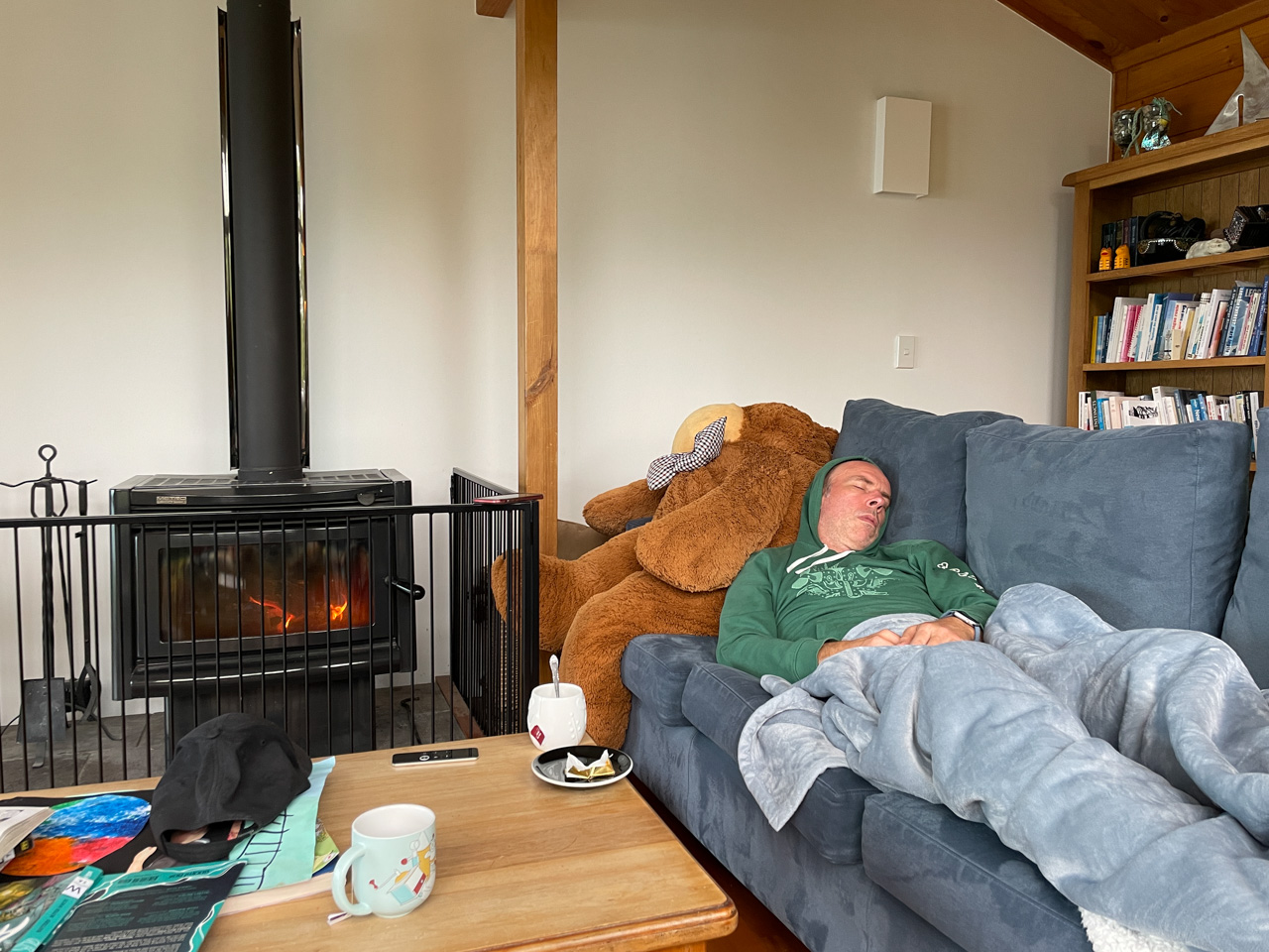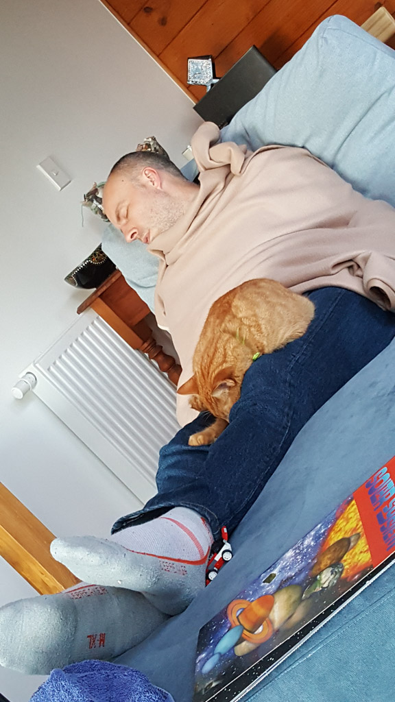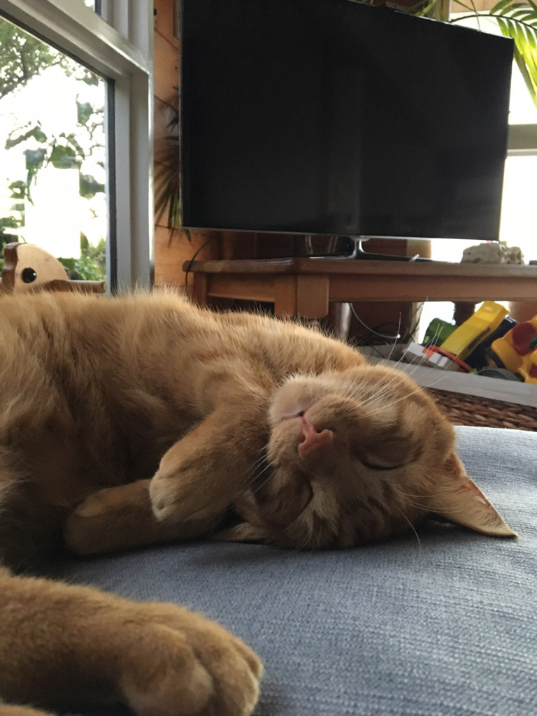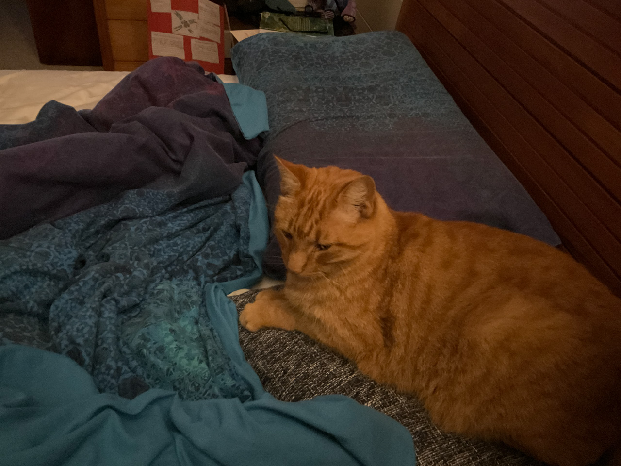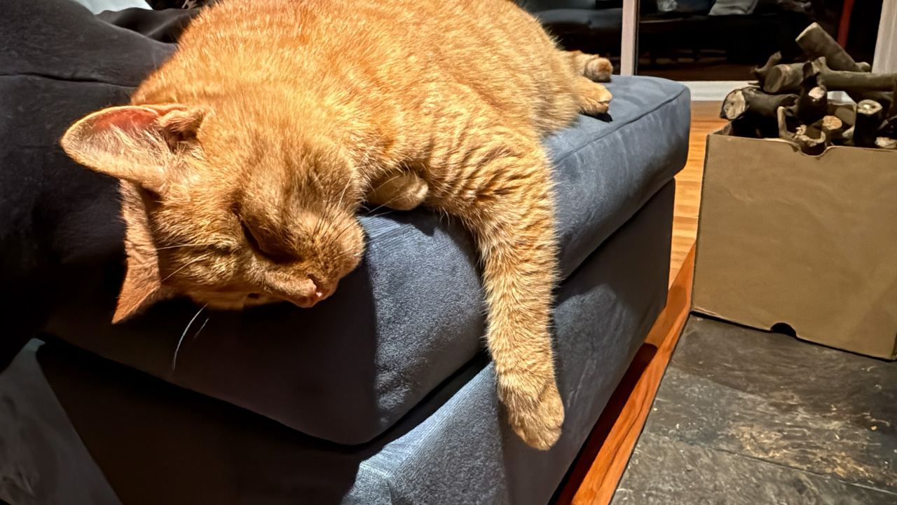 Cosmo s'est organise un petit nid pour bouquiner. Il s'est senti tellement bien qu'il a meme fait une sieste!