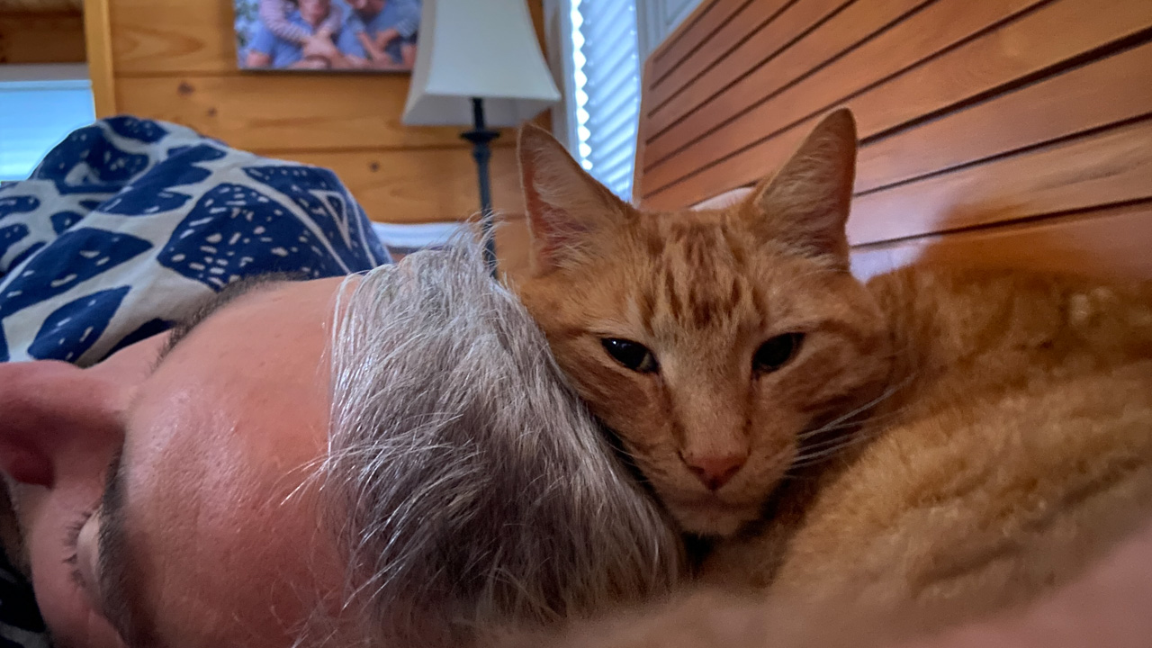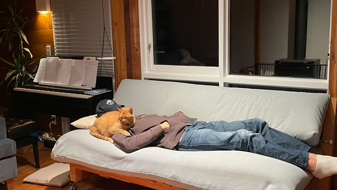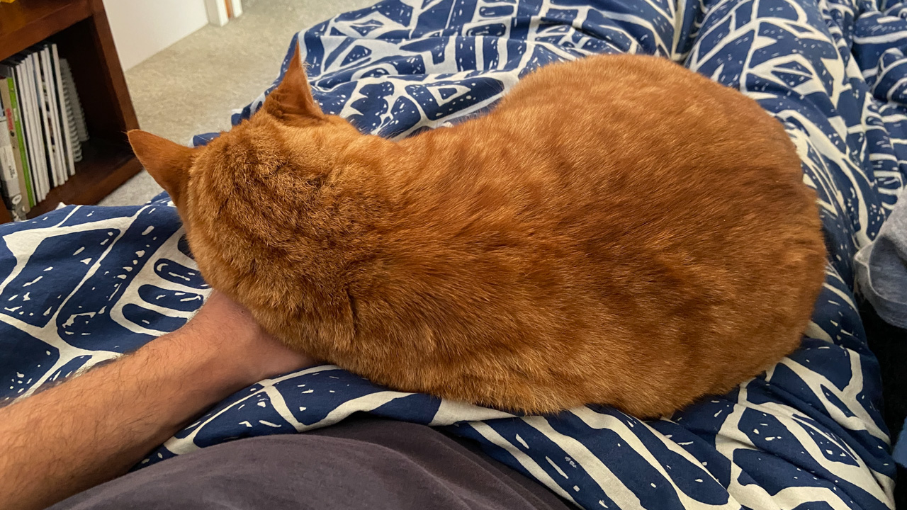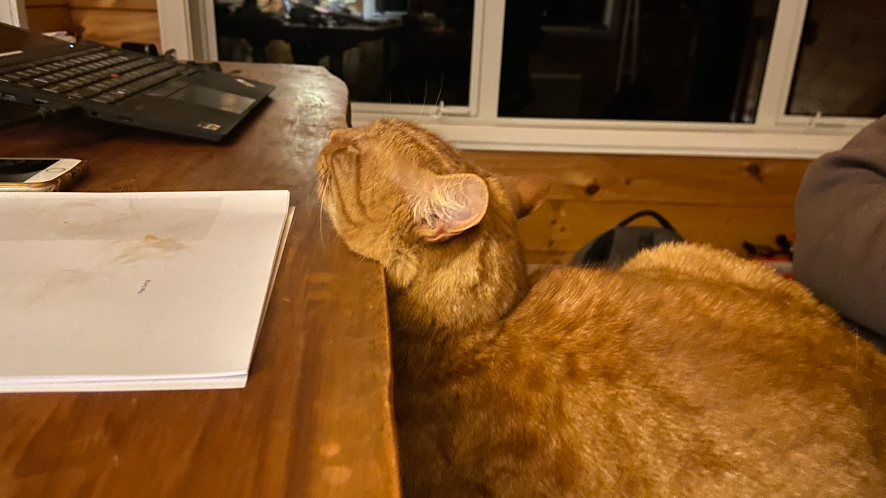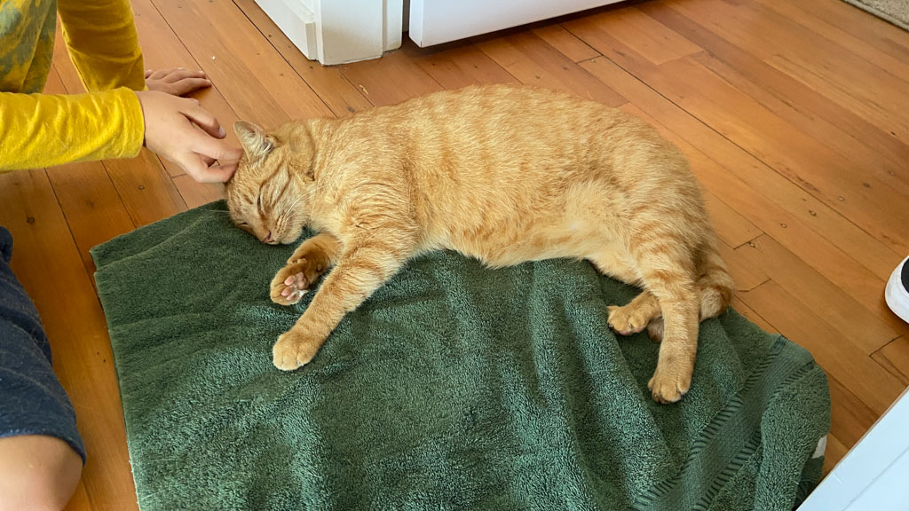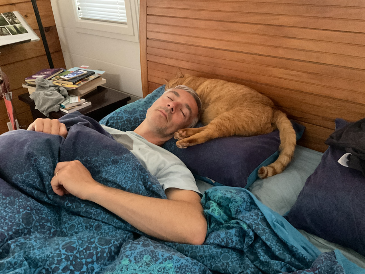 Cosmo s'est organise un petit nid pour bouquiner. Il s'est senti tellement bien qu'il a meme fait une sieste!