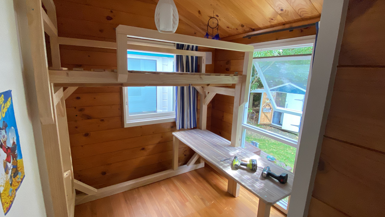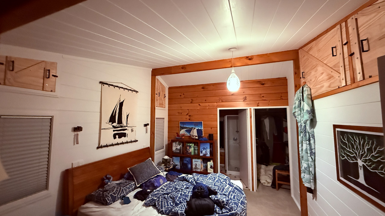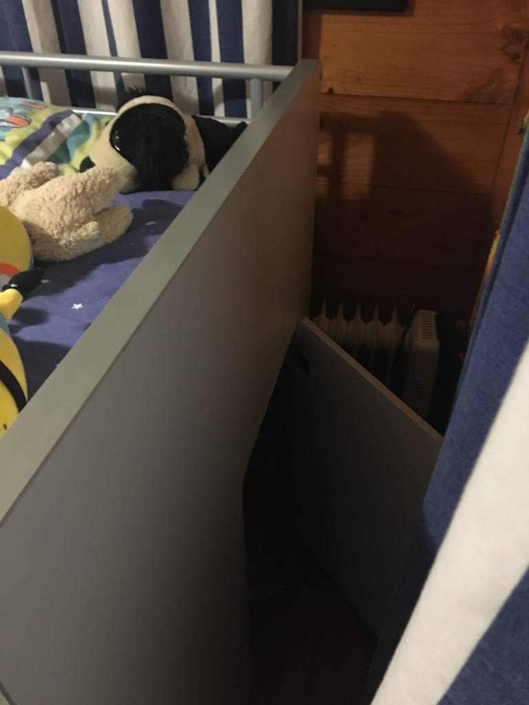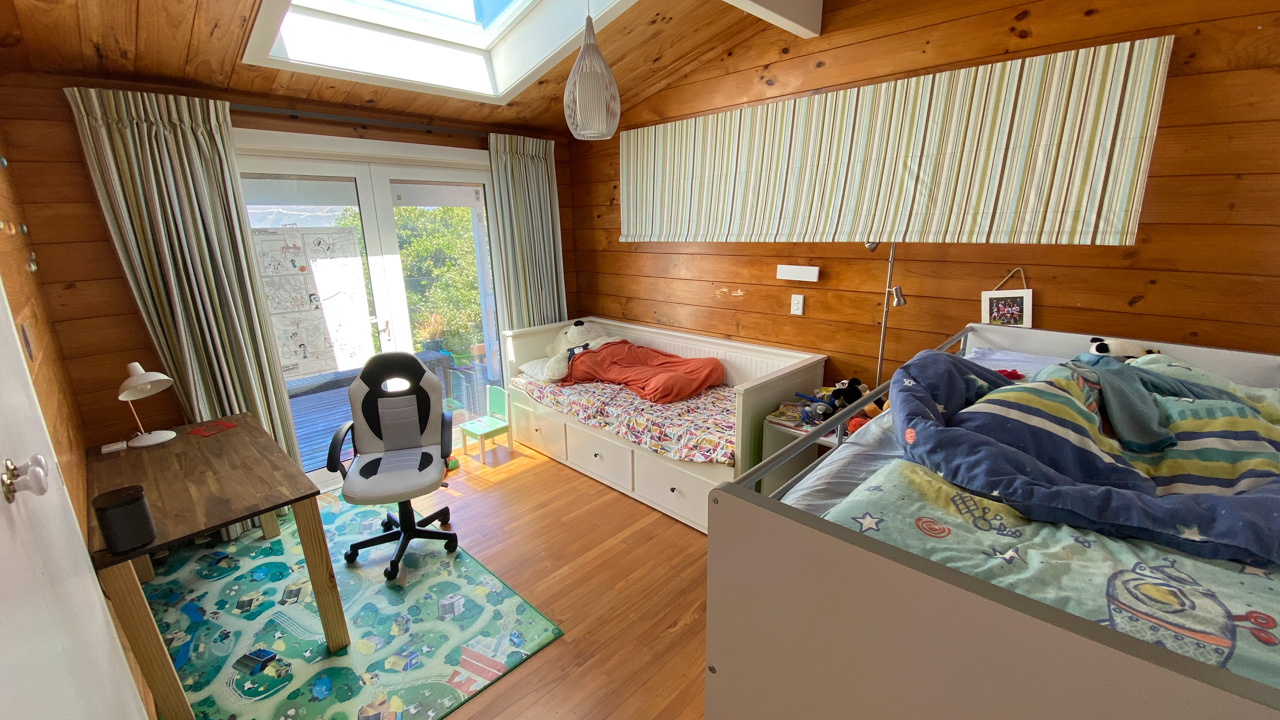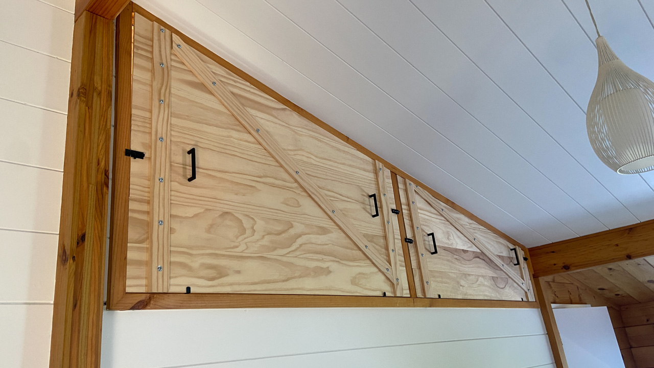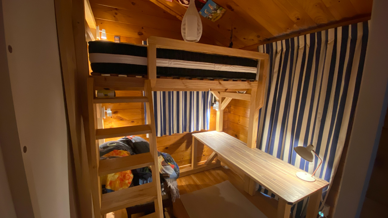 Ce sont les derniers volets que j'ai fabrique pour la chambre. Il y a bien un store sur cette fenetre orientee plein Est, mais sa capacite a retenir les rayons de l'aube est proche de zero! Du coup, j'ai rajoute 2 volets aux 4 deja fabriques plus tot dans l'annee. Apres pres de 10 ans a Fortification road, nous avons enfin de la vrai penombre dans notre chambre!