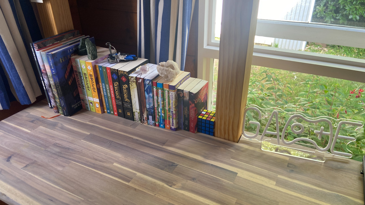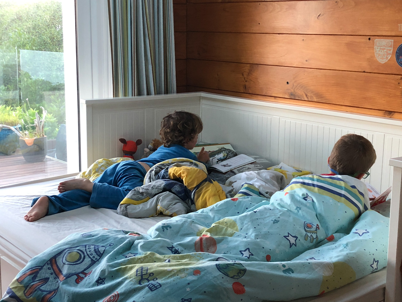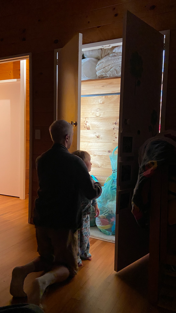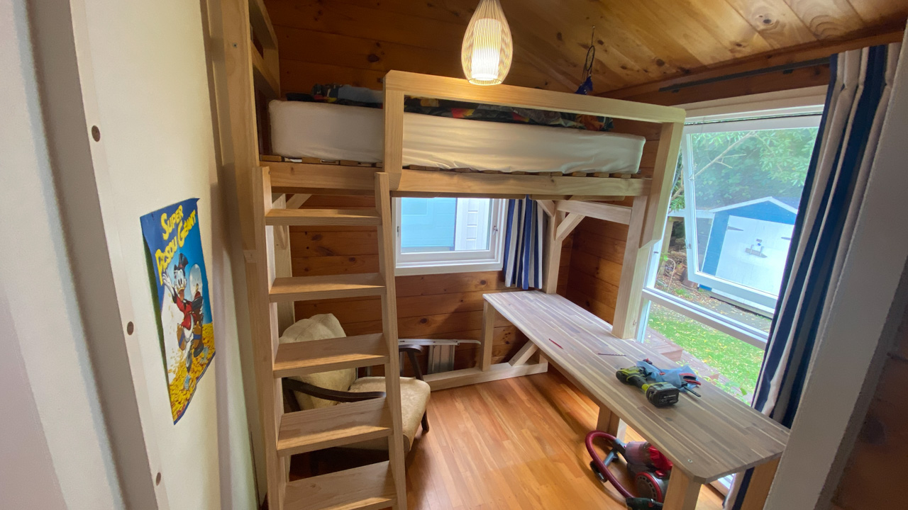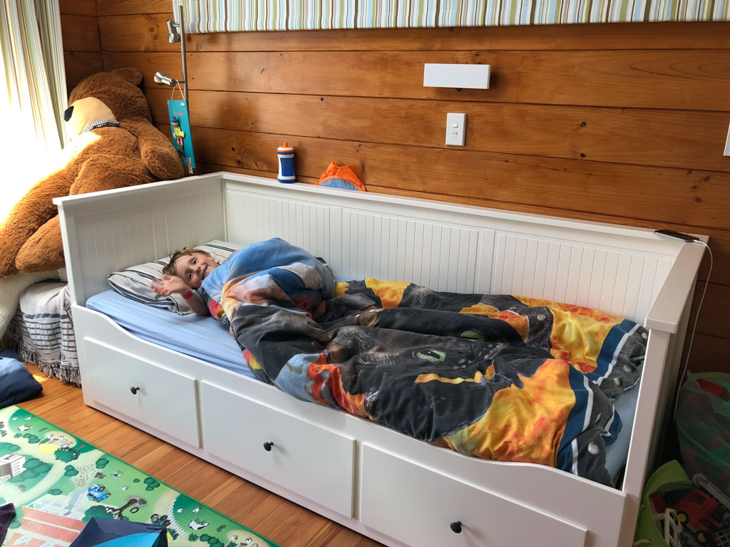 Ce sont les derniers volets que j'ai fabrique pour la chambre. Il y a bien un store sur cette fenetre orientee plein Est, mais sa capacite a retenir les rayons de l'aube est proche de zero! Du coup, j'ai rajoute 2 volets aux 4 deja fabriques plus tot dans l'annee. Apres pres de 10 ans a Fortification road, nous avons enfin de la vrai penombre dans notre chambre!