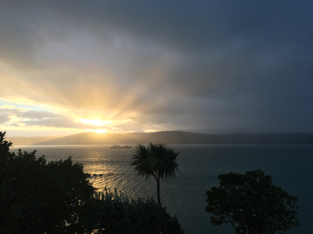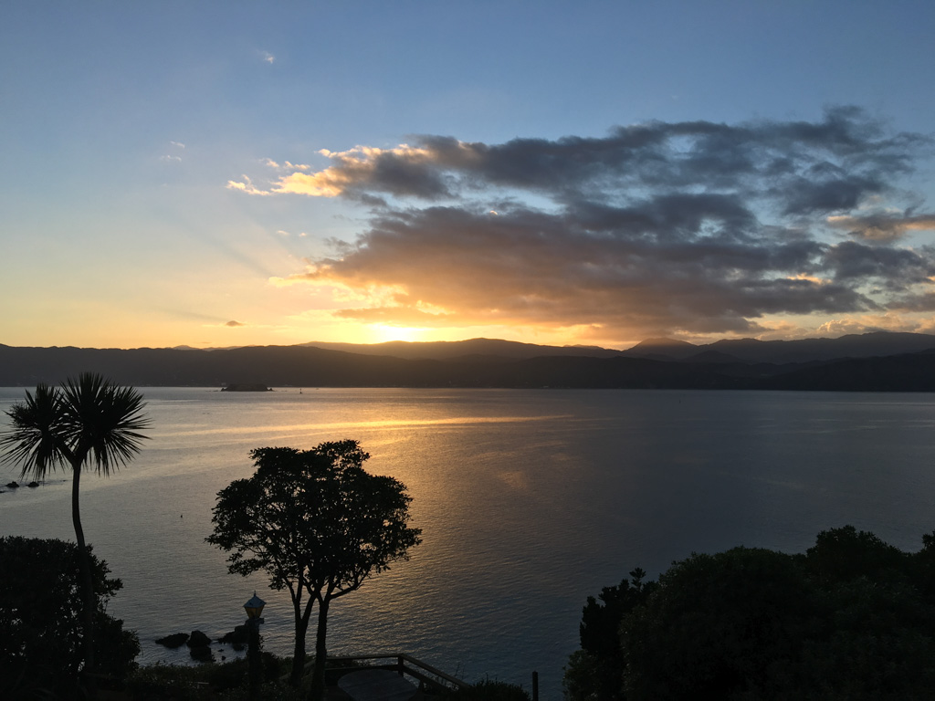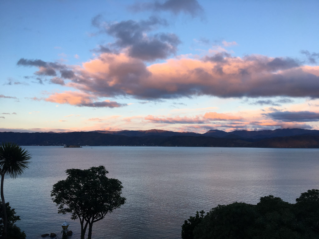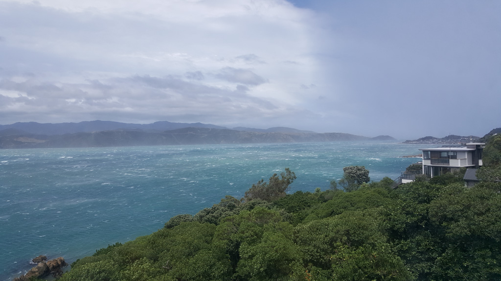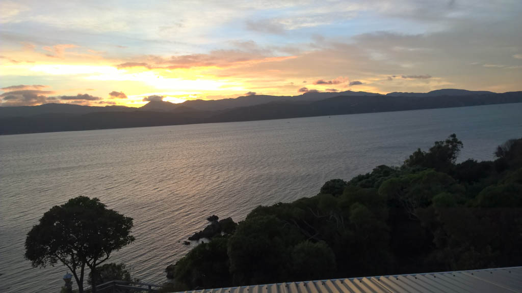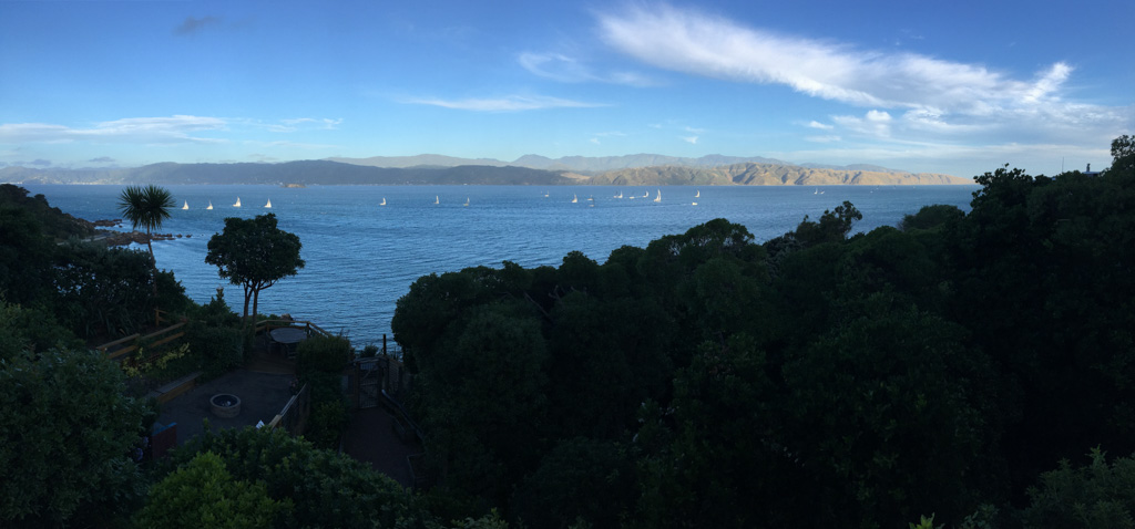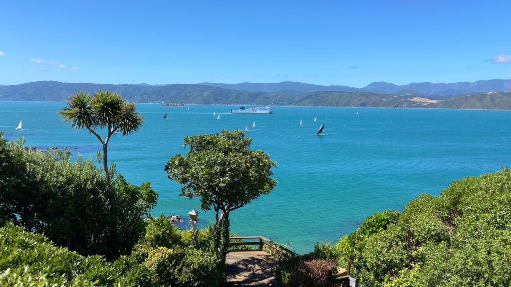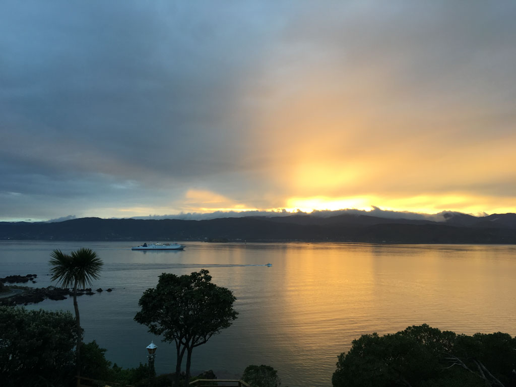 Réveil en douceur après notre première nuit passée à Wellington. Le vent et la pluie d’hier ont laissé place au soleil et au ciel bleu.