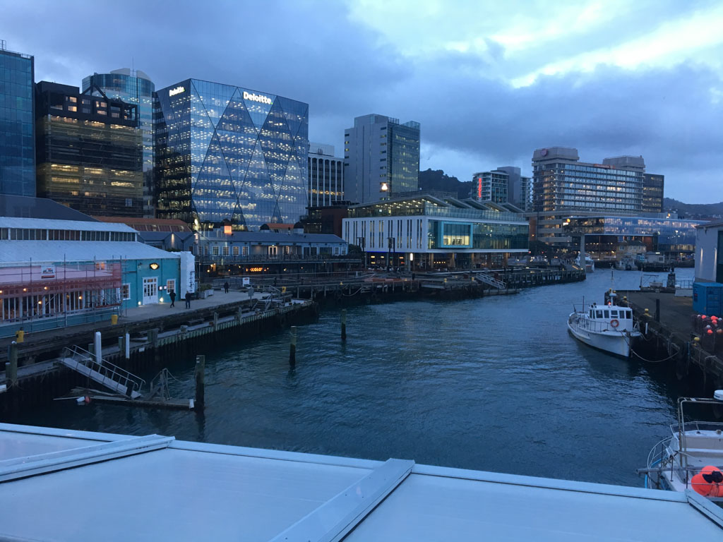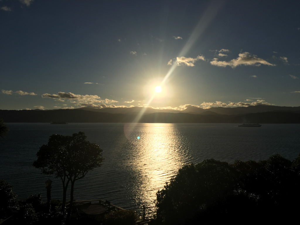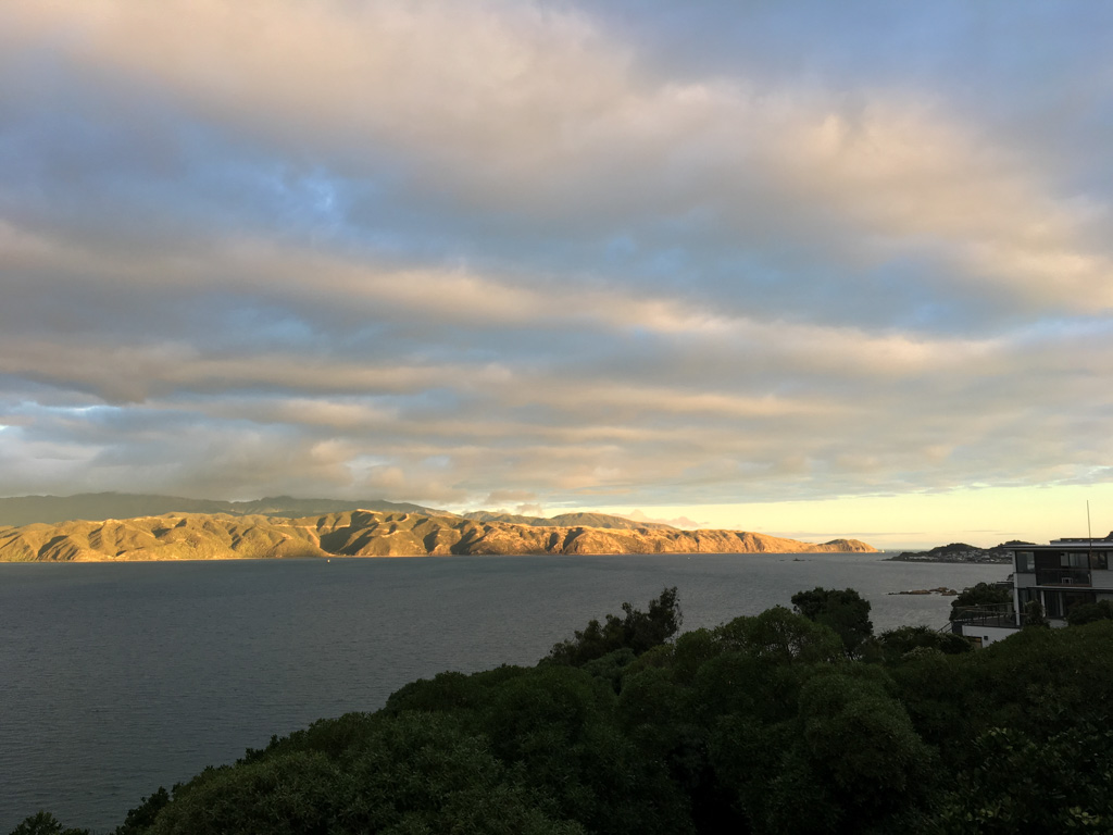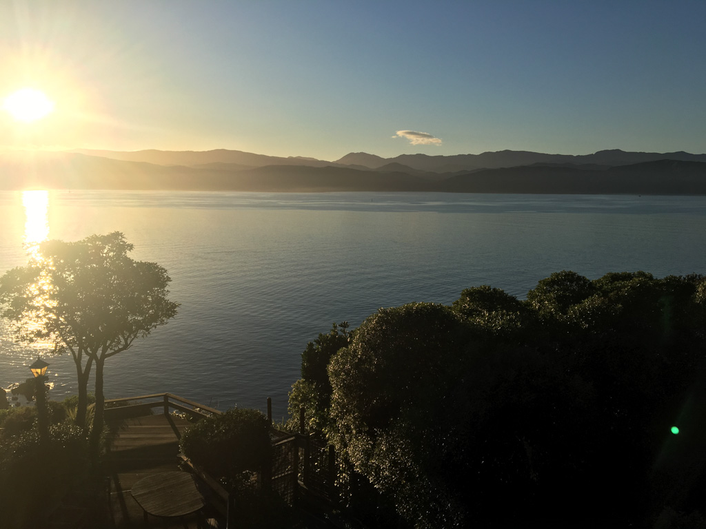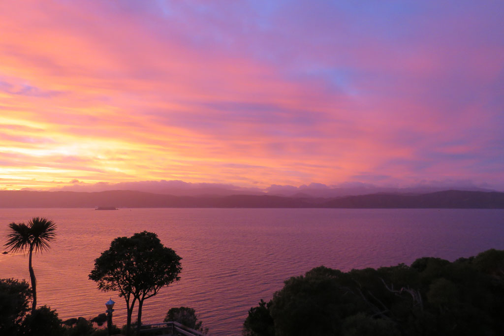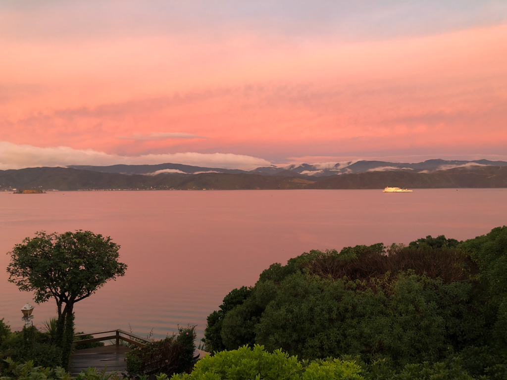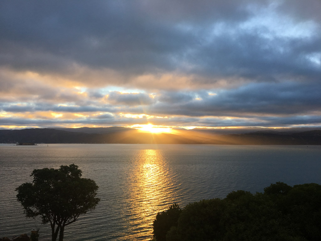 Réveil en douceur après notre première nuit passée à Wellington. Le vent et la pluie d’hier ont laissé place au soleil et au ciel bleu.