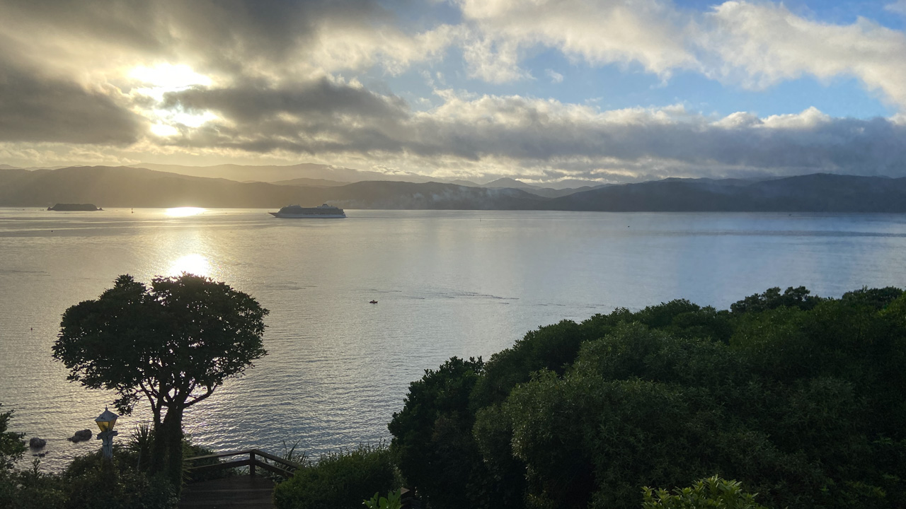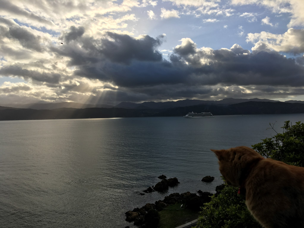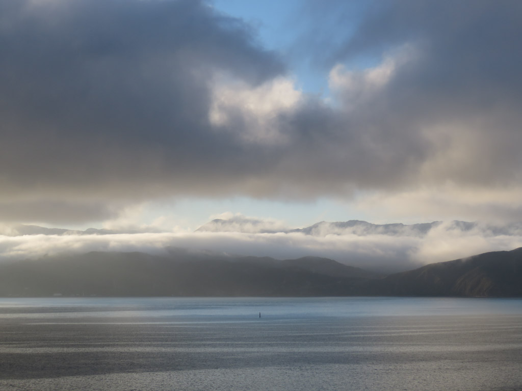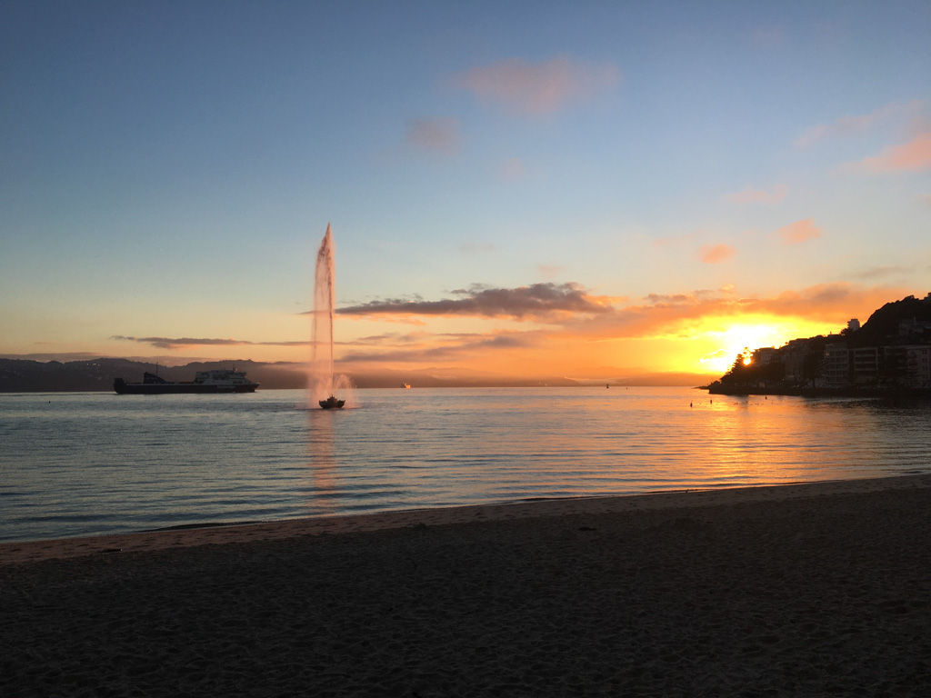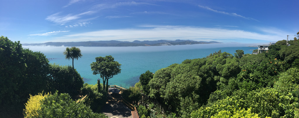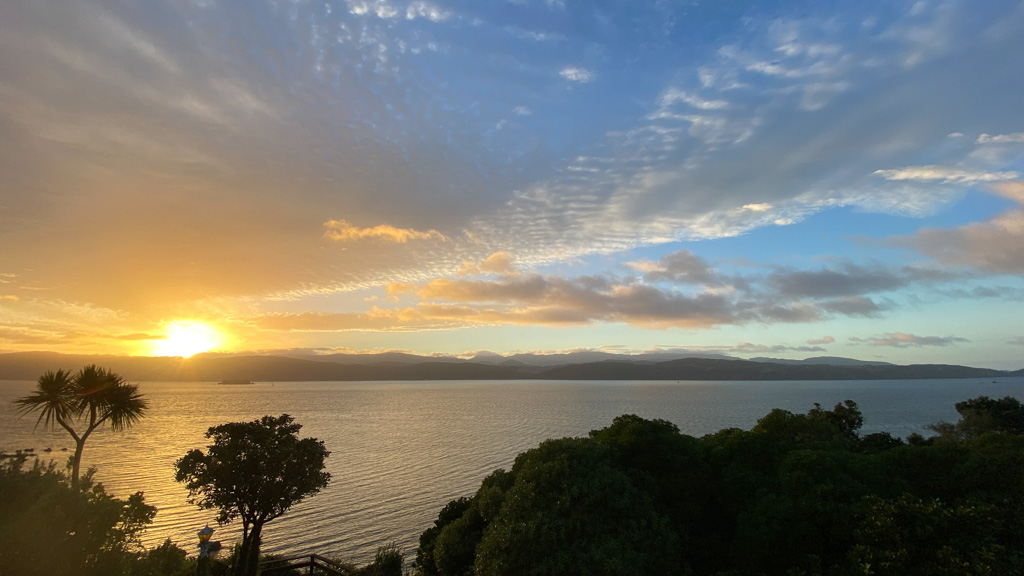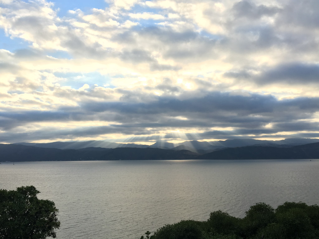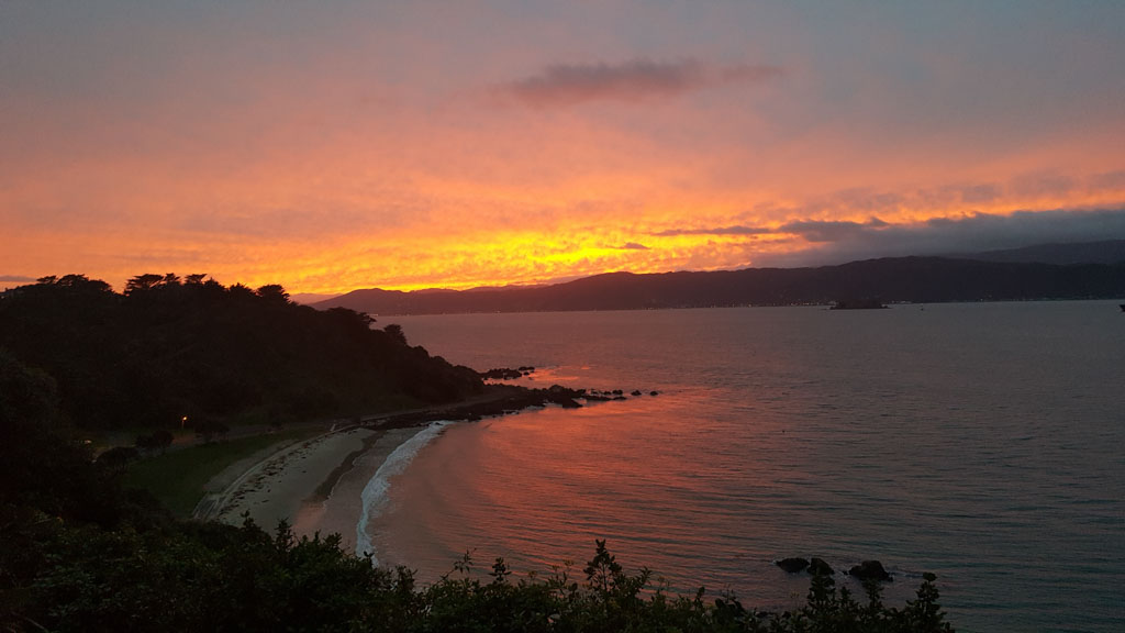 Réveil en douceur après notre première nuit passée à Wellington. Le vent et la pluie d’hier ont laissé place au soleil et au ciel bleu.