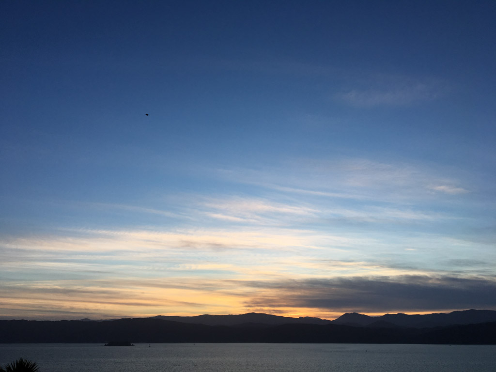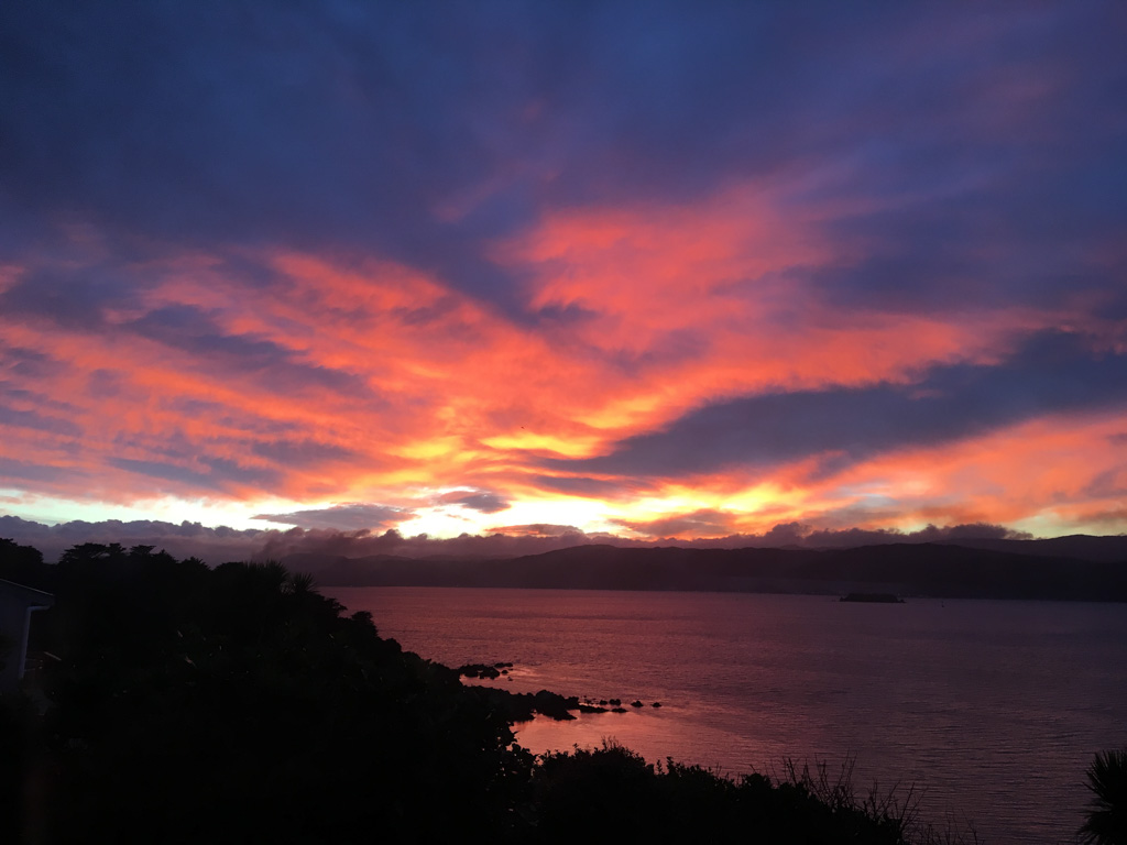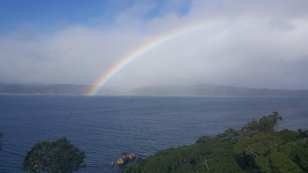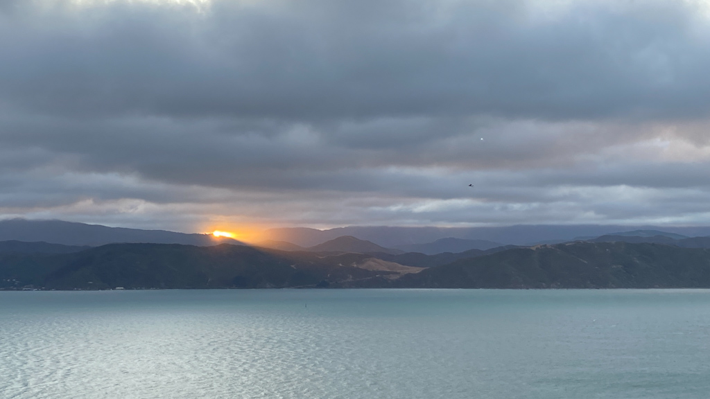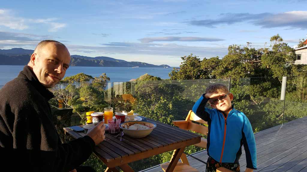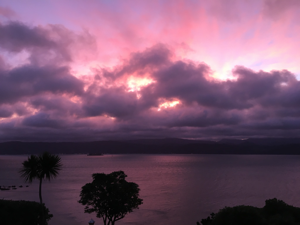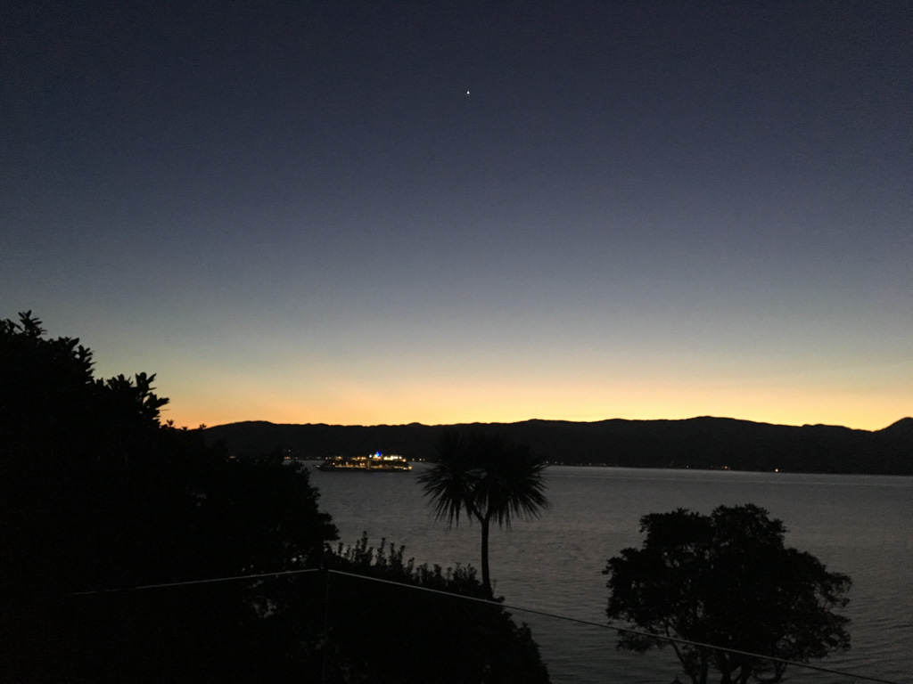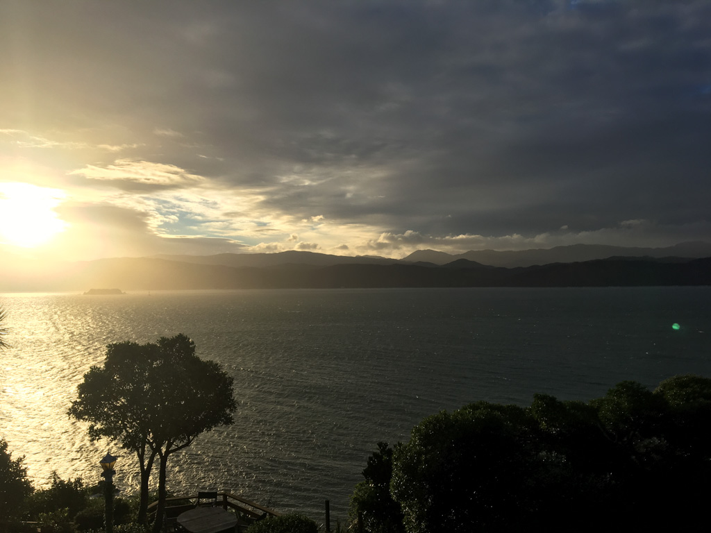 Réveil en douceur après notre première nuit passée à Wellington. Le vent et la pluie d’hier ont laissé place au soleil et au ciel bleu.