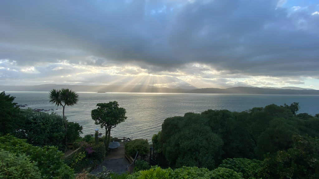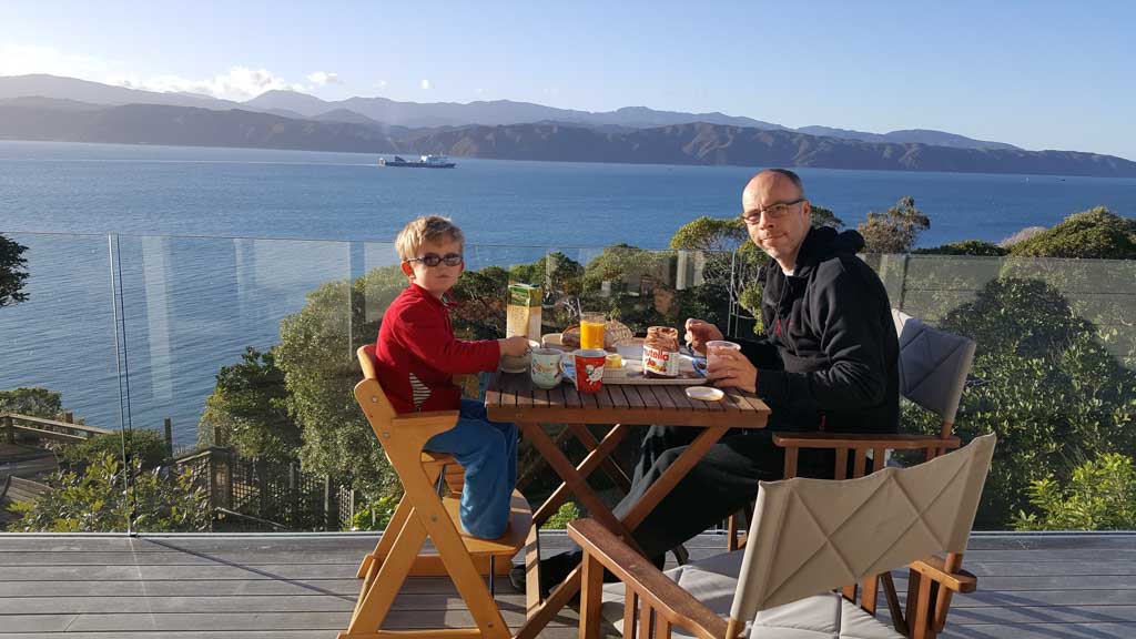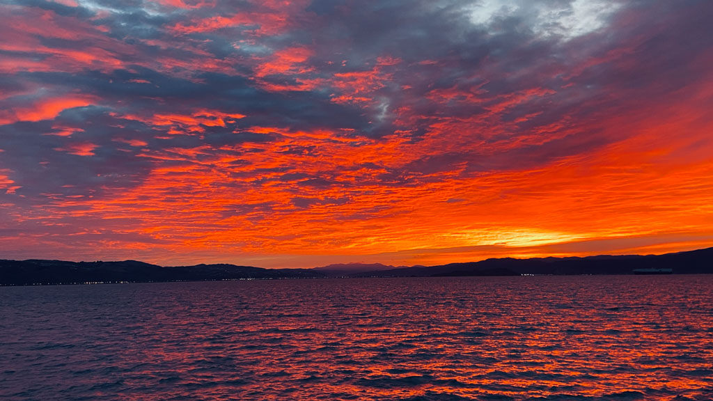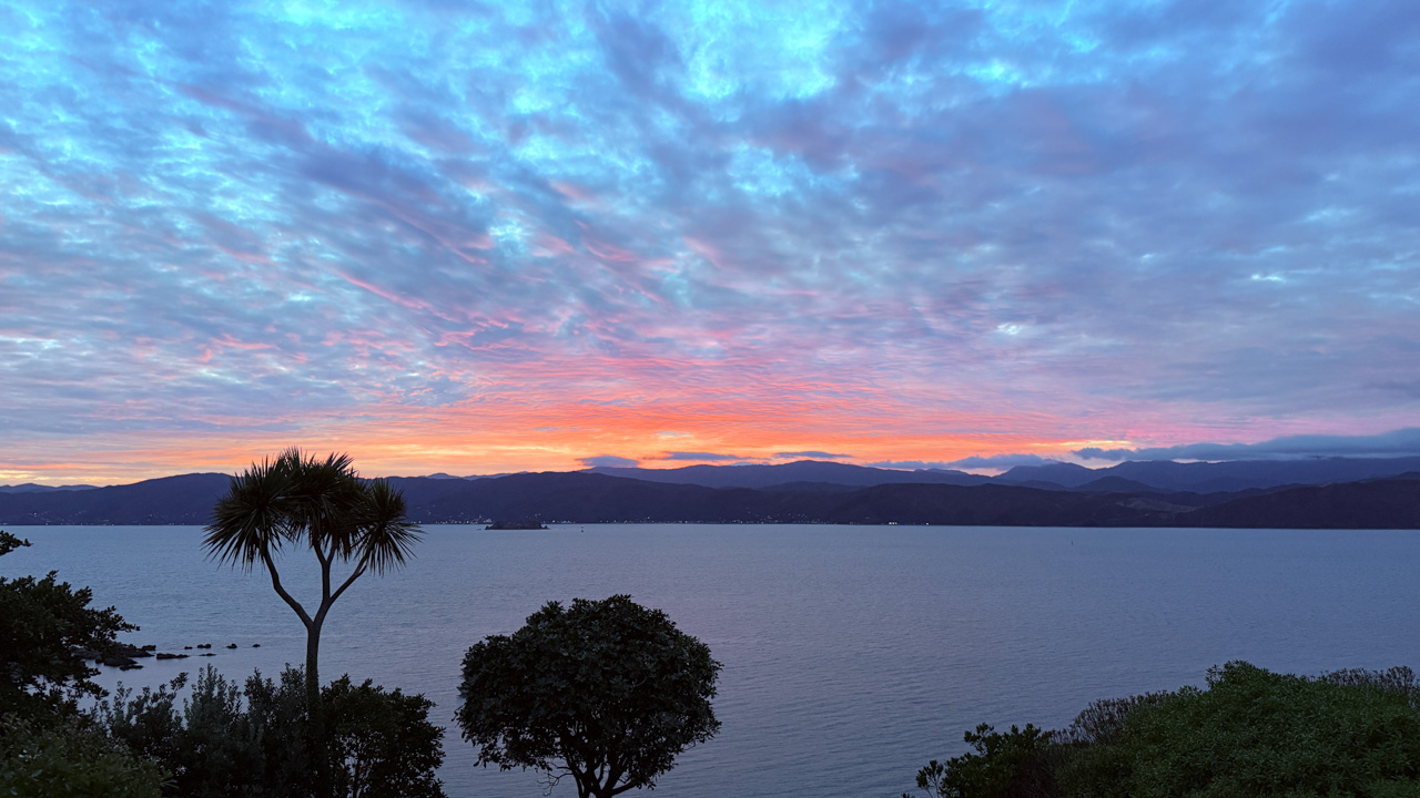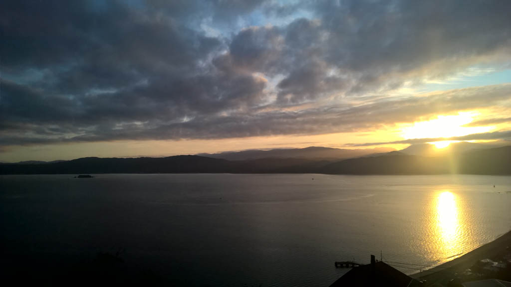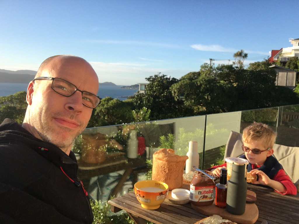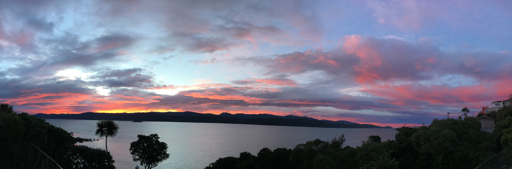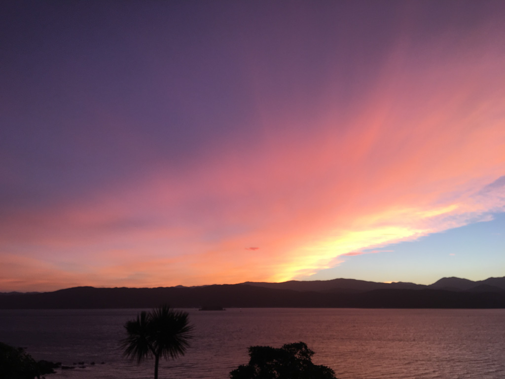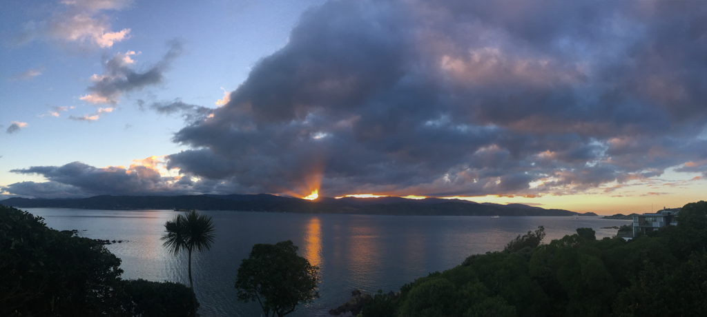 Réveil en douceur après notre première nuit passée à Wellington. Le vent et la pluie d’hier ont laissé place au soleil et au ciel bleu.
