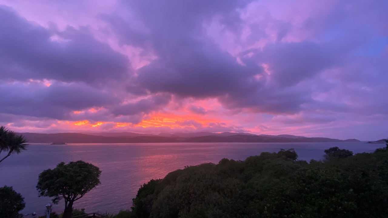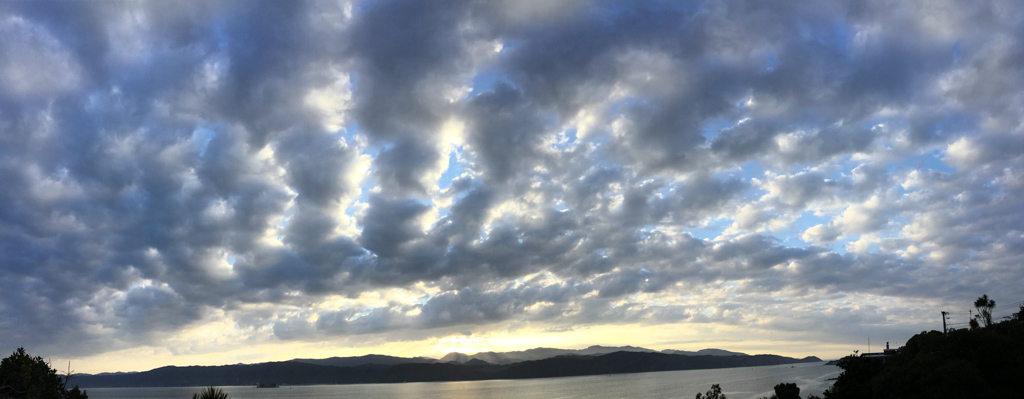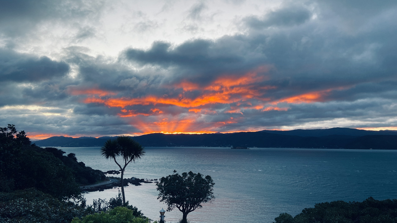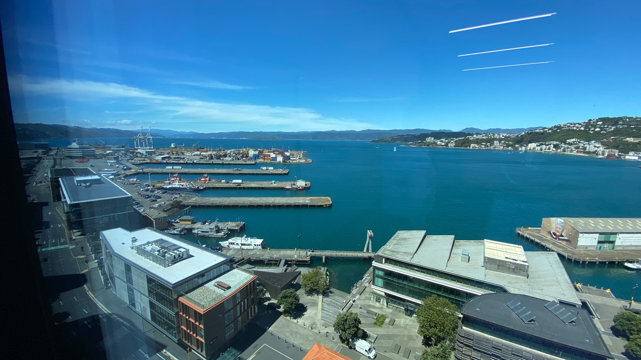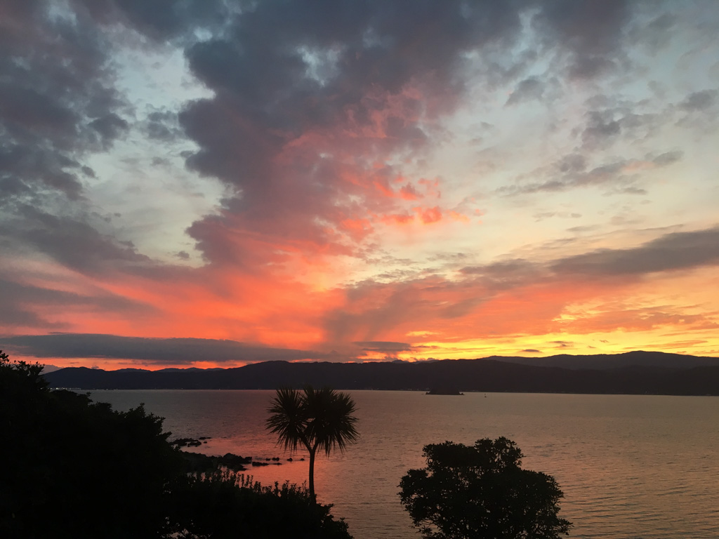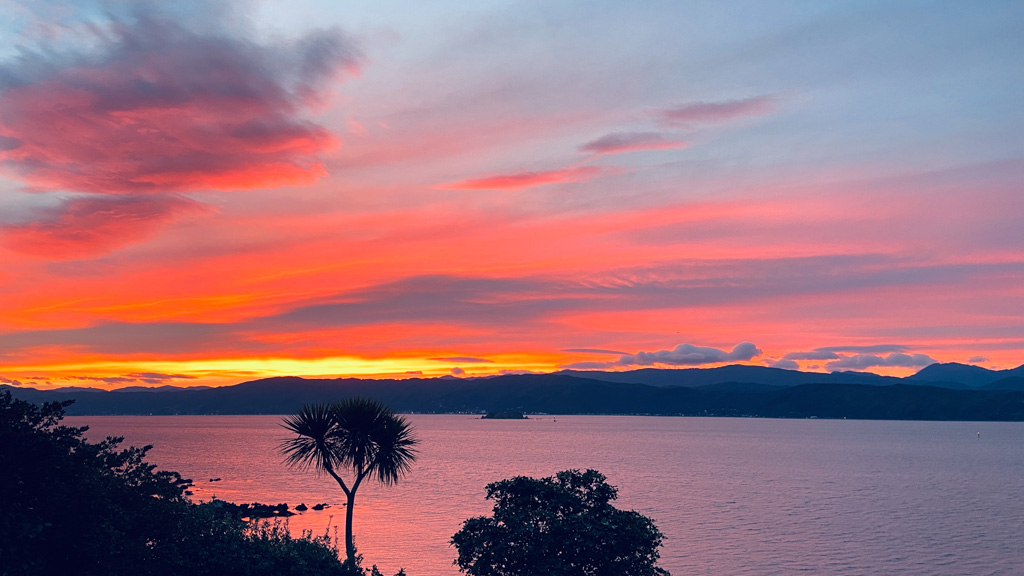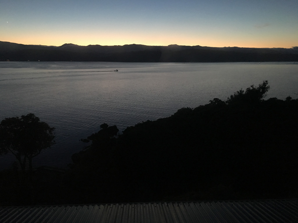 Réveil en douceur après notre première nuit passée à Wellington. Le vent et la pluie d’hier ont laissé place au soleil et au ciel bleu.