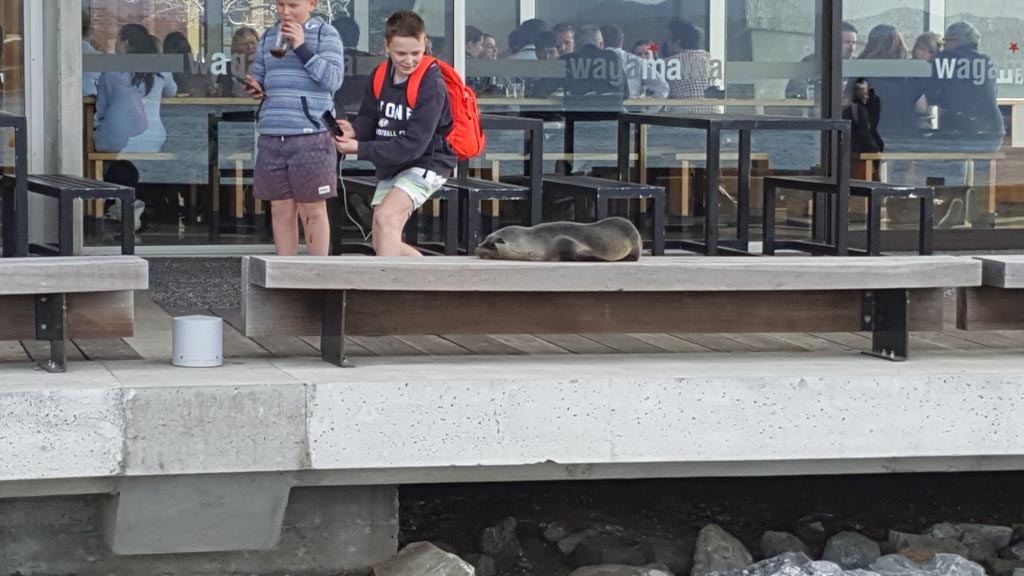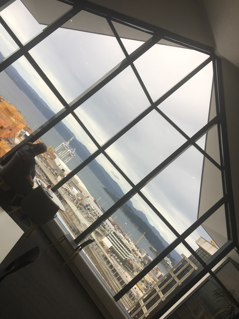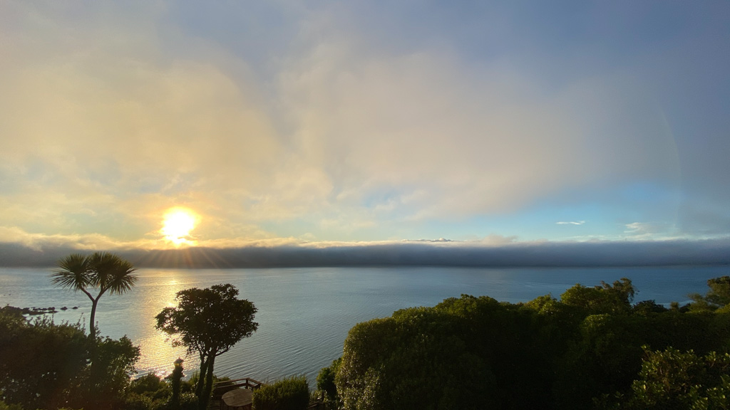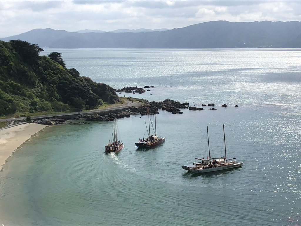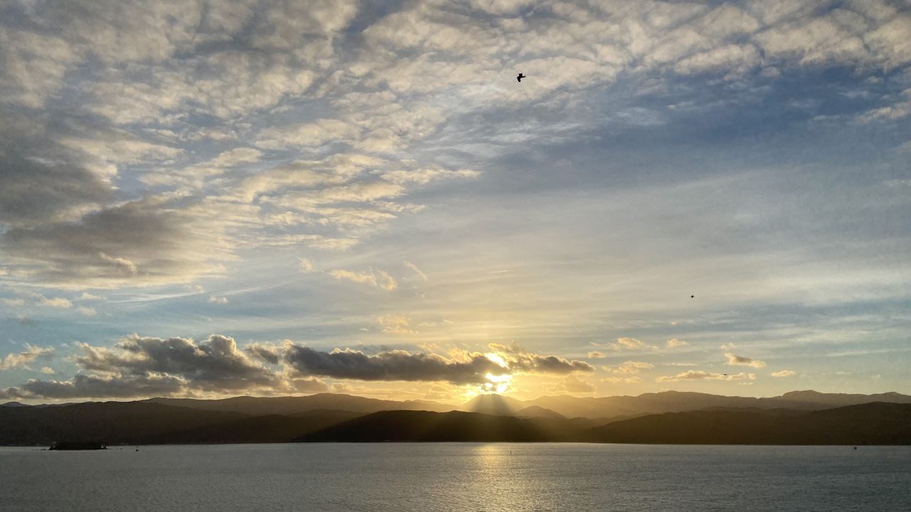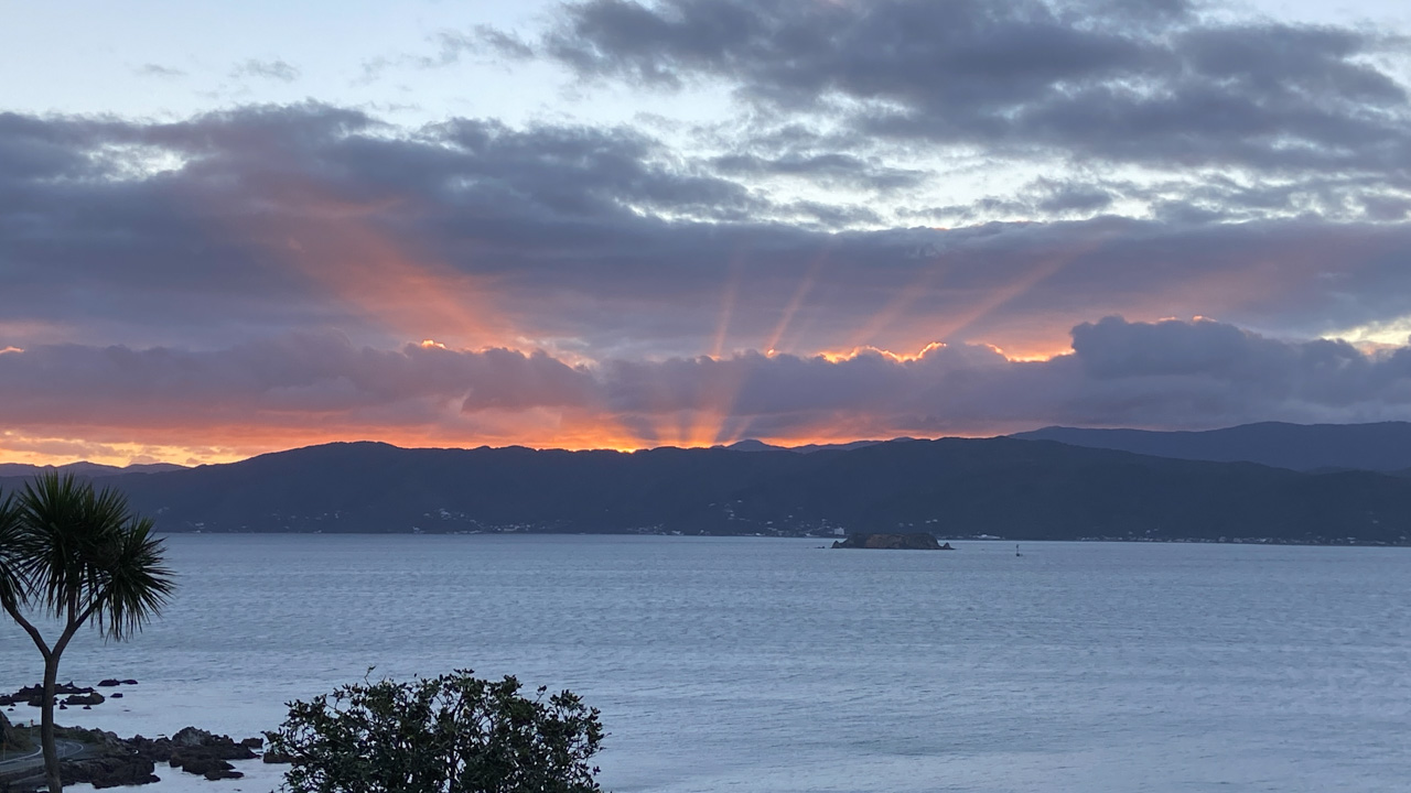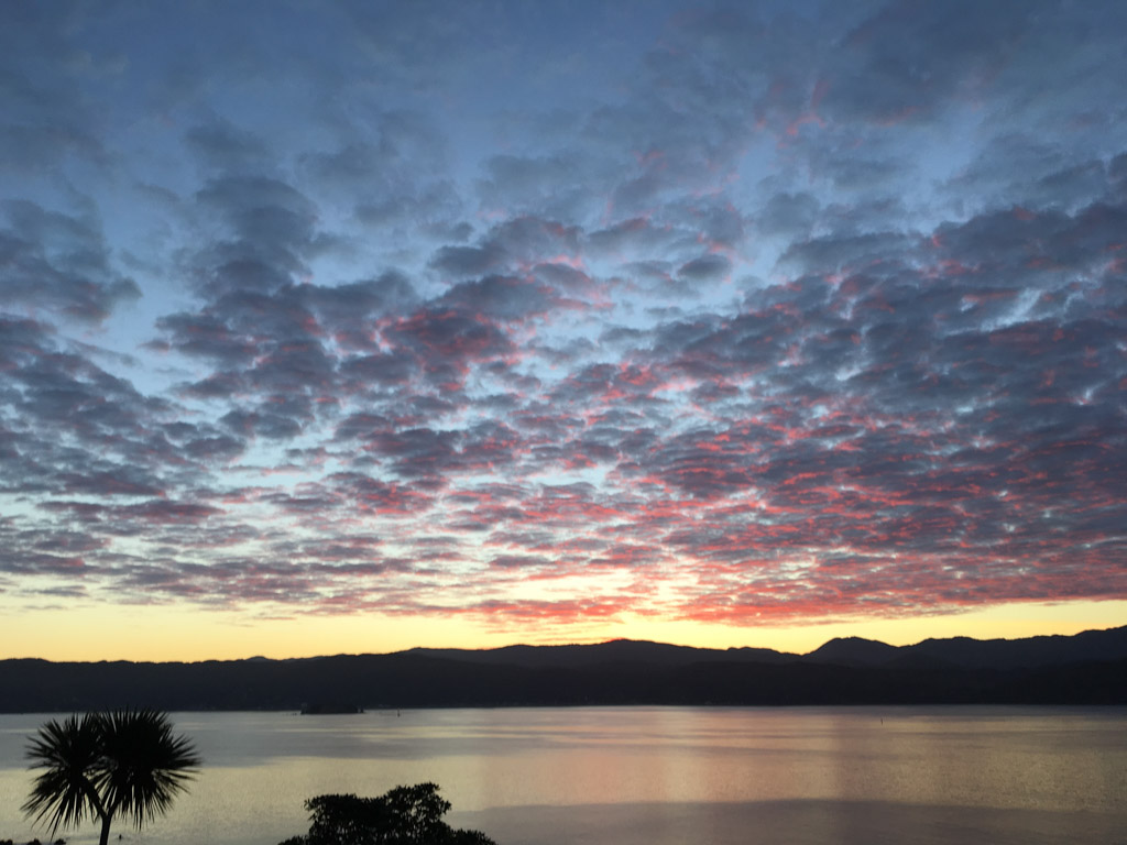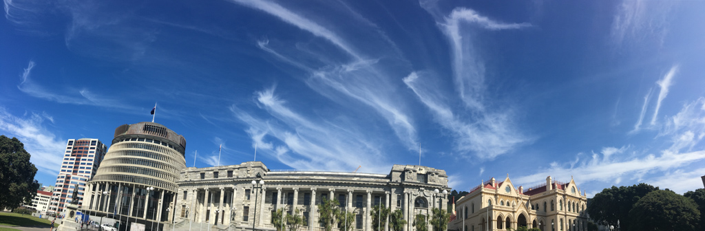 Réveil en douceur après notre première nuit passée à Wellington. Le vent et la pluie d’hier ont laissé place au soleil et au ciel bleu.