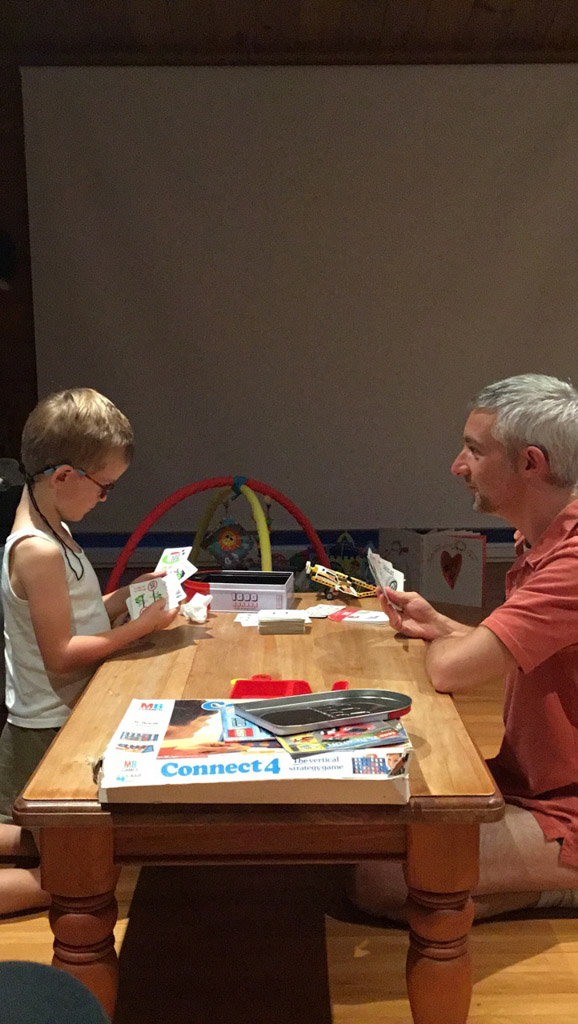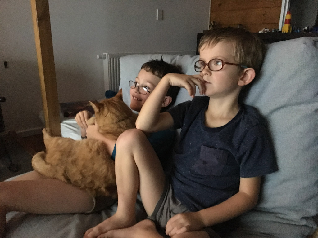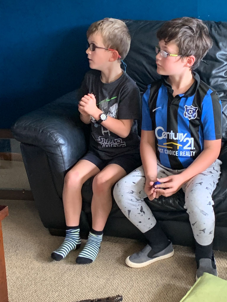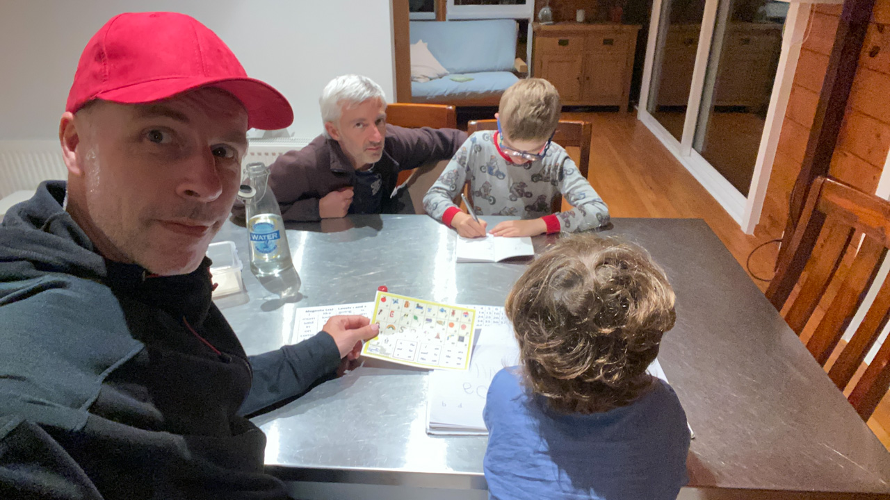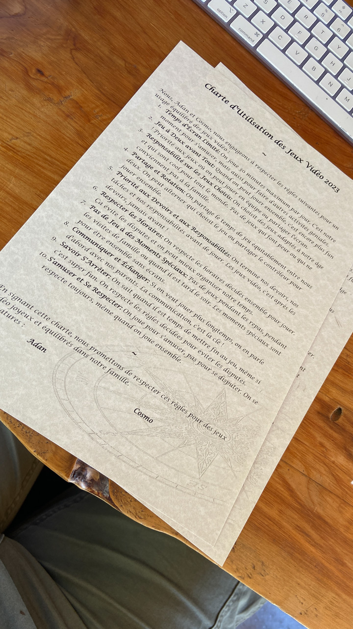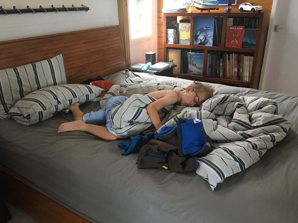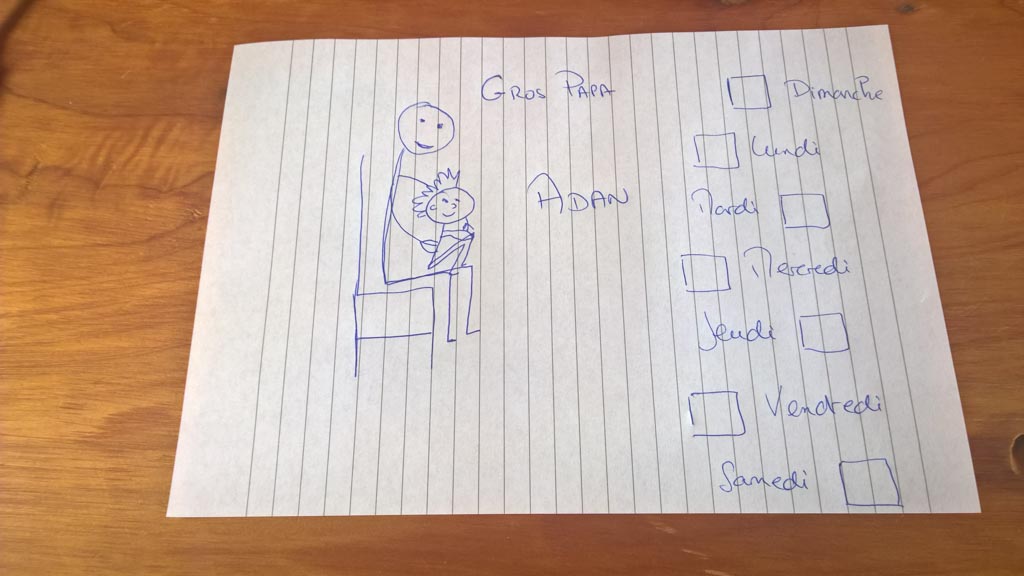 Adan nous dit qu'il est fatigue. Seb lui repond que c'est peut etre du aux jeux videos, avec lesquels il passe trop de temps. Je suis un peu dubitatif car ils ont une limite de 30 minutes par jour, mais Adan adhere a cette idee et decide de ne pas faire de jeux videos jusqu'aux vacances, dans un mois.