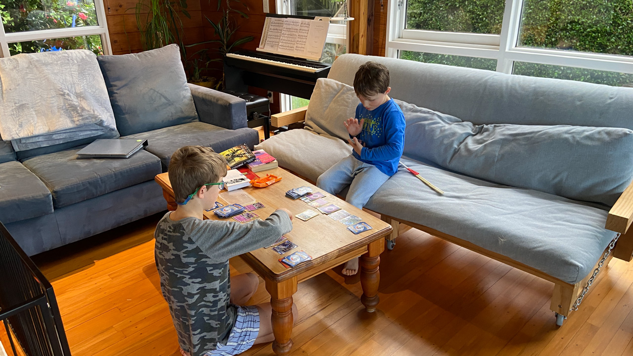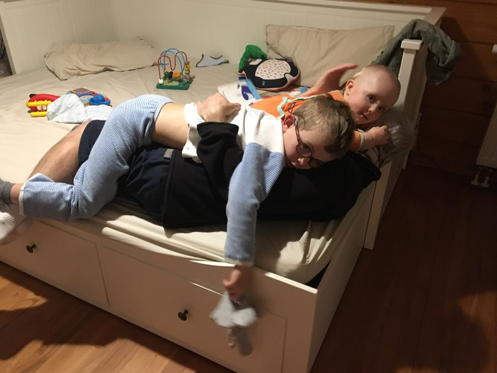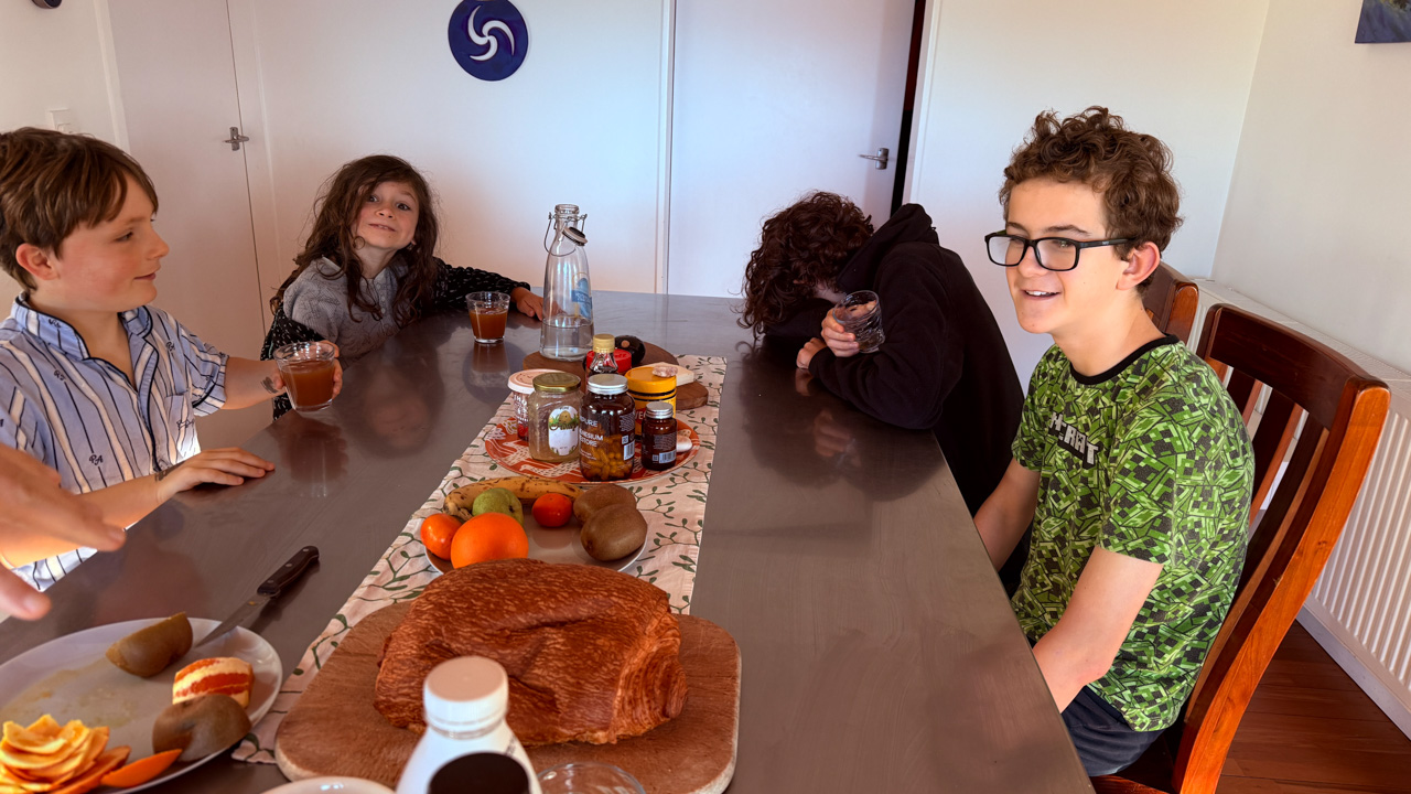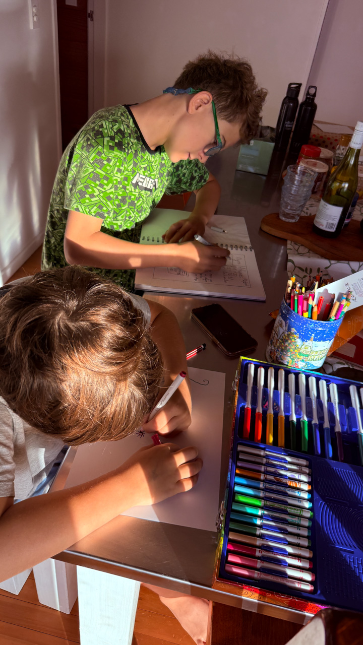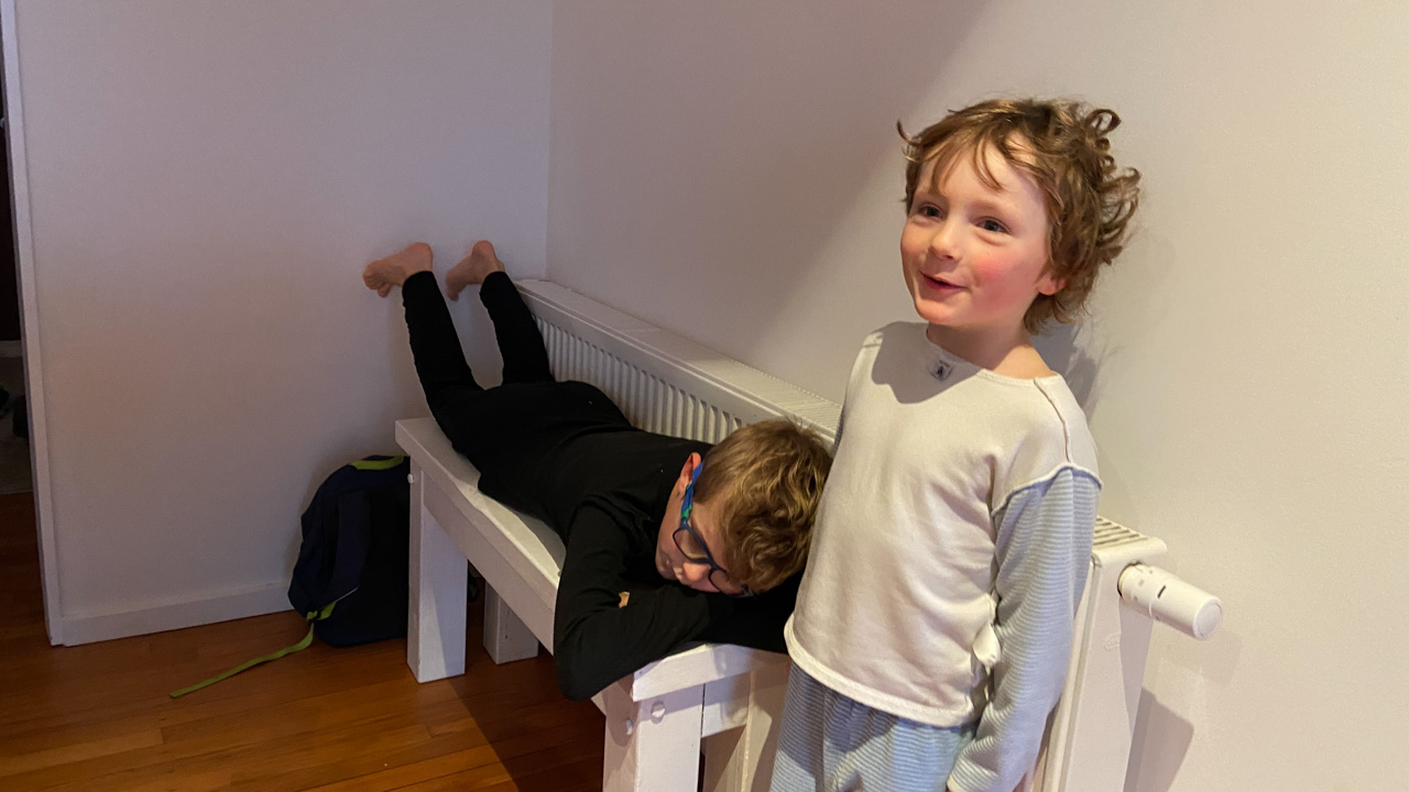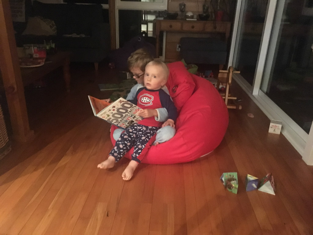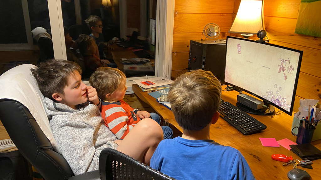 Adan nous dit qu'il est fatigue. Seb lui repond que c'est peut etre du aux jeux videos, avec lesquels il passe trop de temps. Je suis un peu dubitatif car ils ont une limite de 30 minutes par jour, mais Adan adhere a cette idee et decide de ne pas faire de jeux videos jusqu'aux vacances, dans un mois.