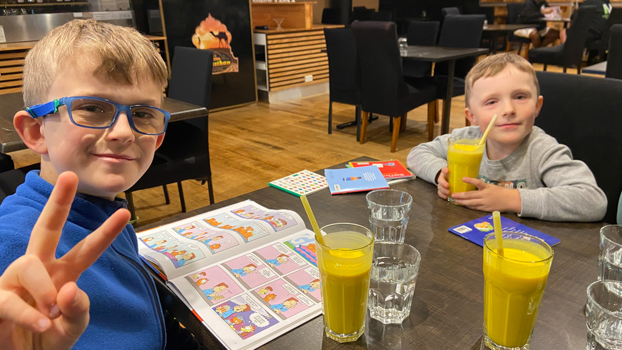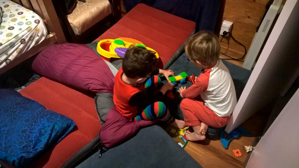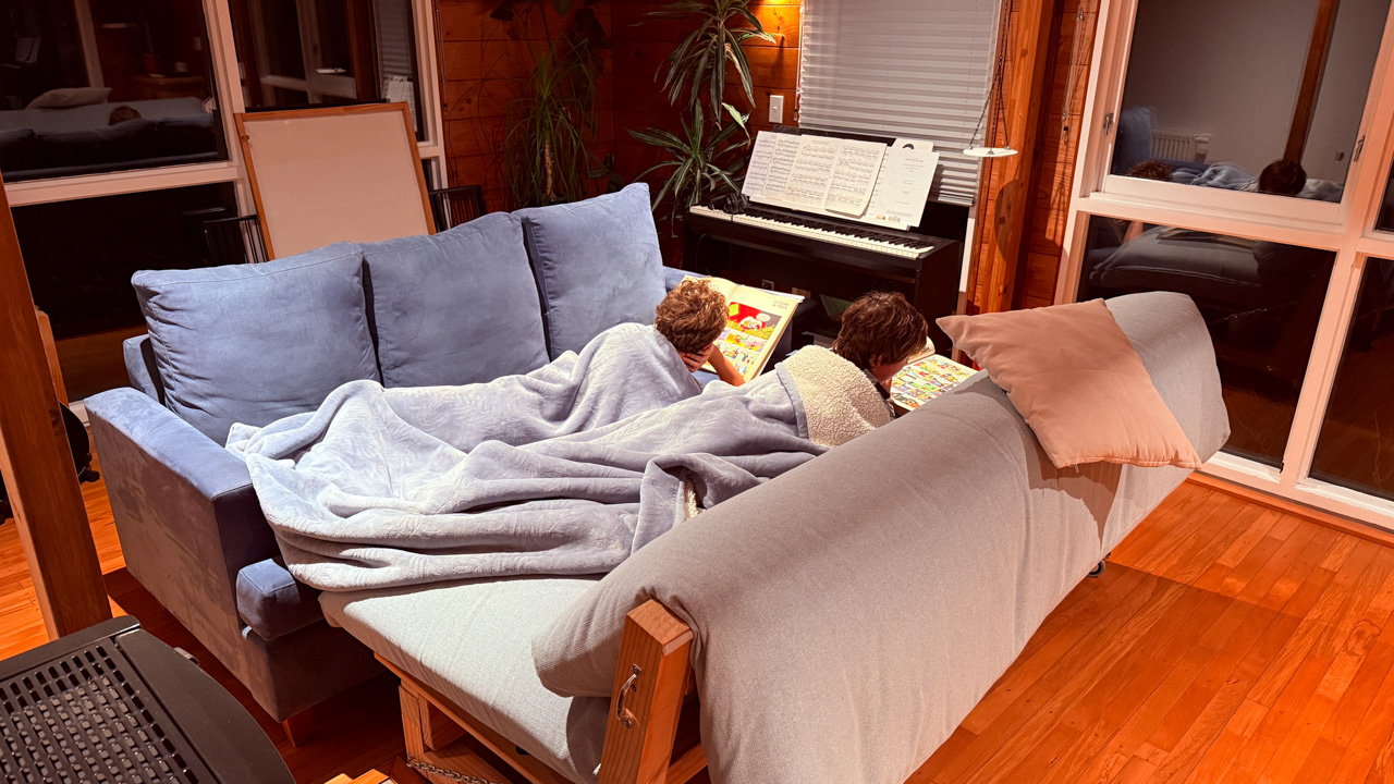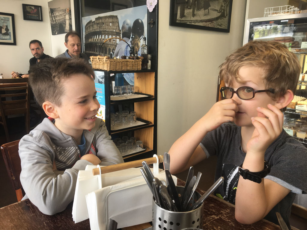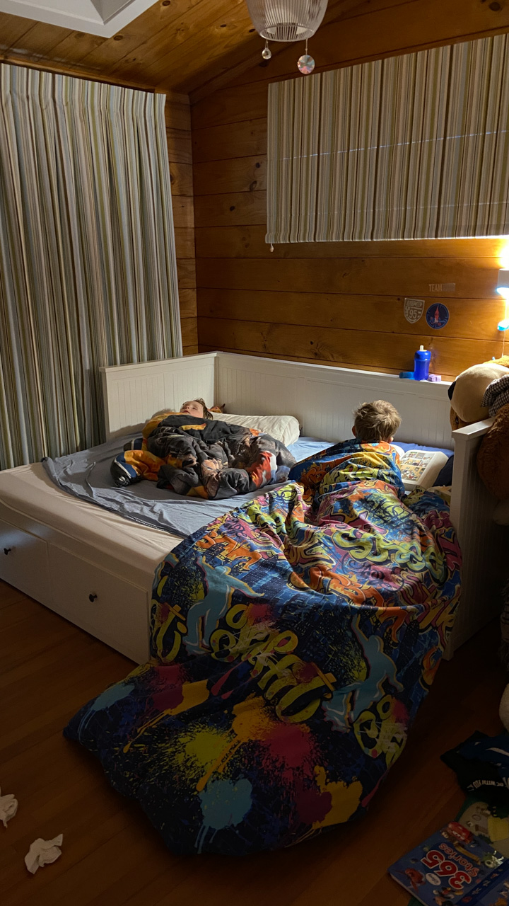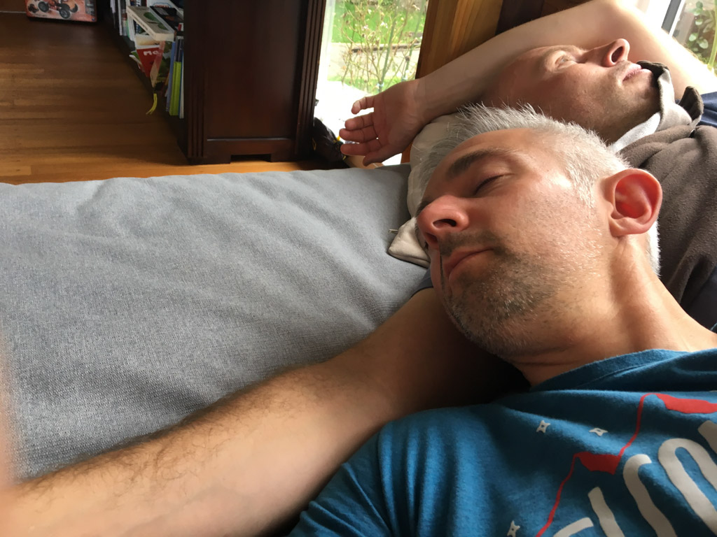 Adan nous dit qu'il est fatigue. Seb lui repond que c'est peut etre du aux jeux videos, avec lesquels il passe trop de temps. Je suis un peu dubitatif car ils ont une limite de 30 minutes par jour, mais Adan adhere a cette idee et decide de ne pas faire de jeux videos jusqu'aux vacances, dans un mois.