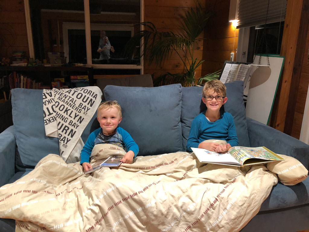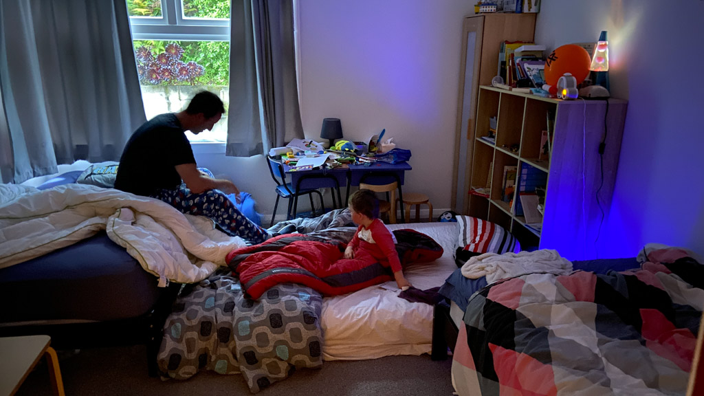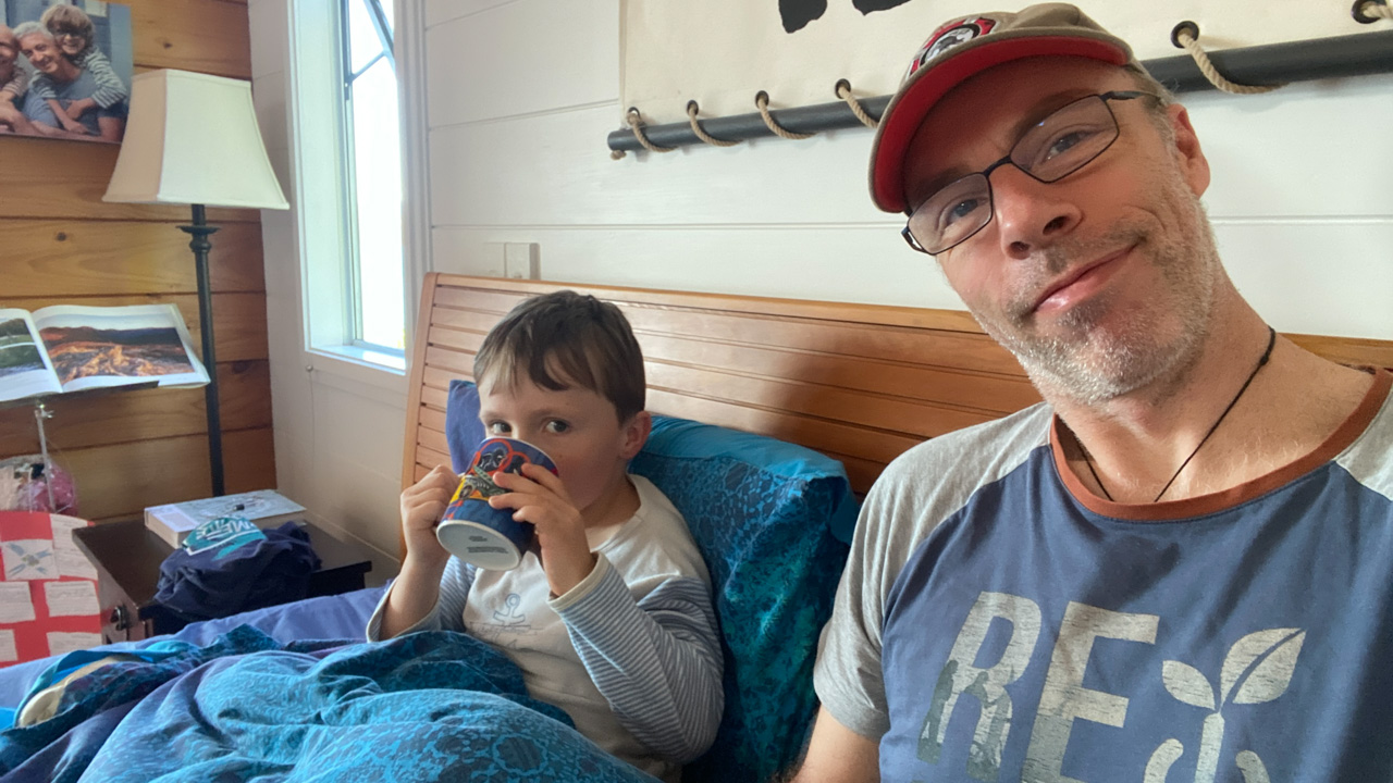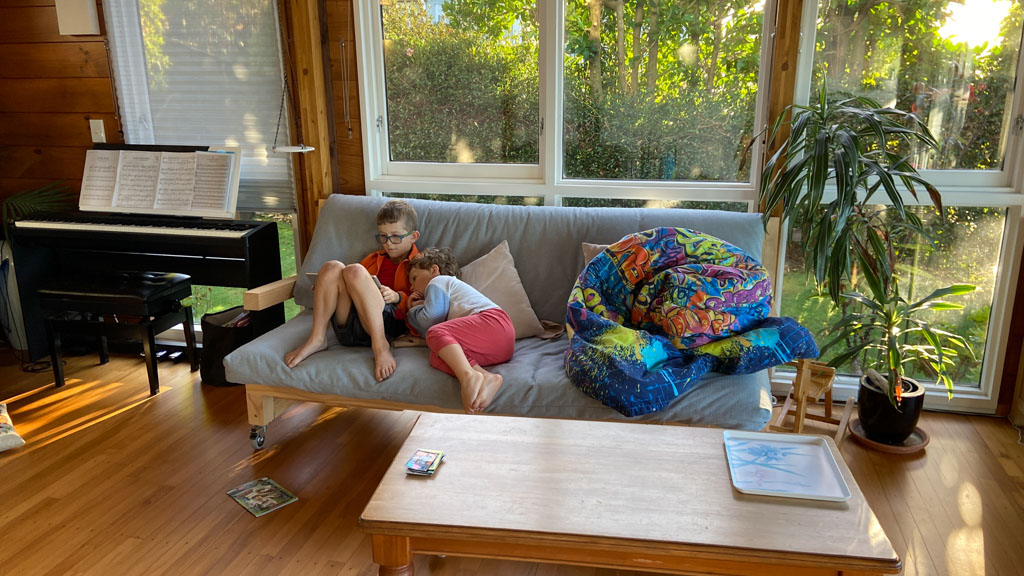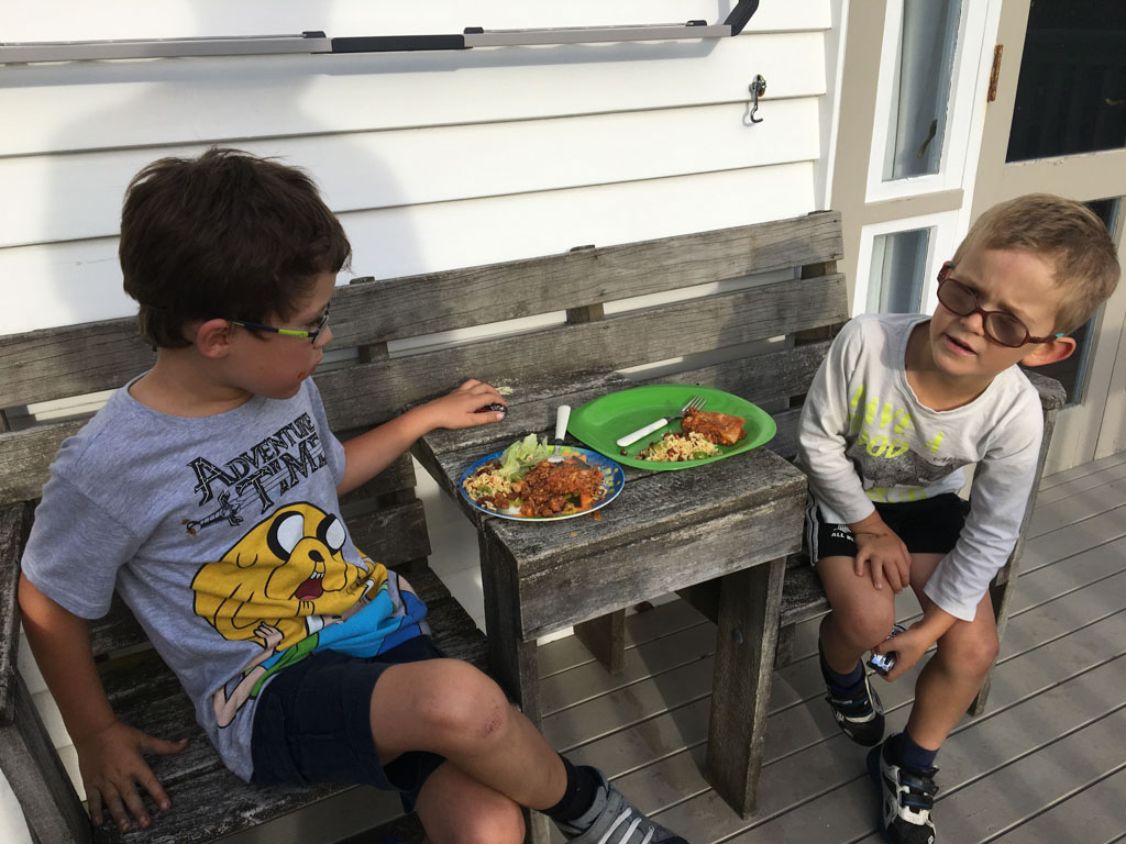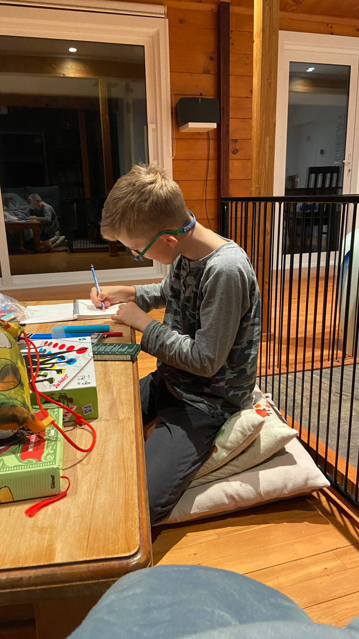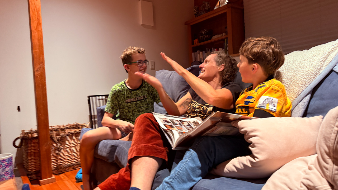 Adan nous dit qu'il est fatigue. Seb lui repond que c'est peut etre du aux jeux videos, avec lesquels il passe trop de temps. Je suis un peu dubitatif car ils ont une limite de 30 minutes par jour, mais Adan adhere a cette idee et decide de ne pas faire de jeux videos jusqu'aux vacances, dans un mois.