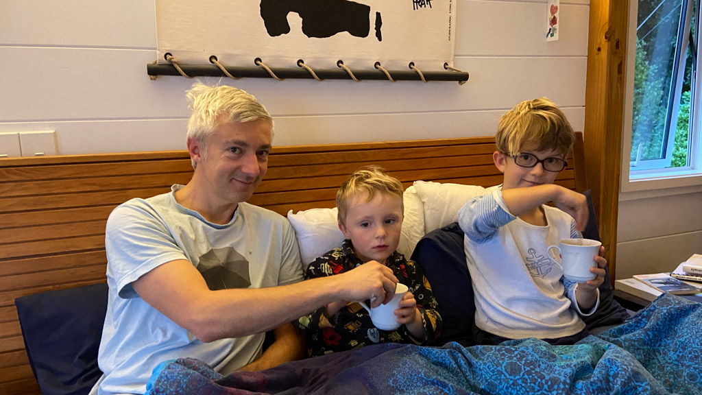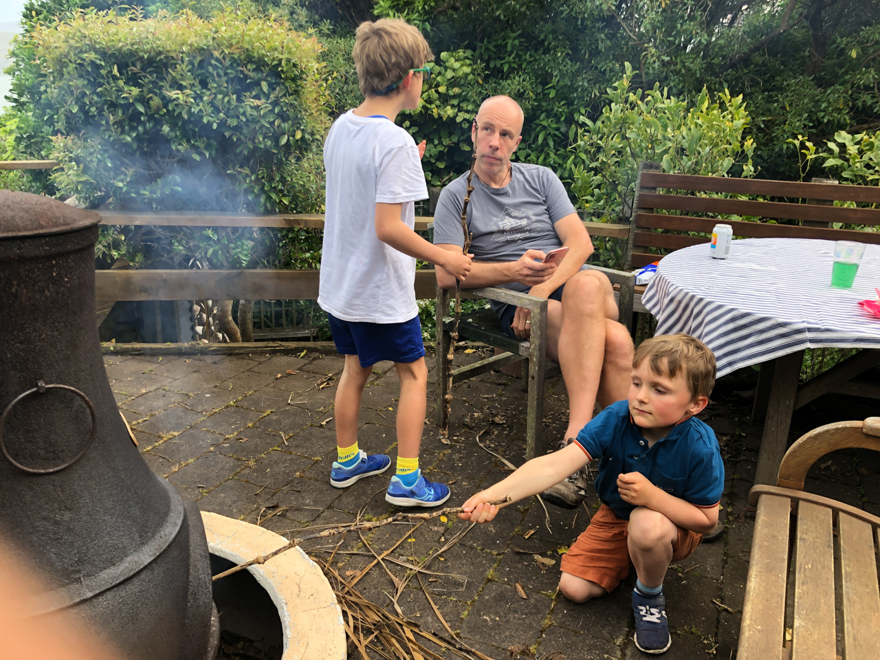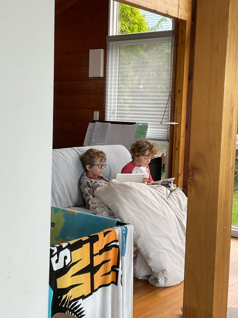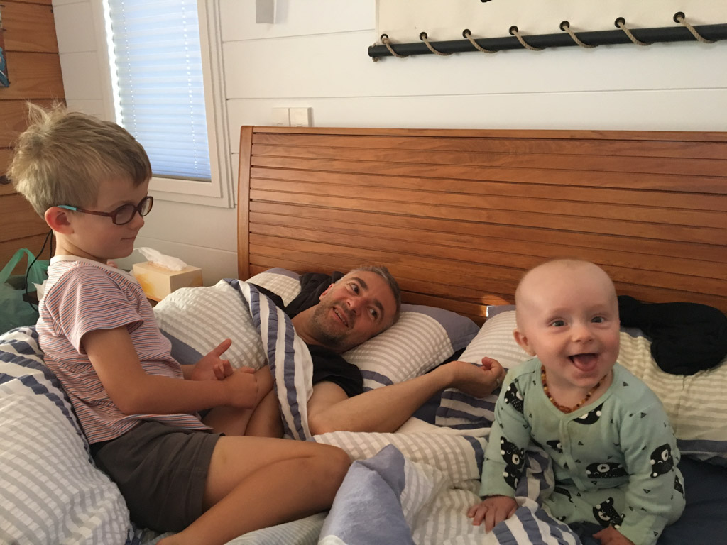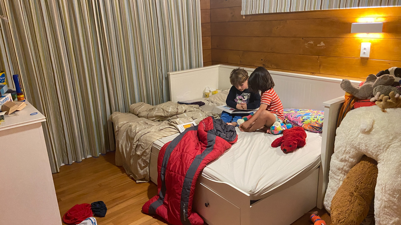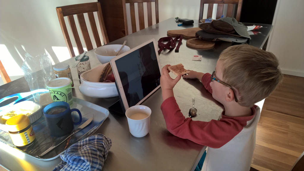 Adan nous dit qu'il est fatigue. Seb lui repond que c'est peut etre du aux jeux videos, avec lesquels il passe trop de temps. Je suis un peu dubitatif car ils ont une limite de 30 minutes par jour, mais Adan adhere a cette idee et decide de ne pas faire de jeux videos jusqu'aux vacances, dans un mois.